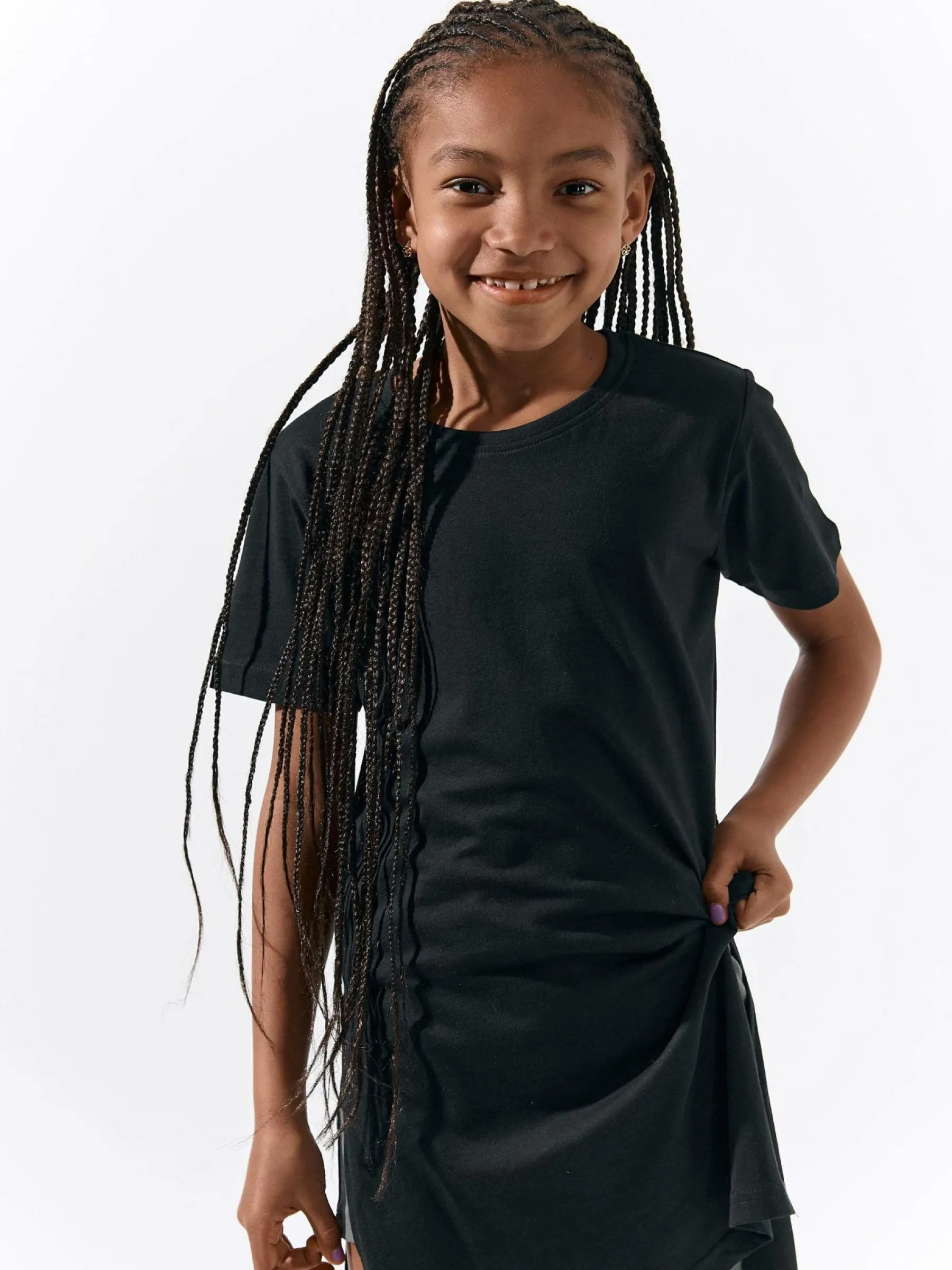 Kolor: czarnyKrój: regularTyp: koszulkaRekaw: krótki rękawDługość: dlugiePattern style: pojedynczy kolorDetal: nad…