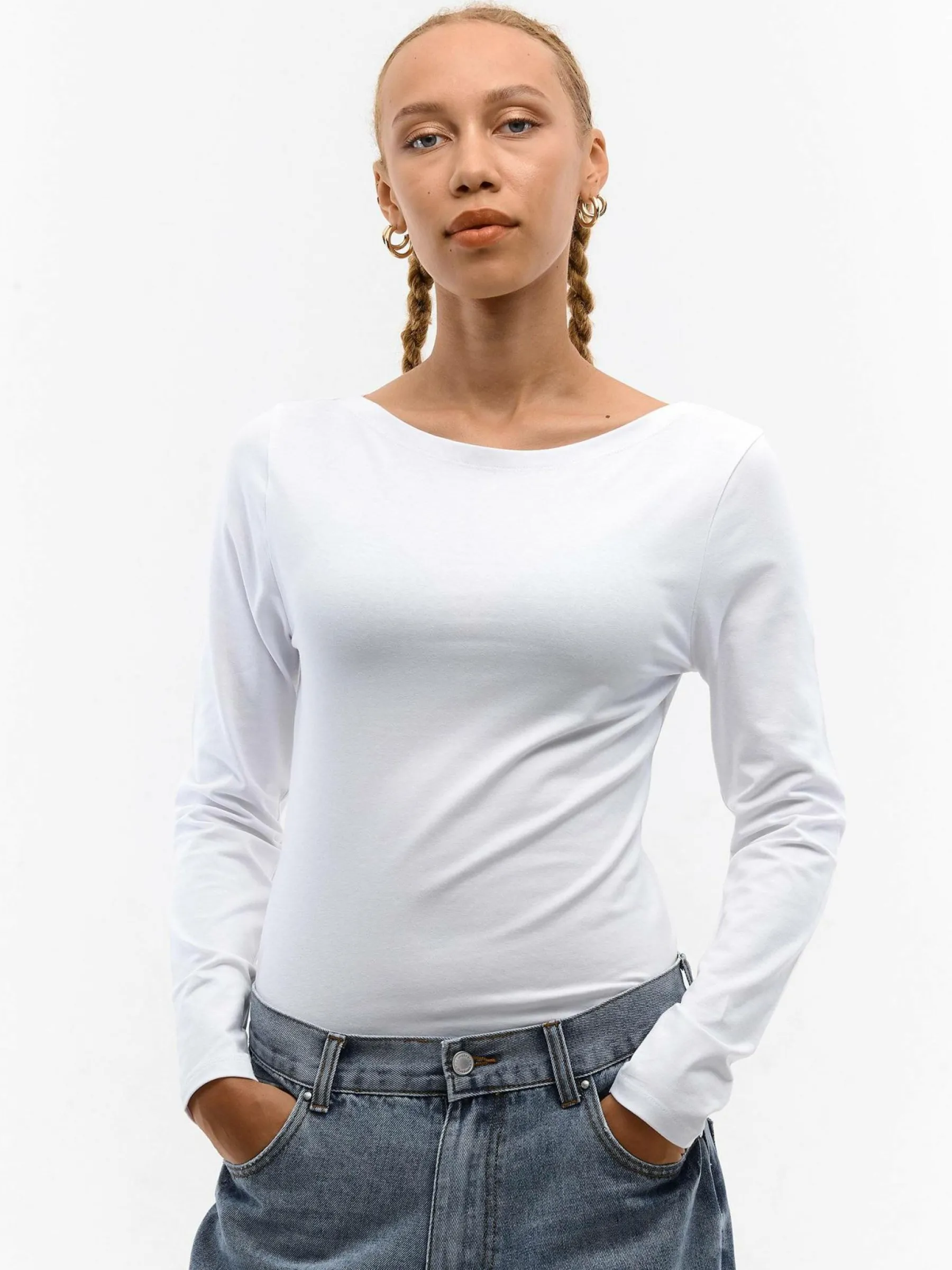 Kolor: białyKrój: regularTyp: koszulkaRekaw: długi rękawDługość: krótkiPattern style: pojedynczy kolorDetal: nad…