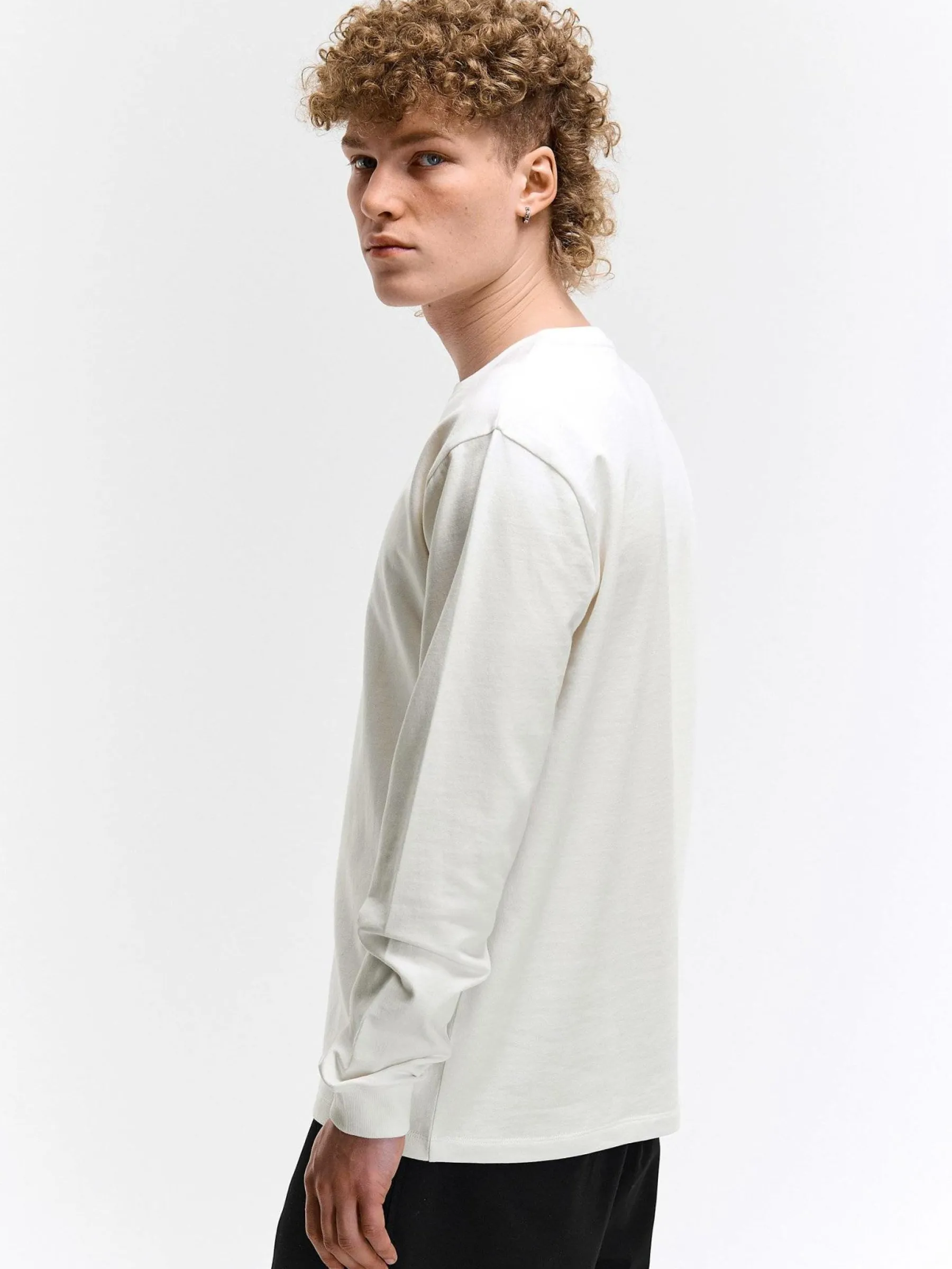 T-shirt o dużej gramaturze (240 GSM)Kolor: białyKrój: regularTyp: koszulkaRekaw: długi rękawPattern style: pojedync…