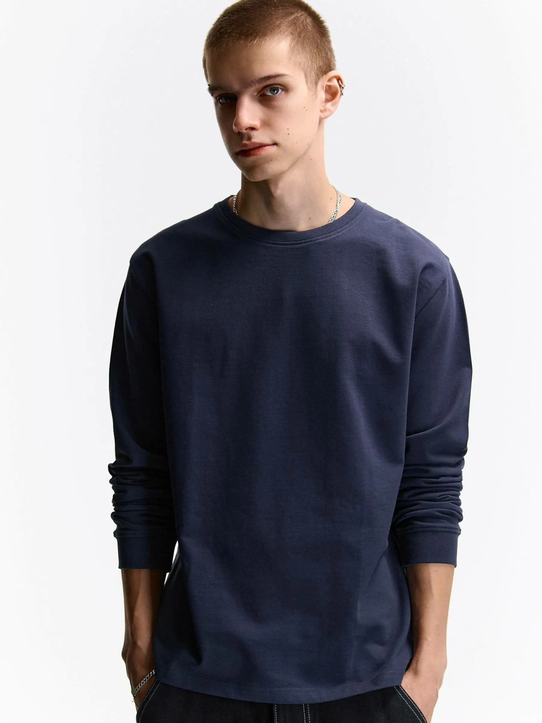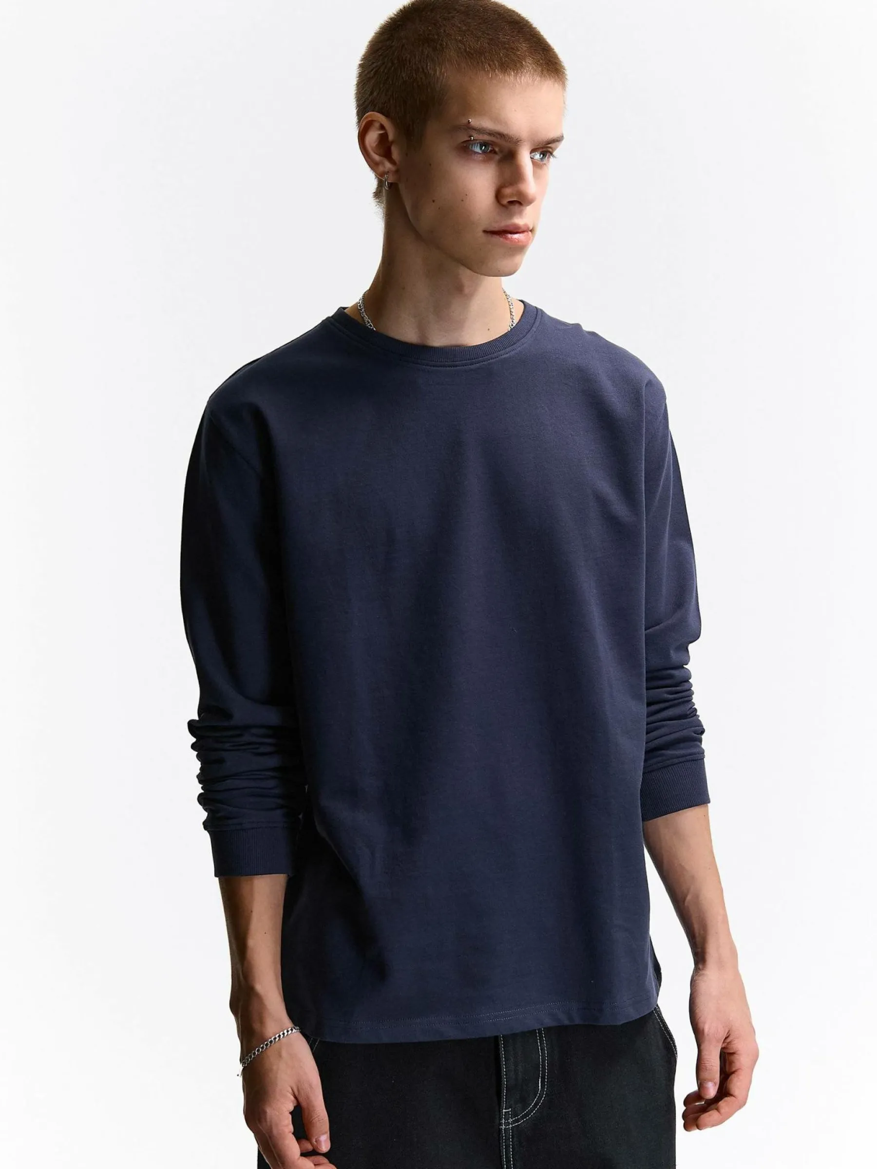 T-shirt o dużej gramaturze (240 GSM)Kolor: granatowy, niebieskiKrój: regularTyp: koszulkaRekaw: długi rękawPattern s…