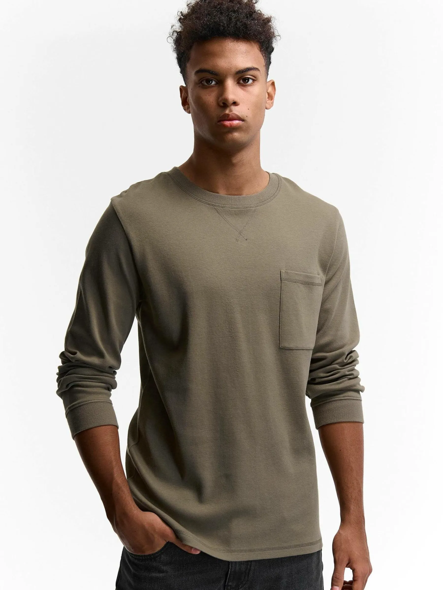 T-shirt o dużej gramaturze (190 GSM)Kolor: khakiKrój: regularTyp: koszulkaRekaw: długi rękawPattern style: pojedyncz…