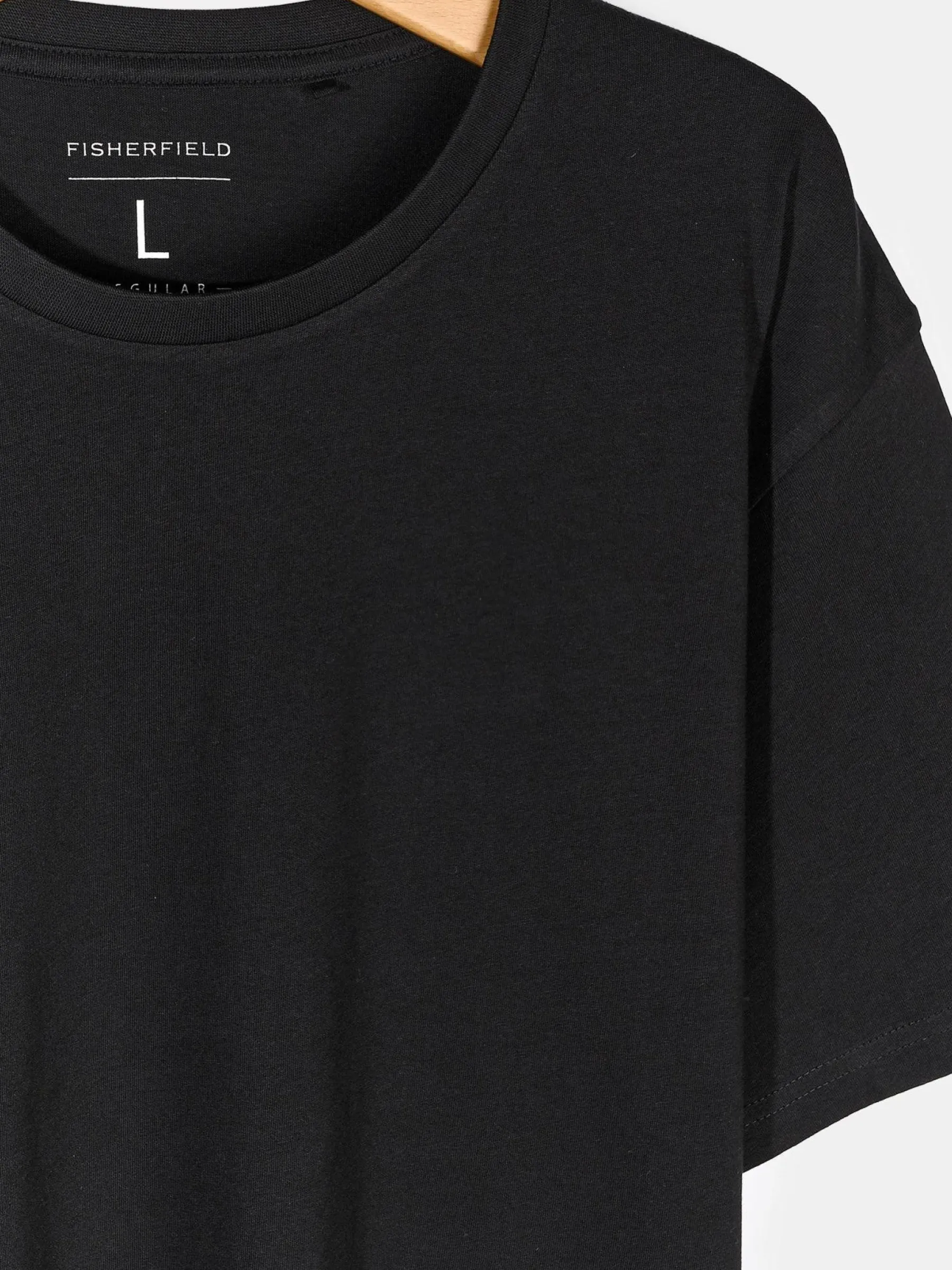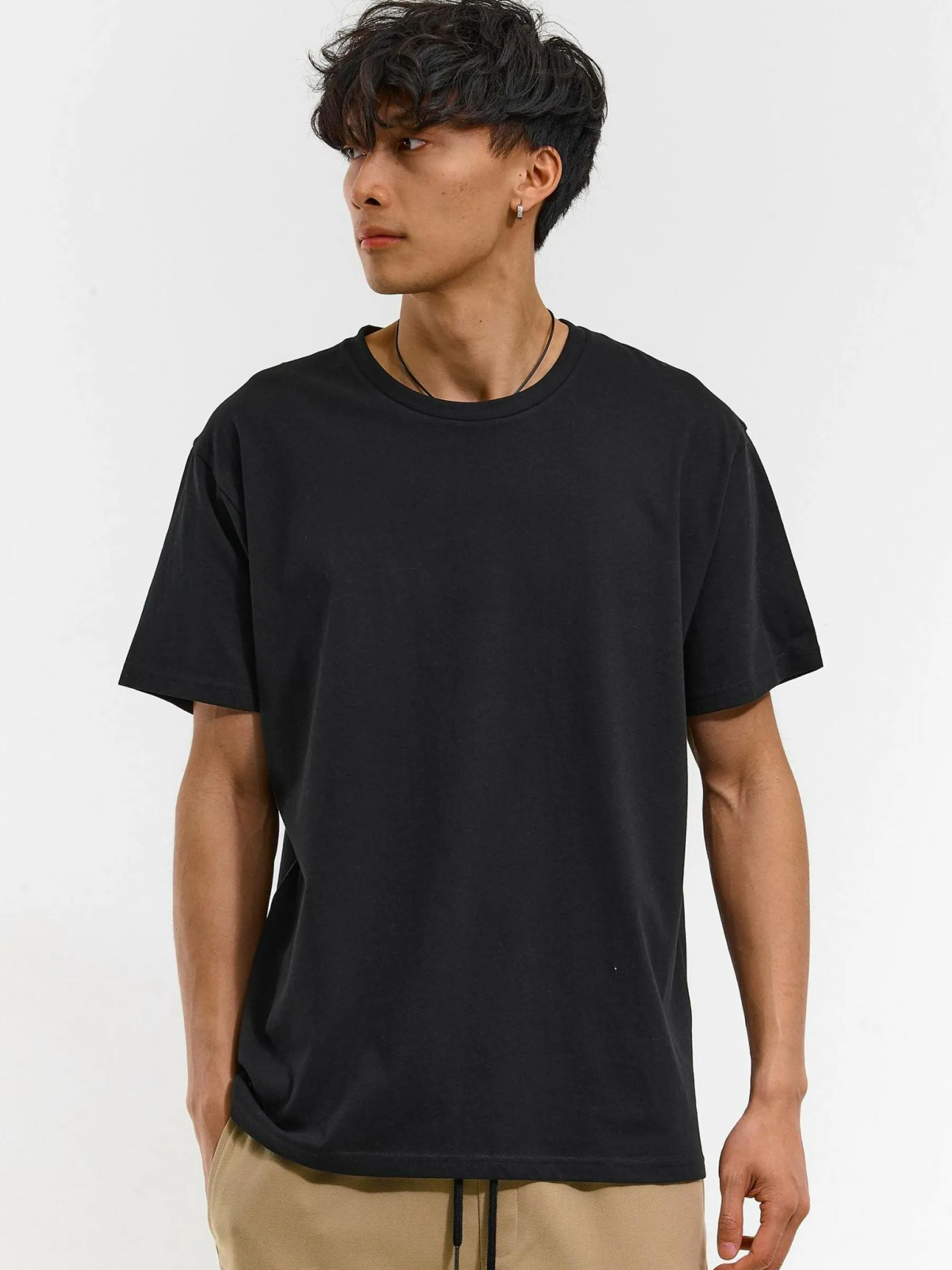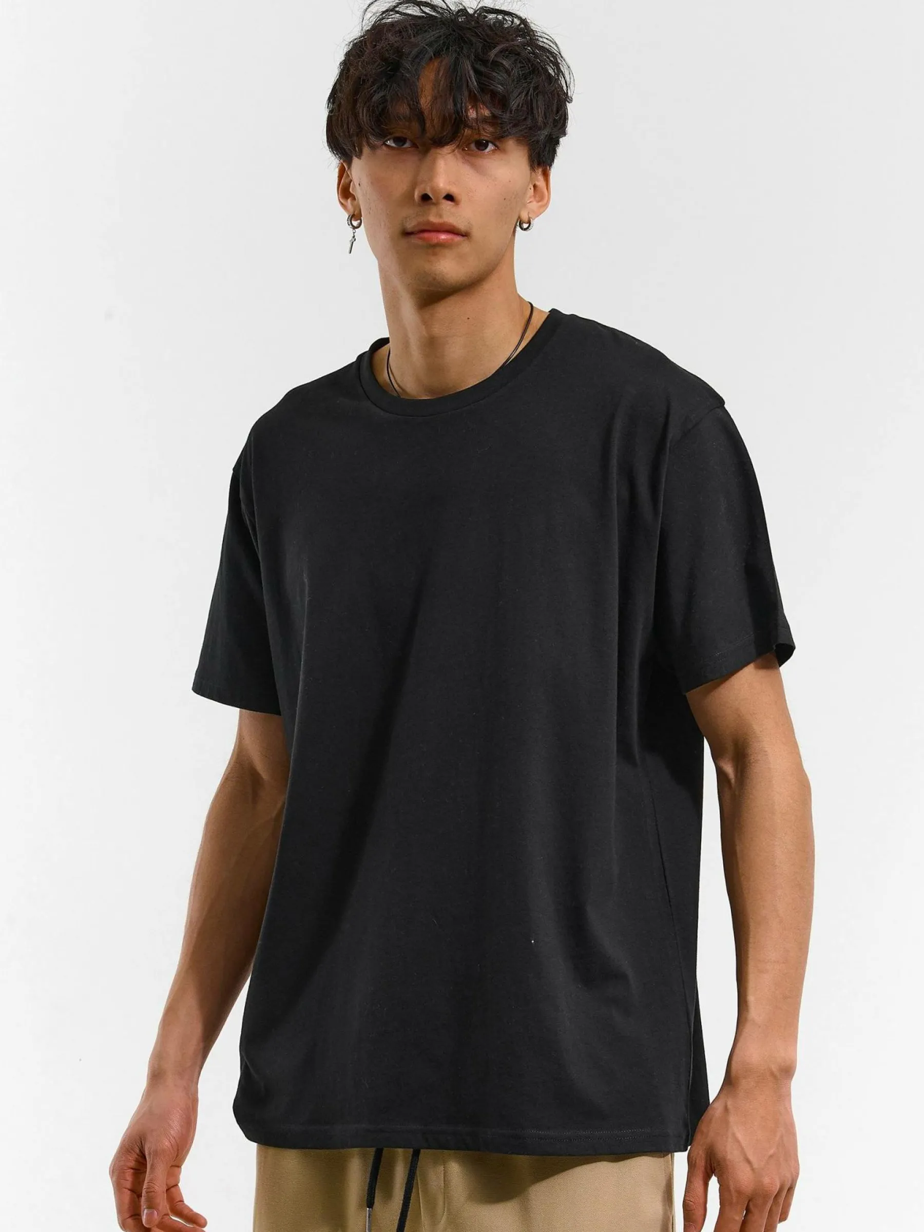 Kolor: czarnyKrój: regularTyp: koszulkaRekaw: krótki rękawPattern style: pojedynczy kolorDetal: nad głowąMateriał:…
