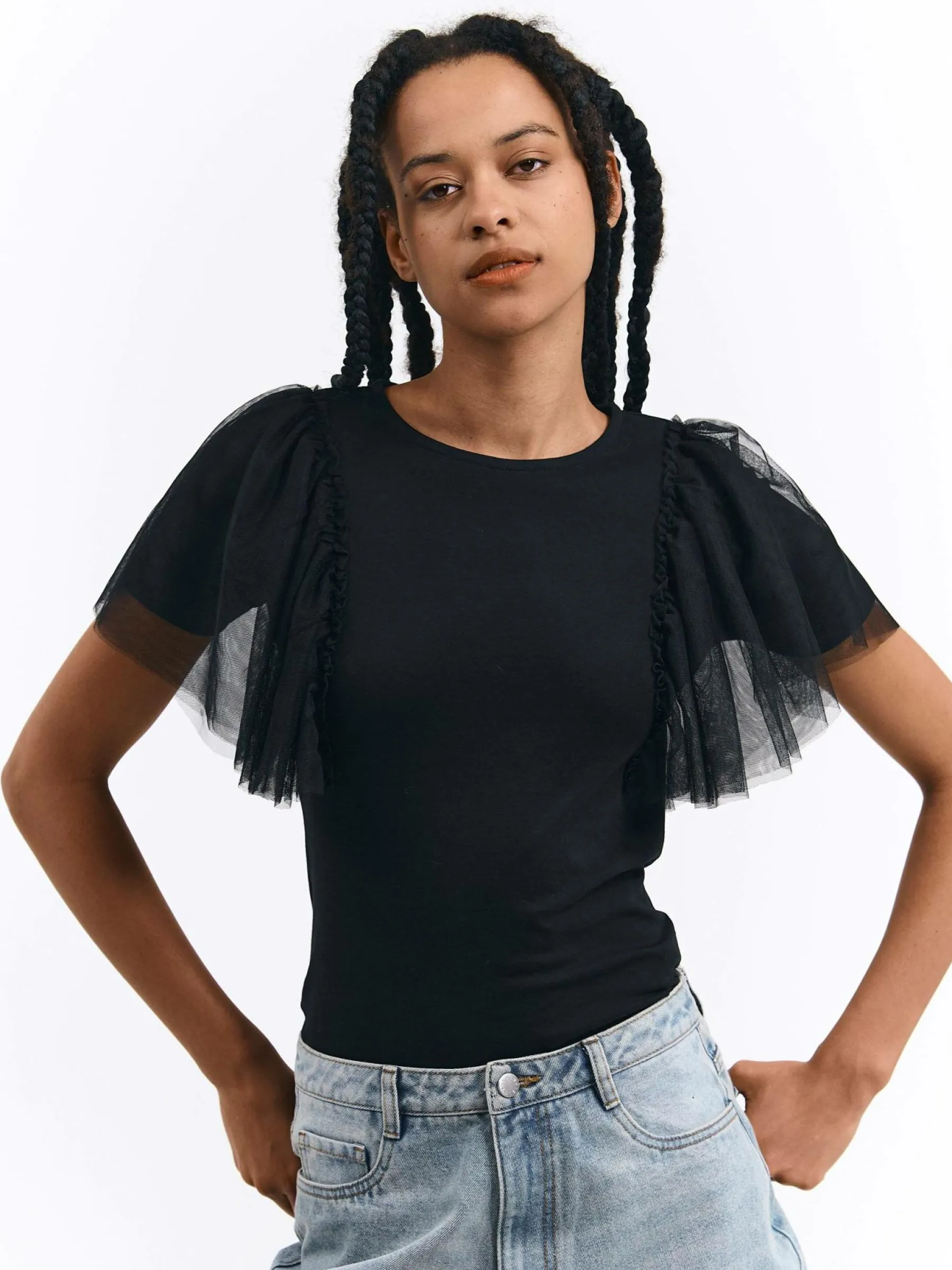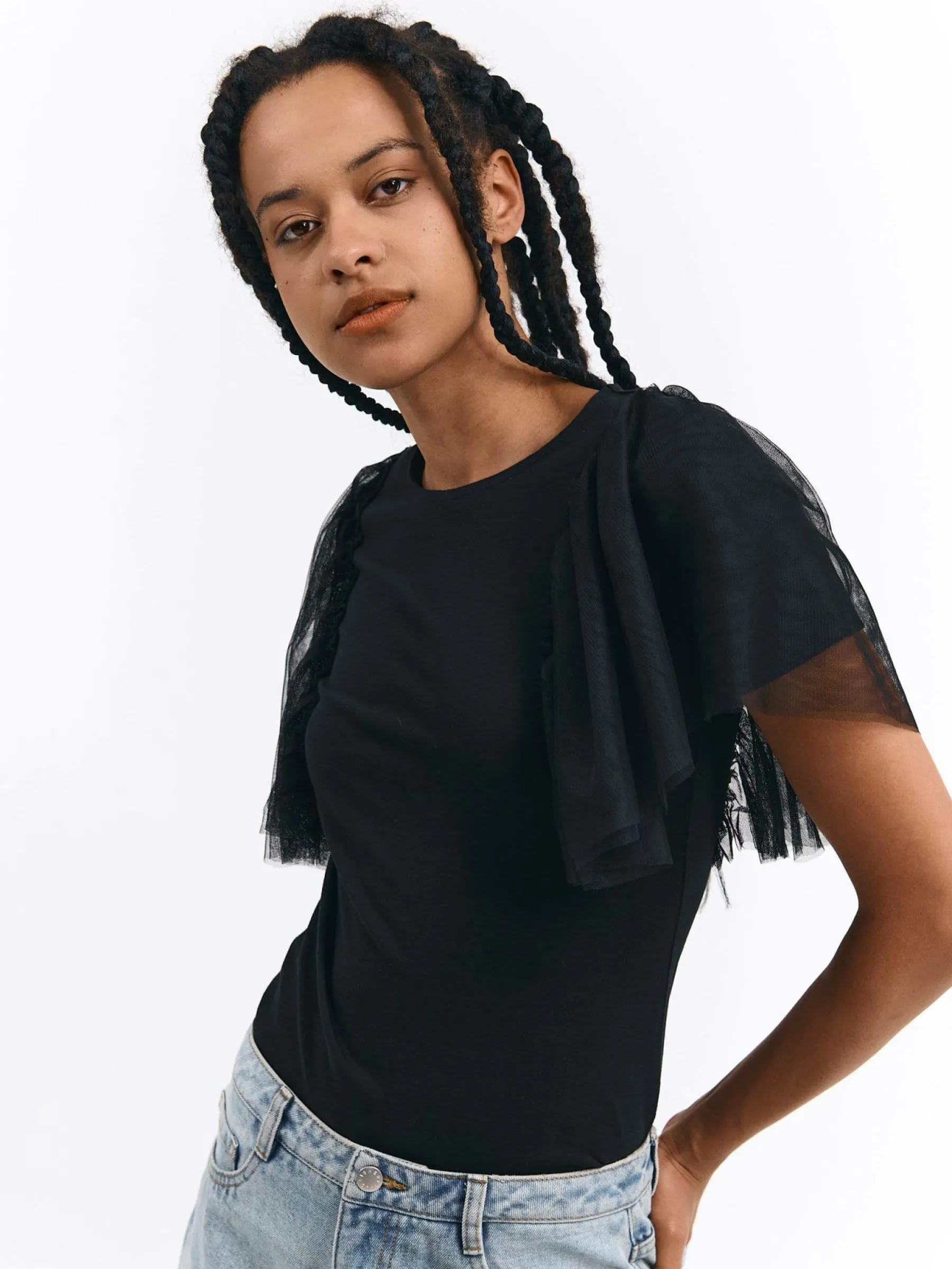 Kolor: czarnyKrój: regularTyp: koszulka, topRekaw: krótki rękawDługość: krótkiPattern style: pojedynczy kolorDeta…