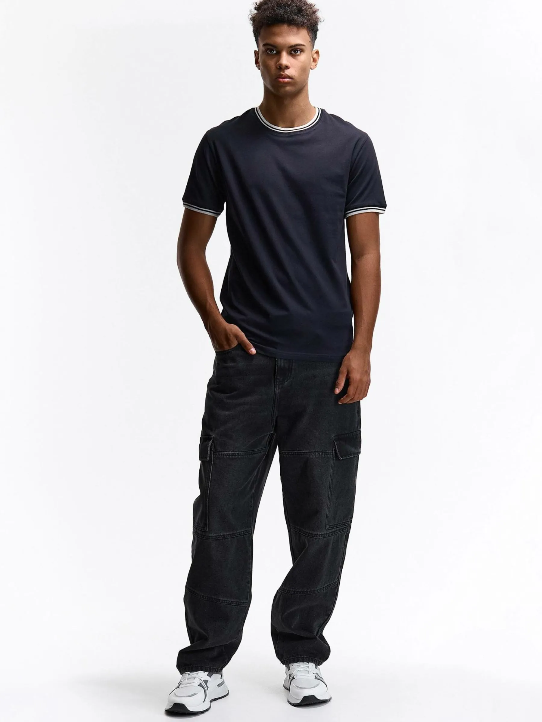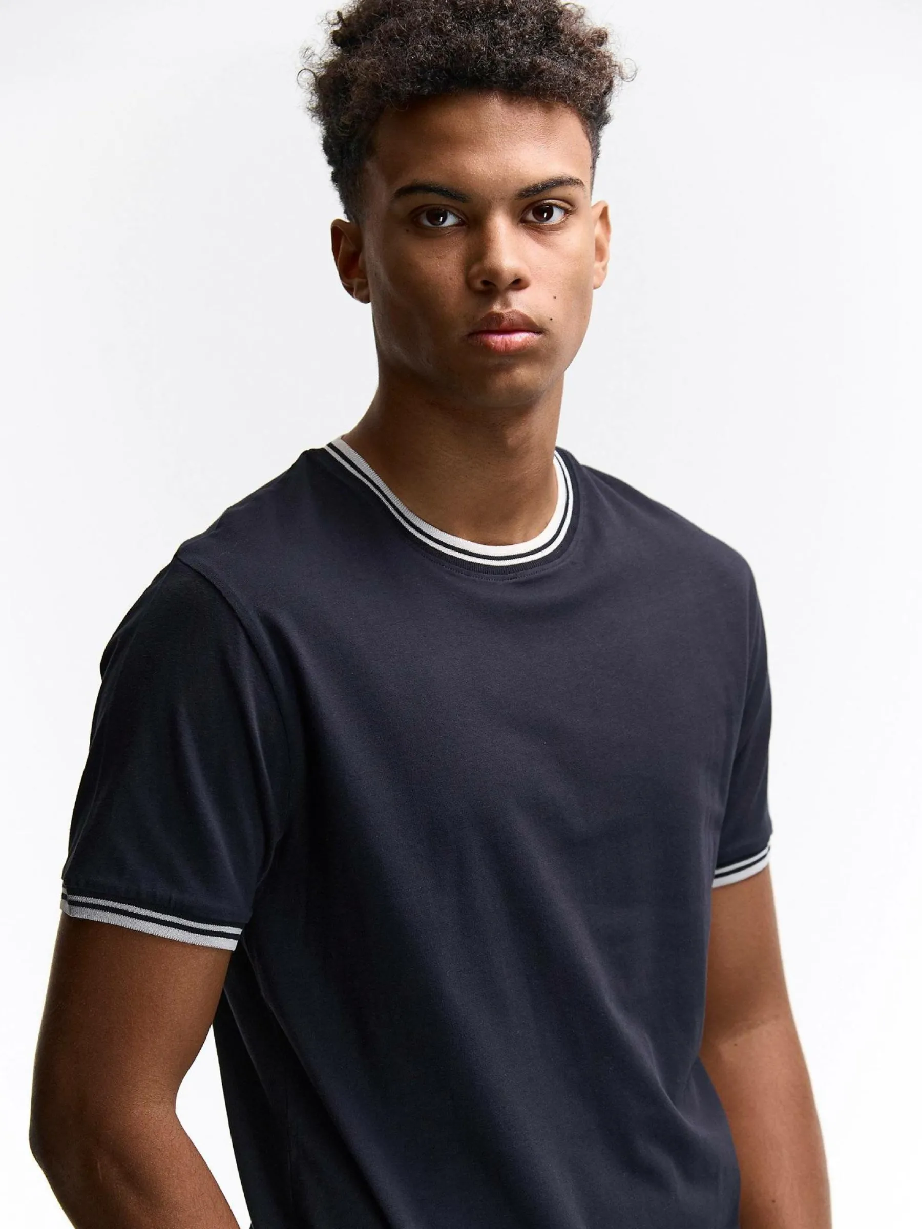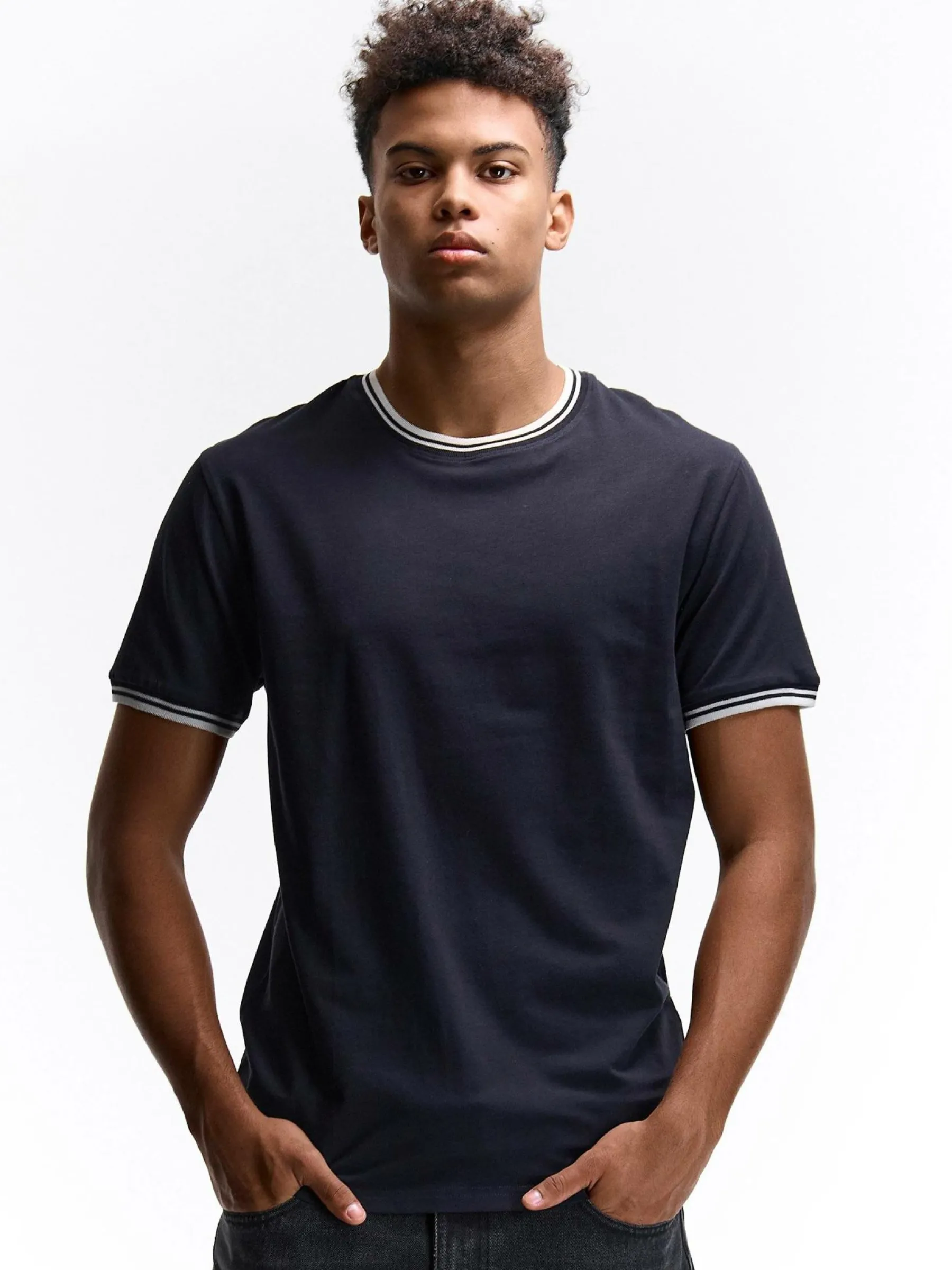Kolor: granatowy, niebieskiKrój: regularTyp: koszulkaRekaw: krótki rękawPattern style: pojedynczy kolorDetal: nad gł…