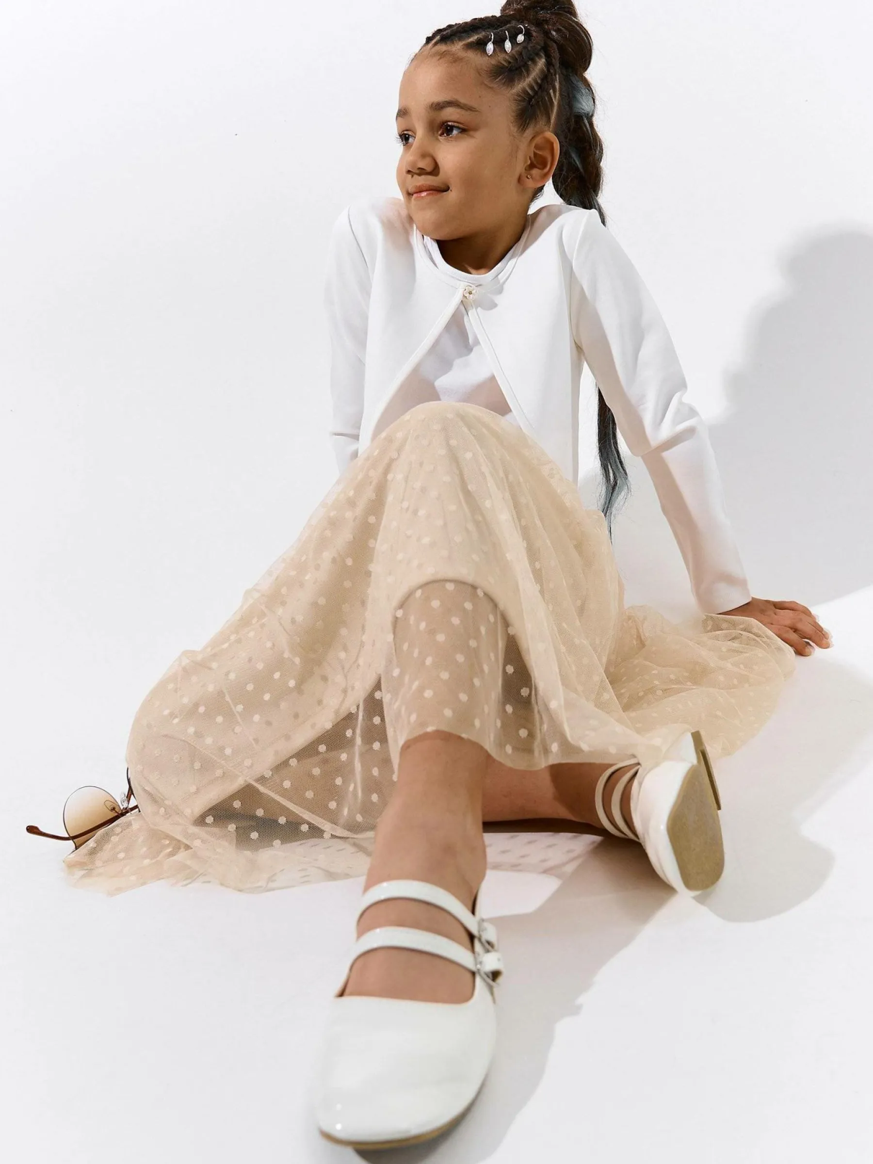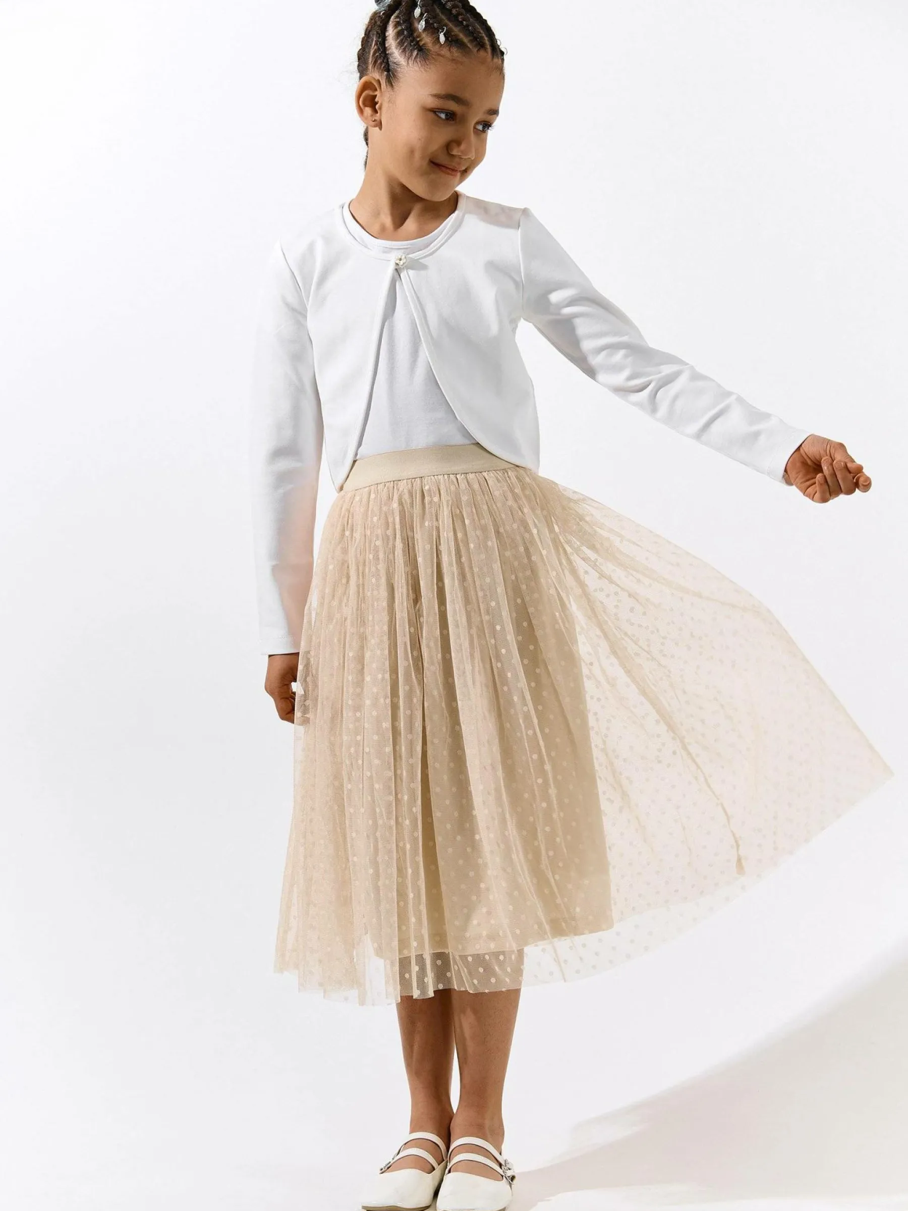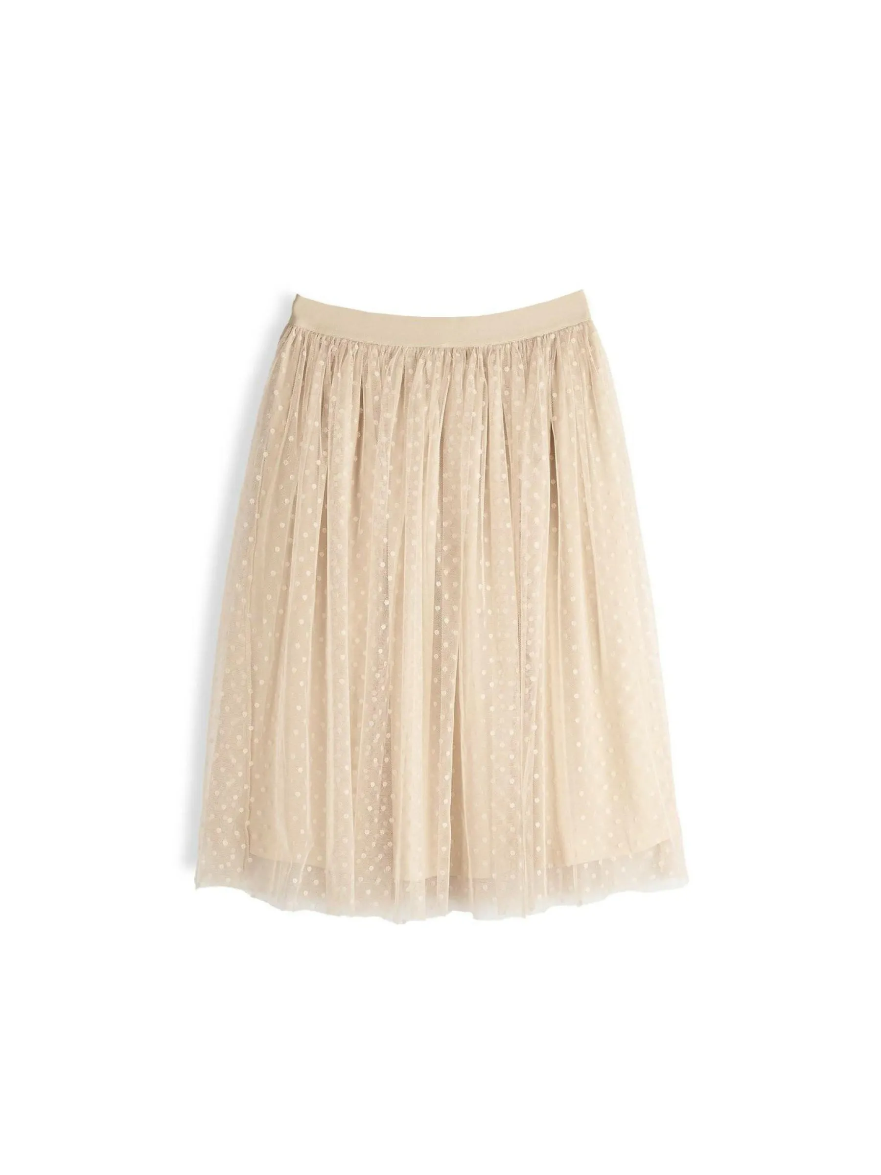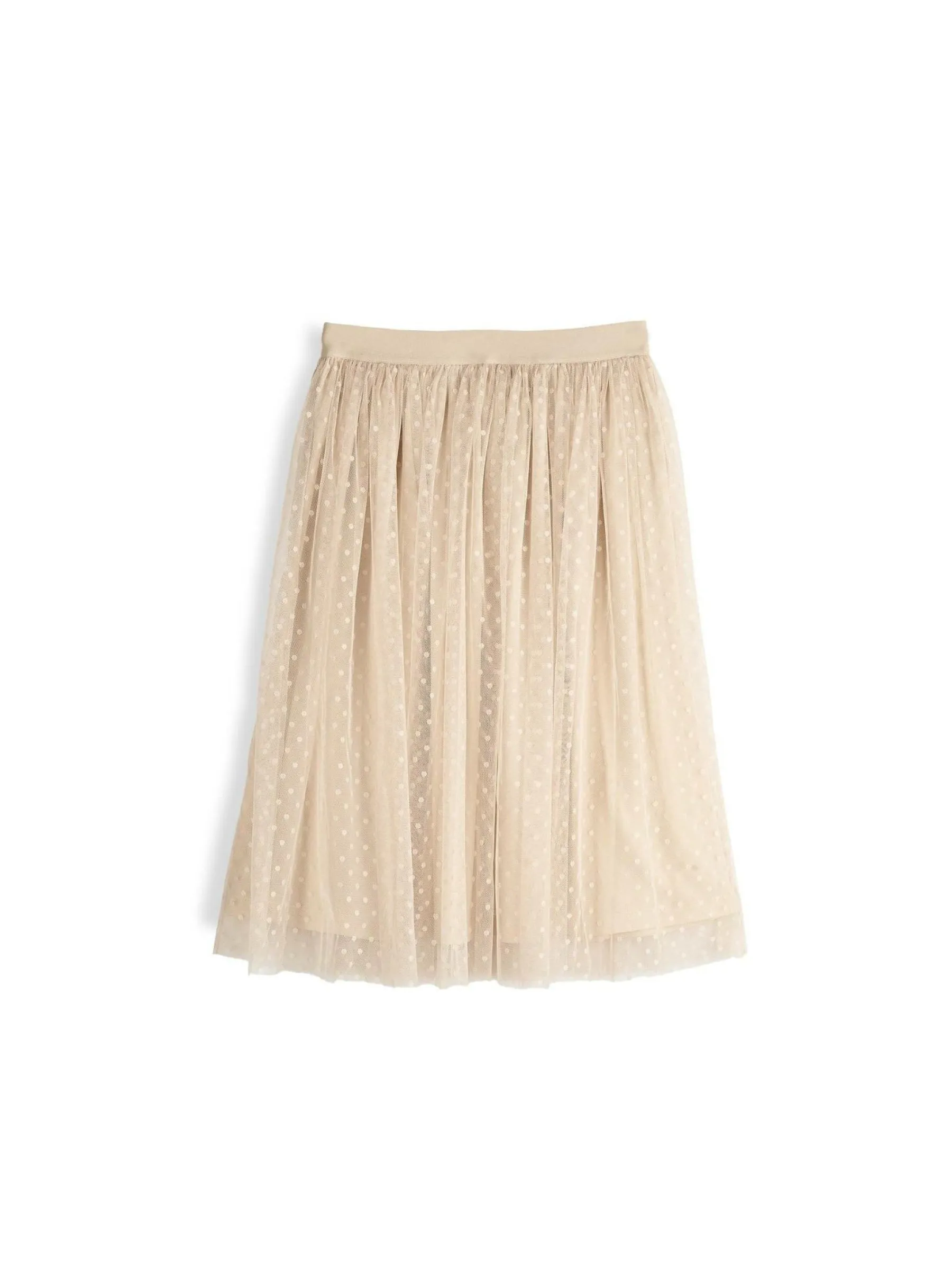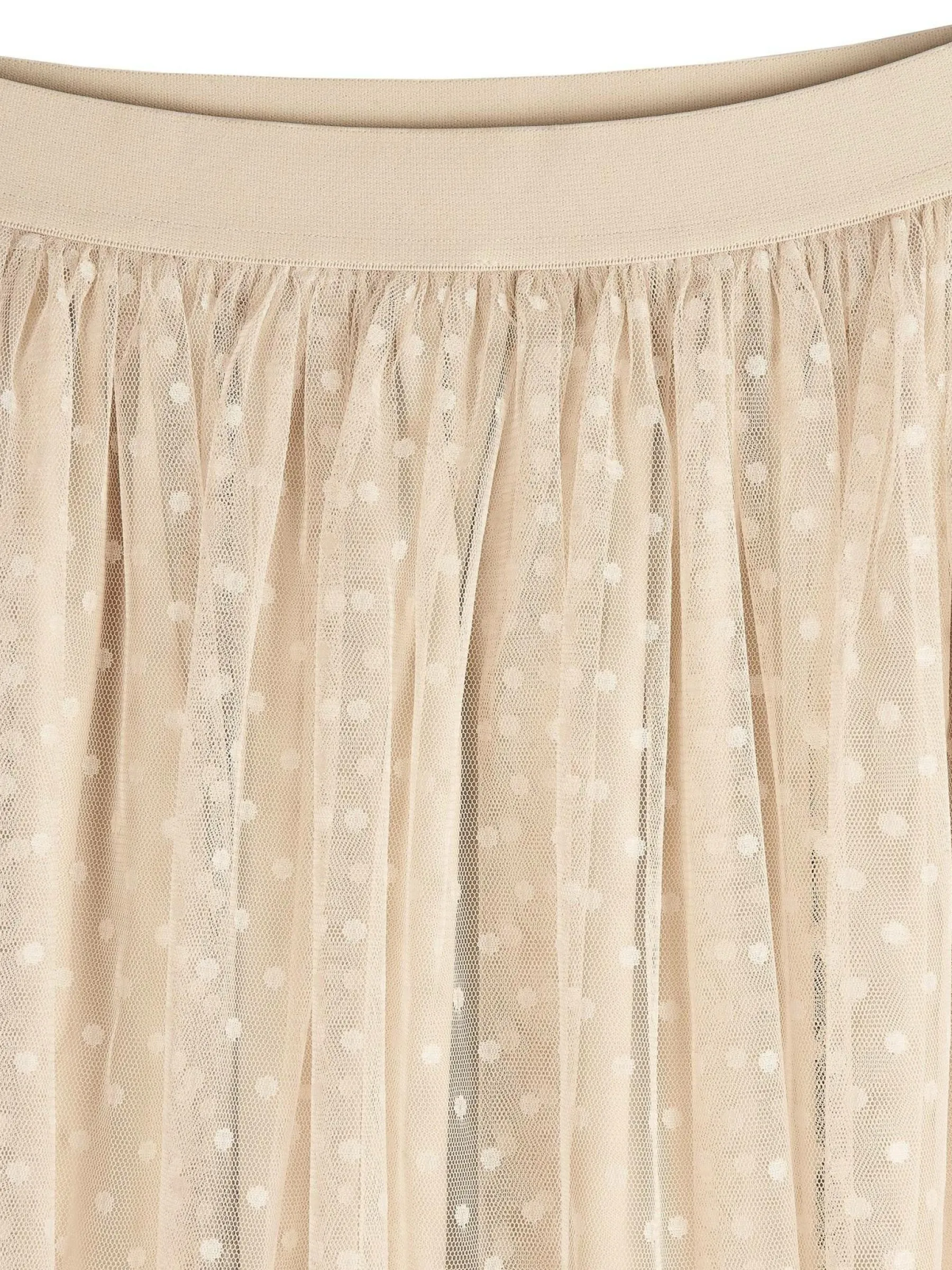 Kolor: beżowyKrój: asyTyp: spódnicaDługość: midiPattern style: pojedynczy kolor, w grochyDetal: z elastyczną opas…