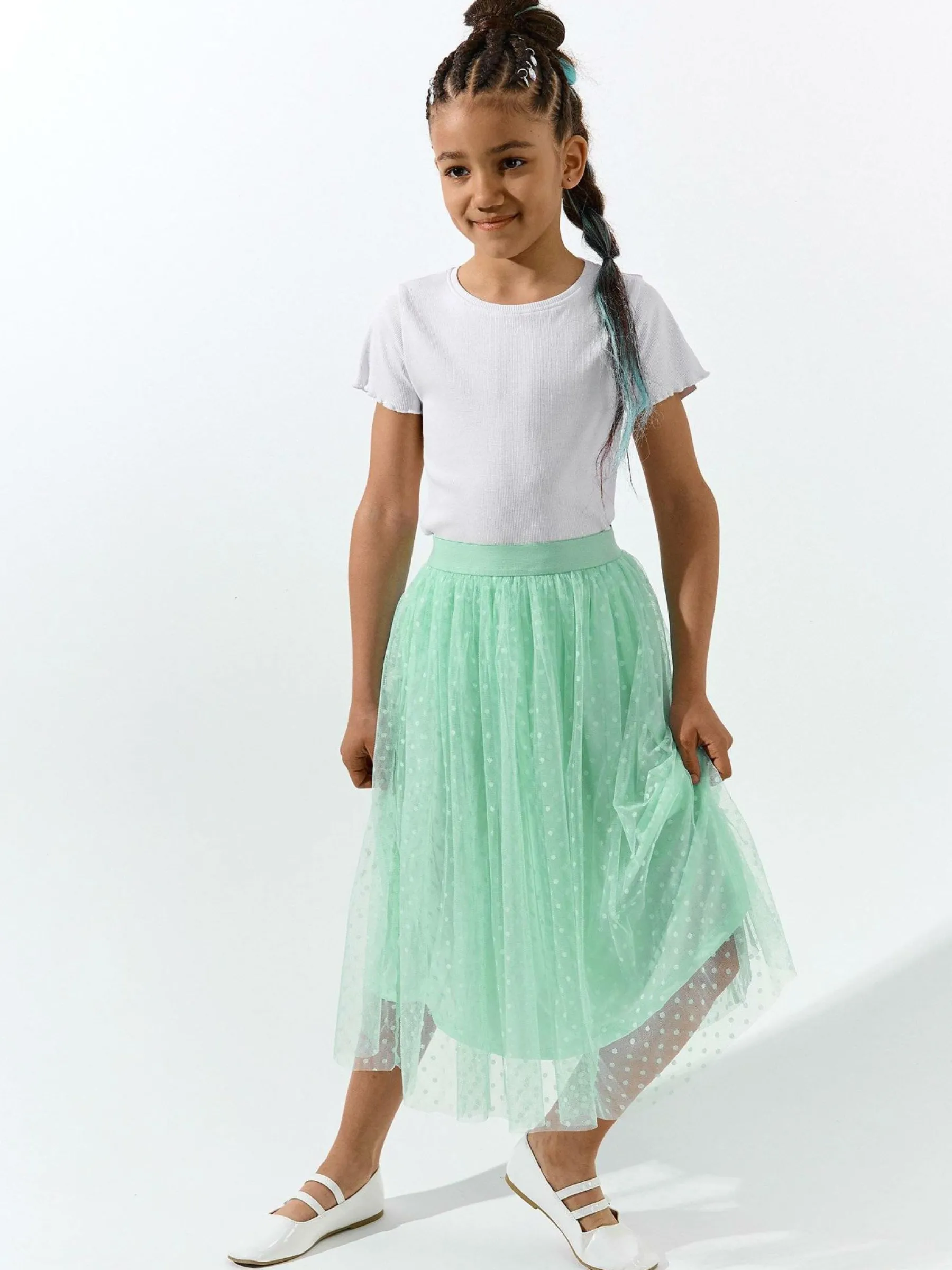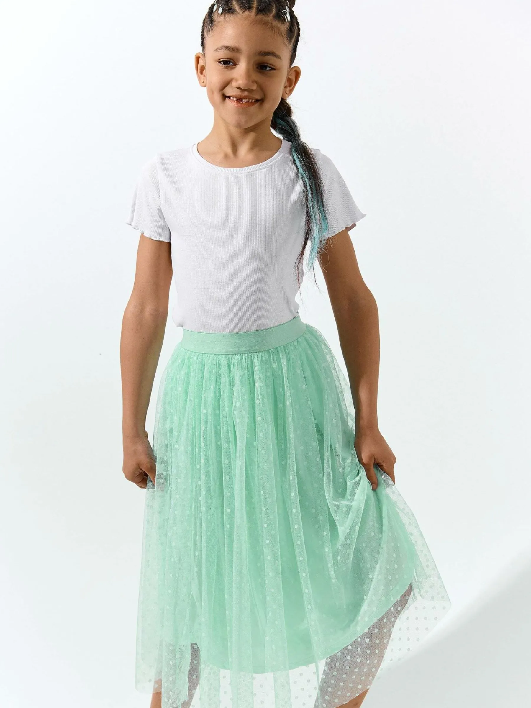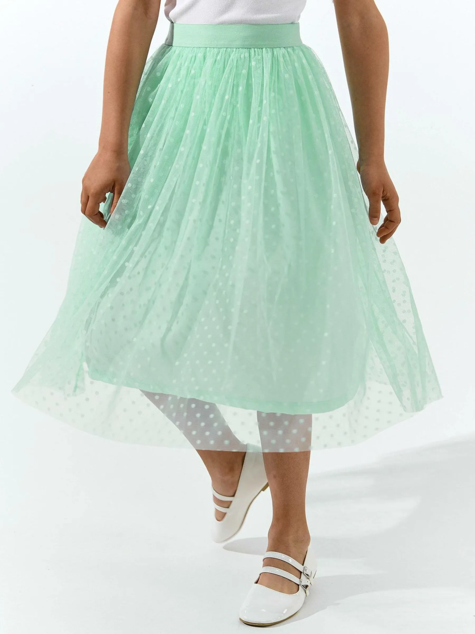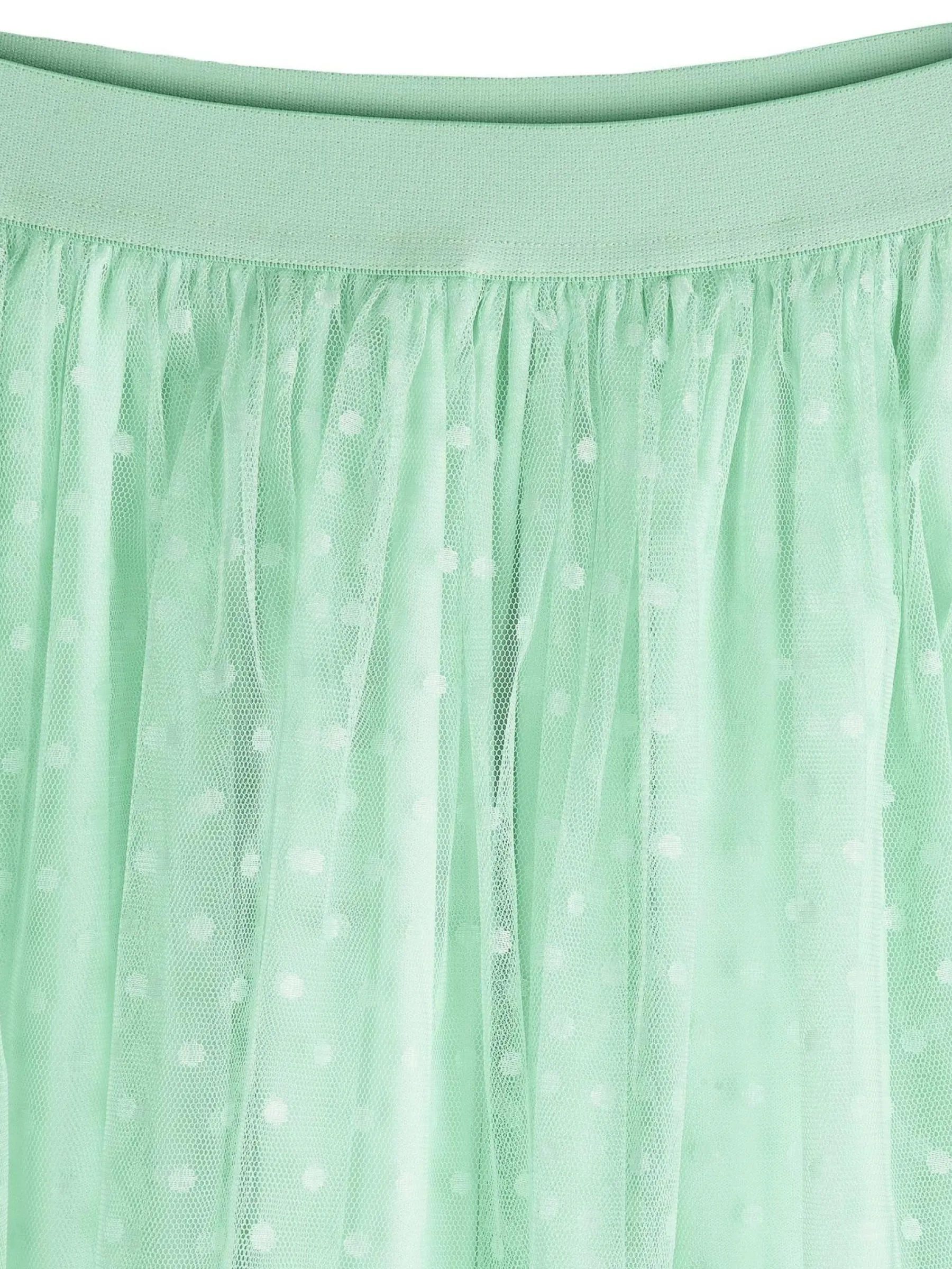 Kolor: zielonyKrój: asyTyp: spódnicaDługość: midiPattern style: pojedynczy kolor, w grochyDetal: z elastyczną opas…