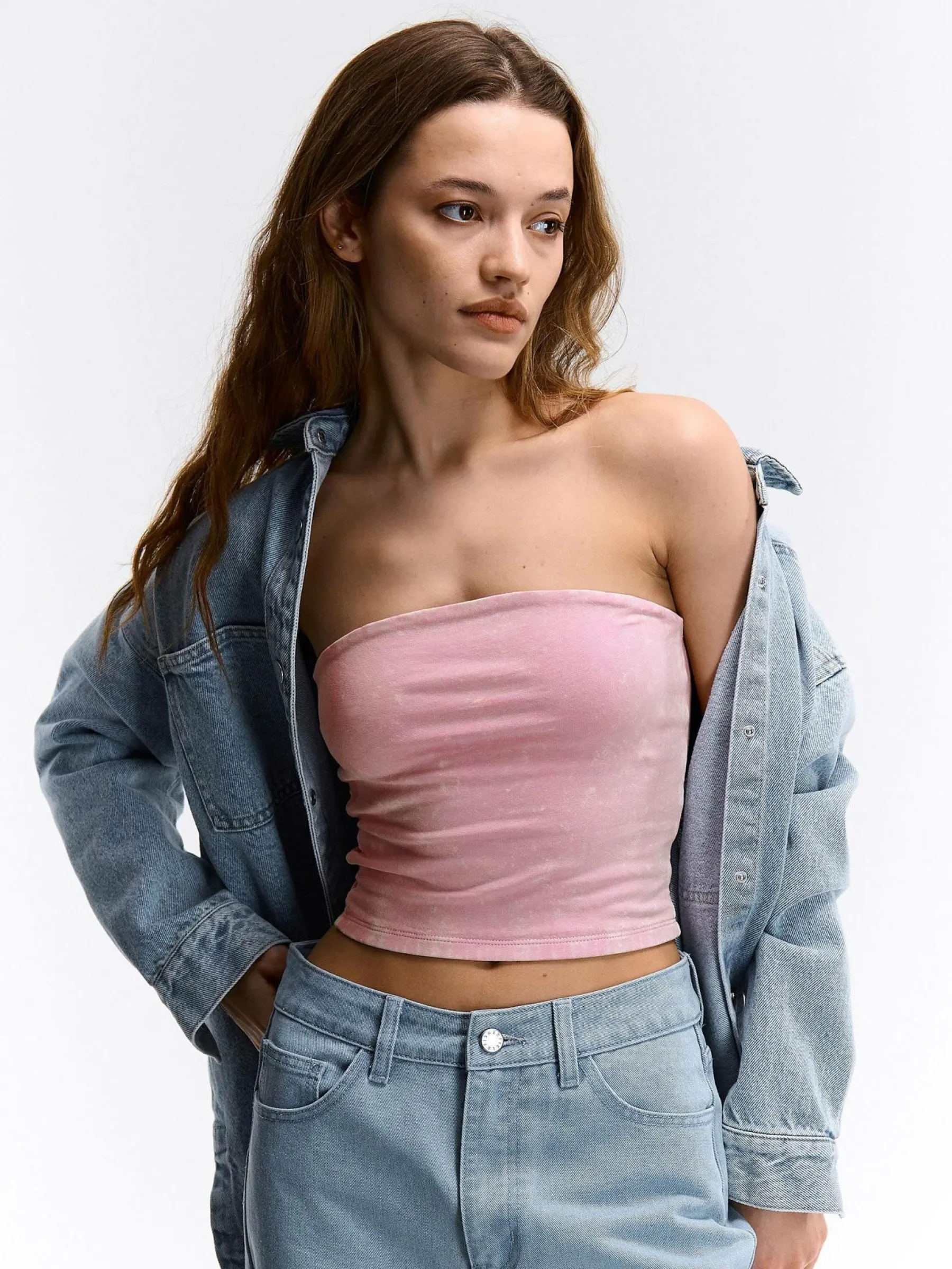 Kolor: różowyKrój: regularTyp: topRekaw: bez rękawówDługość: krótki topPattern style: pojedynczy kolorDetal: na…