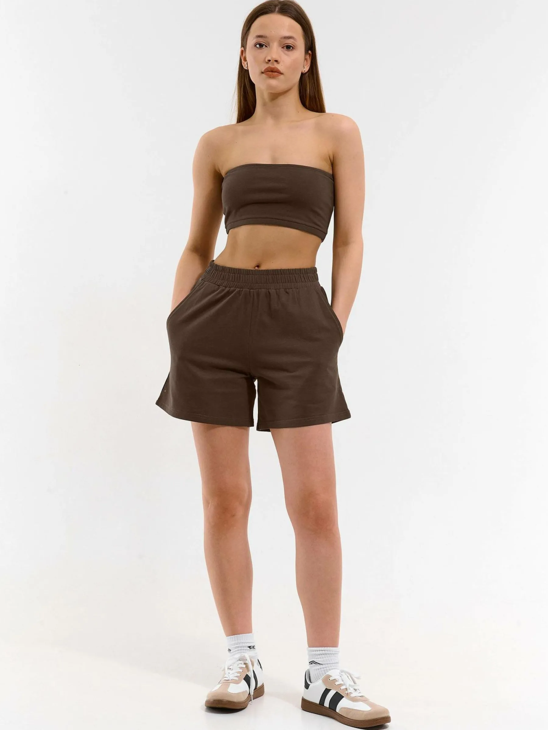 Kolor: brązowyKrój: regularTyp: topRekaw: bez rękawówDługość: krótki topPattern style: pojedynczy kolorDetal: na…