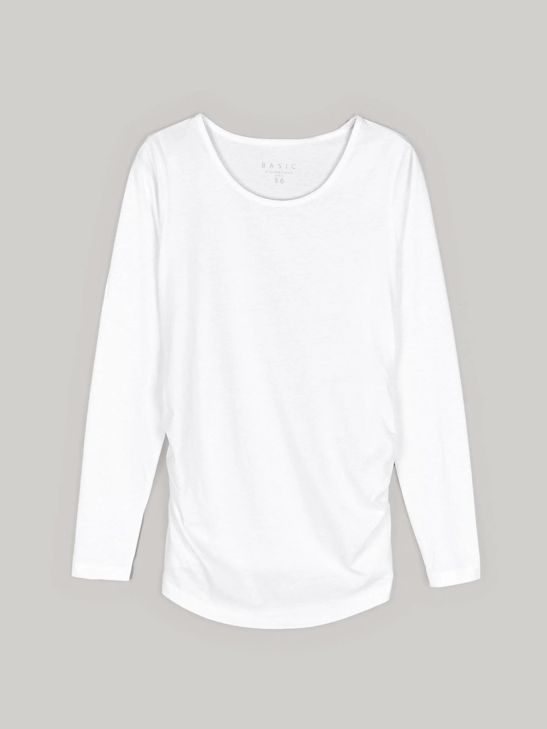 Kolor: białyKrój: podstawowyTyp: topRekaw: długi rękawDługość: krótkiPattern style: pojedynczy kolorDetal: nad g…