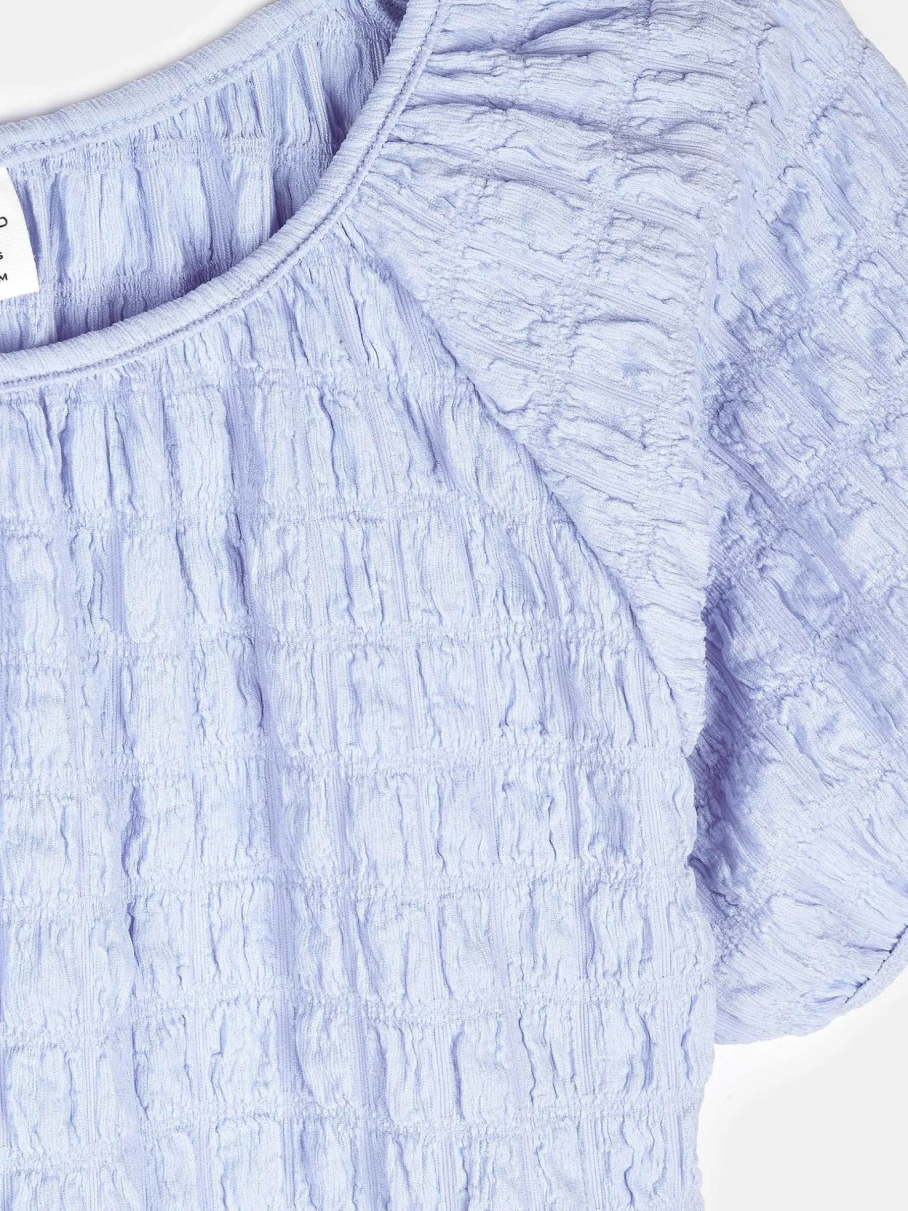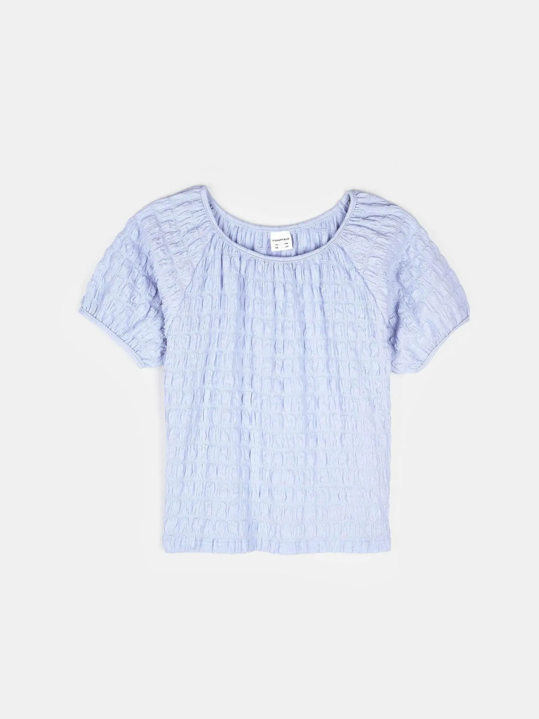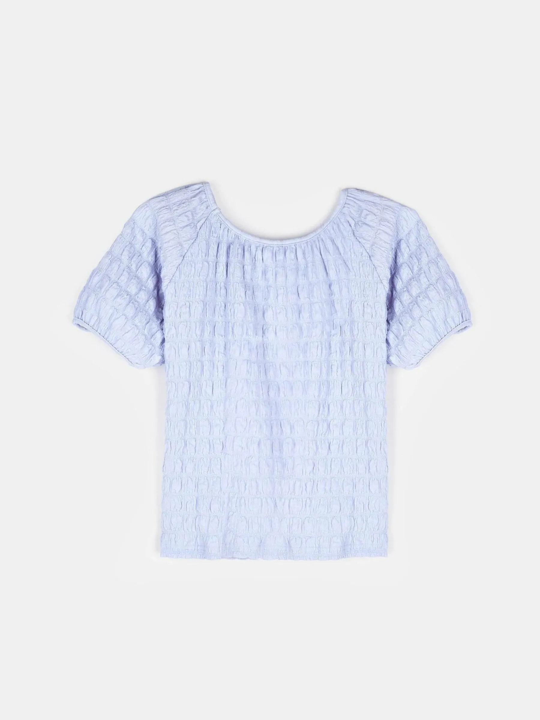 Kolor: niebieskiKrój: regularTyp: topRekaw: krótki rękawDługość: krótkiPattern style: pojedynczy kolor, strukturo…
