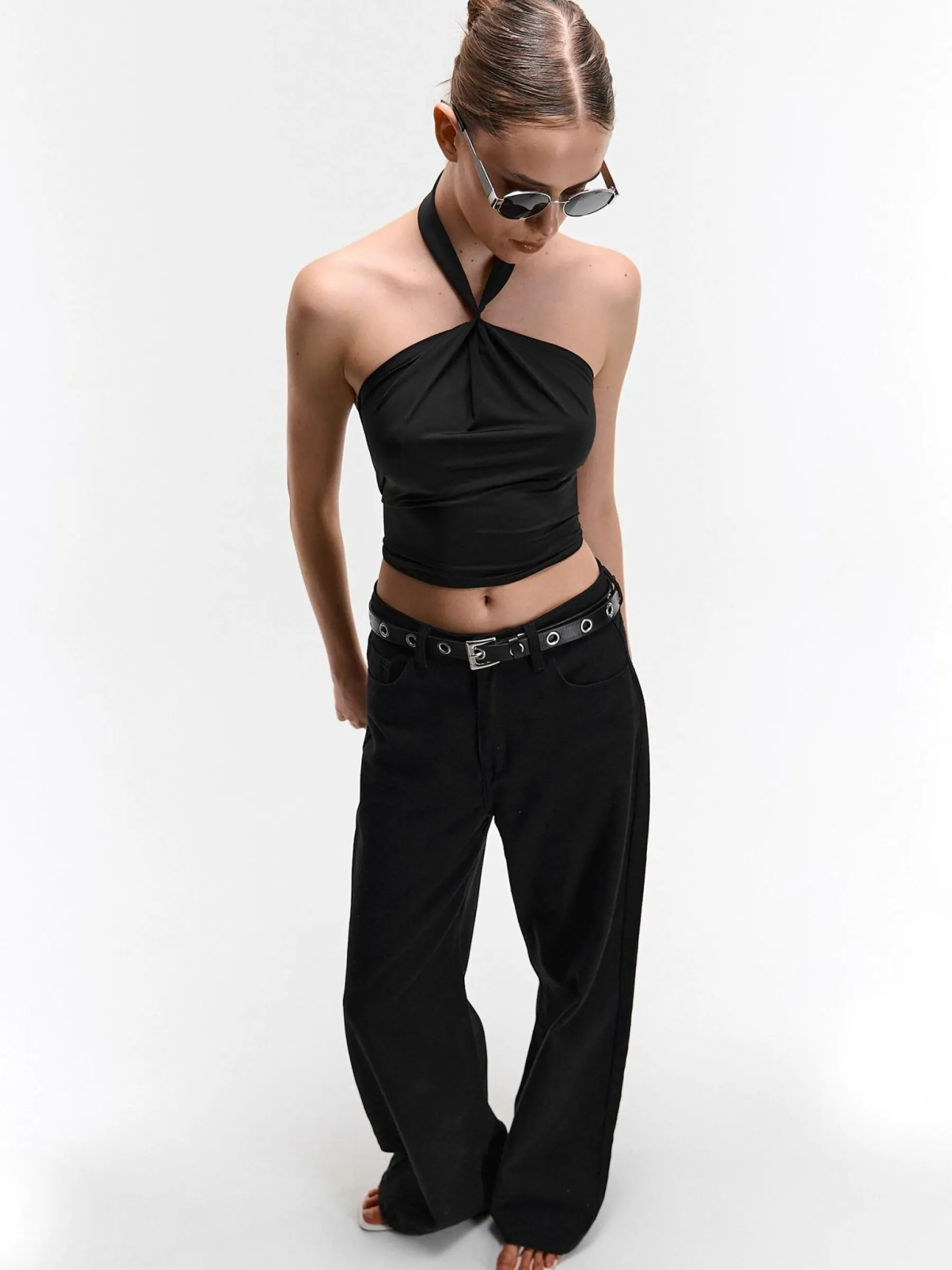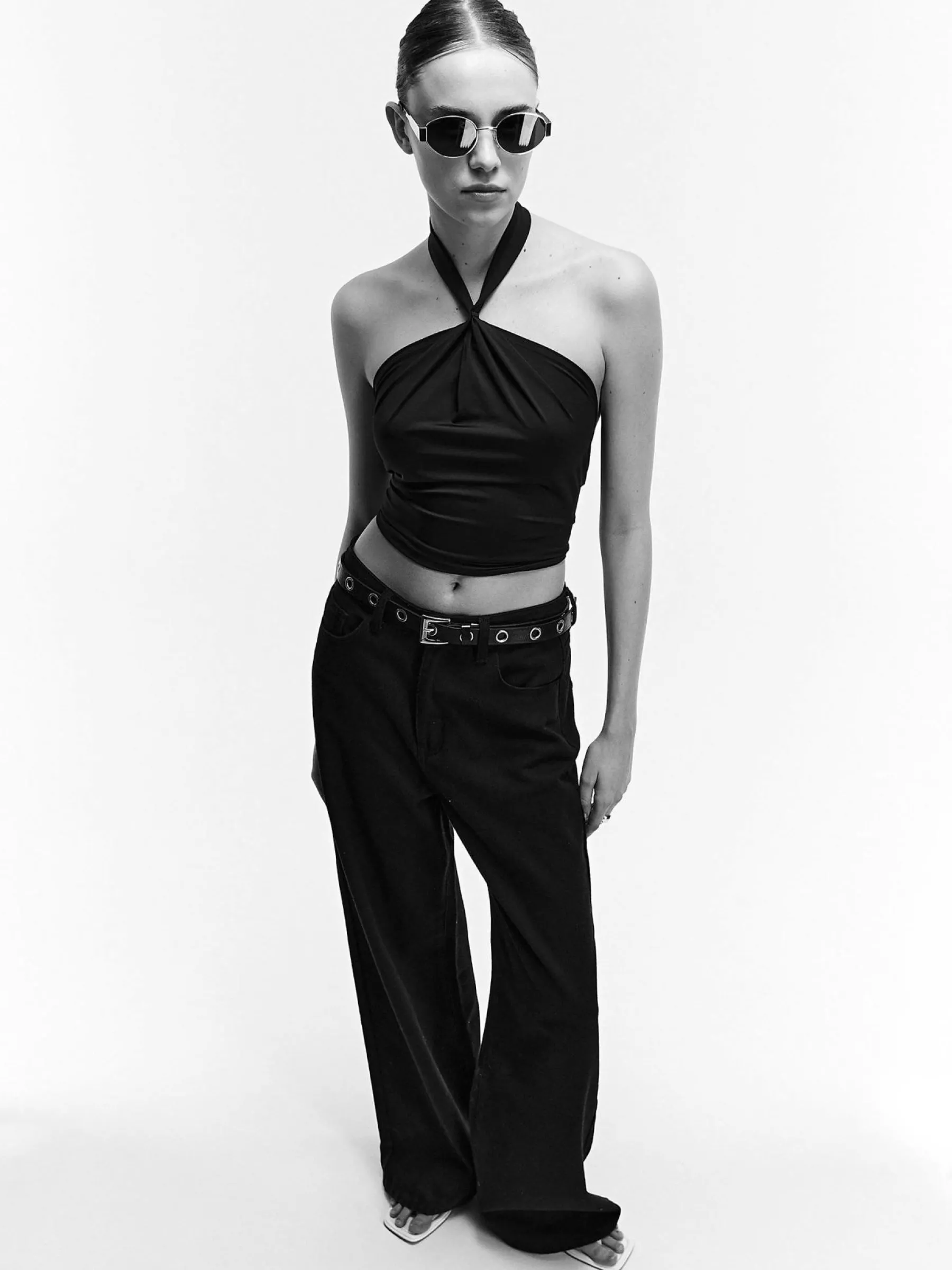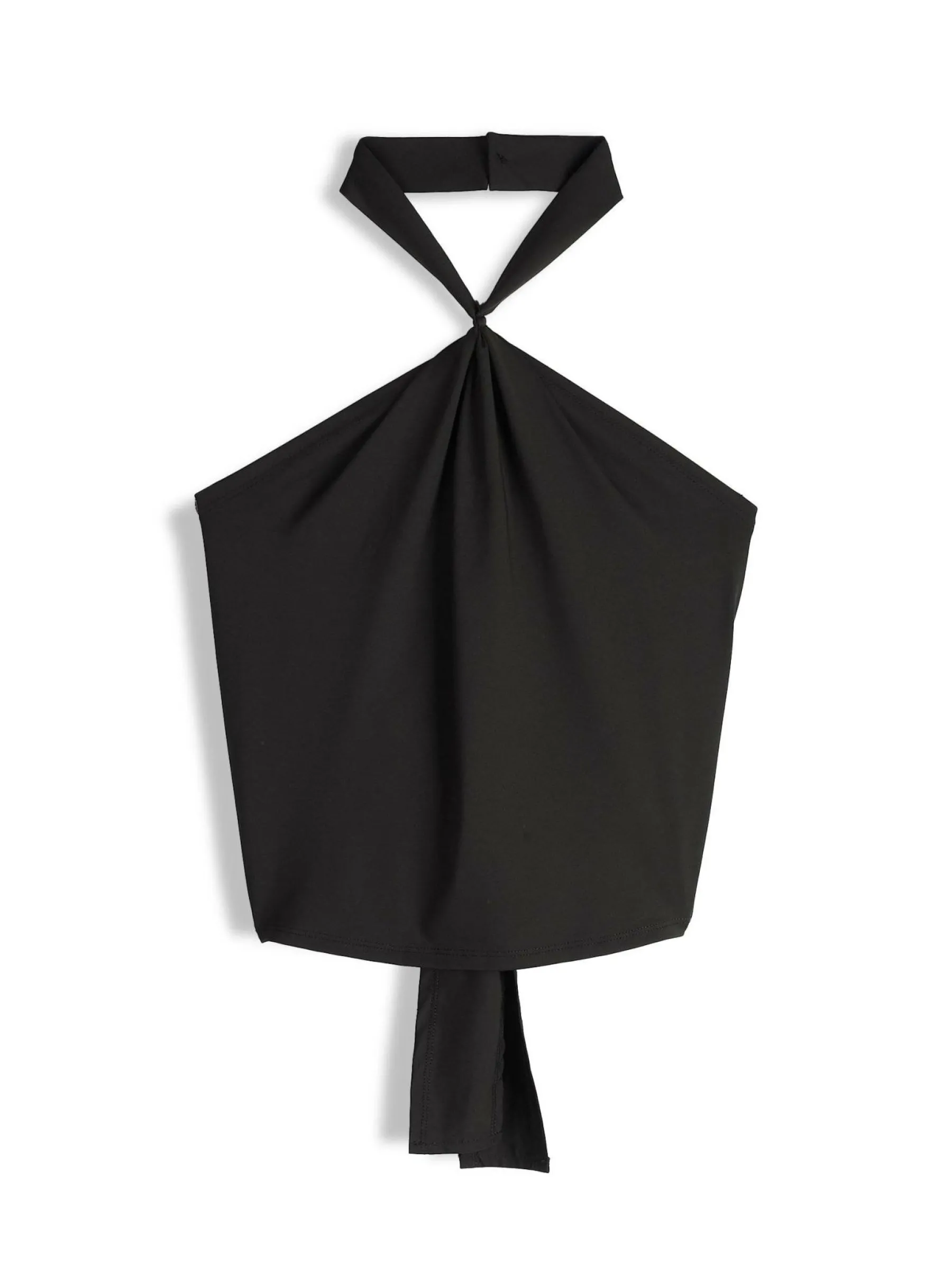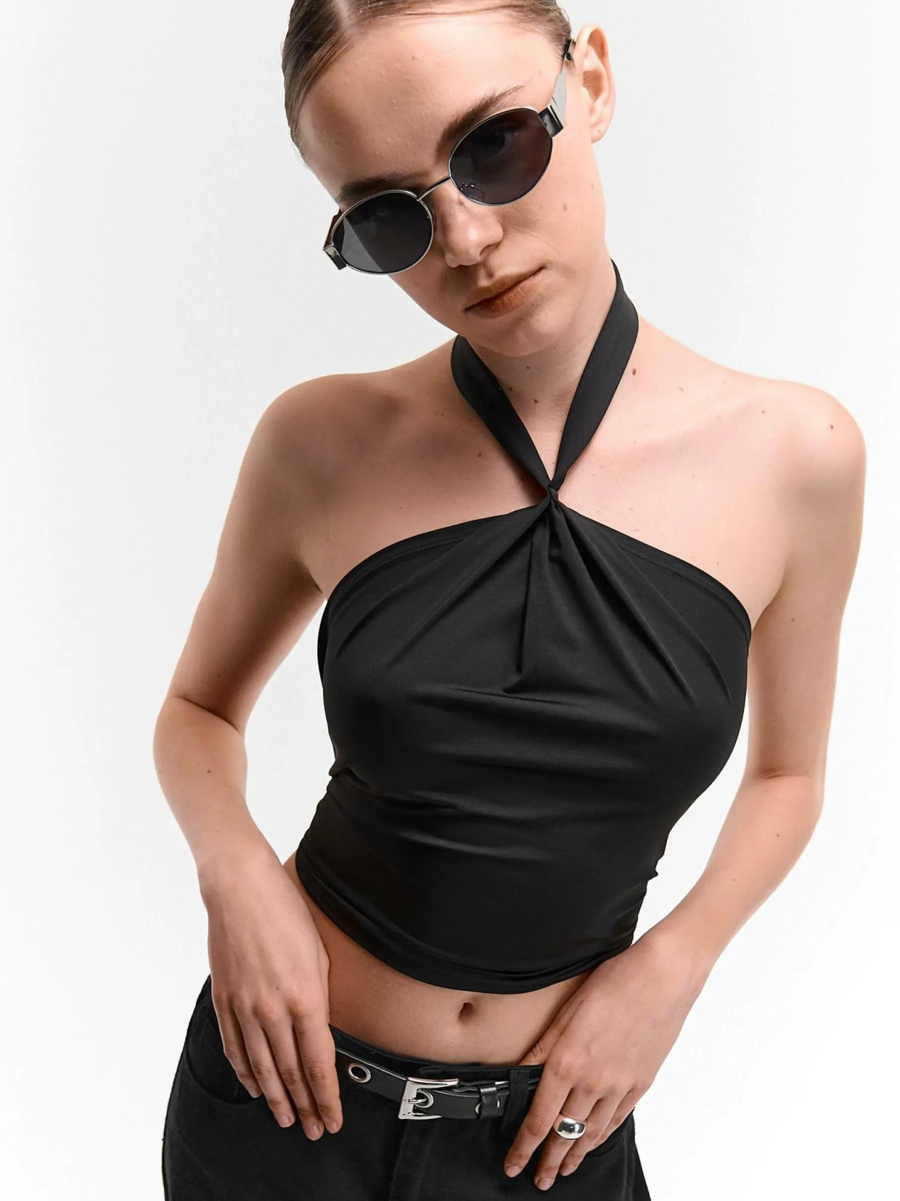 Kolor: czarnyKrój: z marszczeniem, z odkrytymi ramionamiTyp: topRekaw: bez rękawówDługość: krótki topPattern styl…
