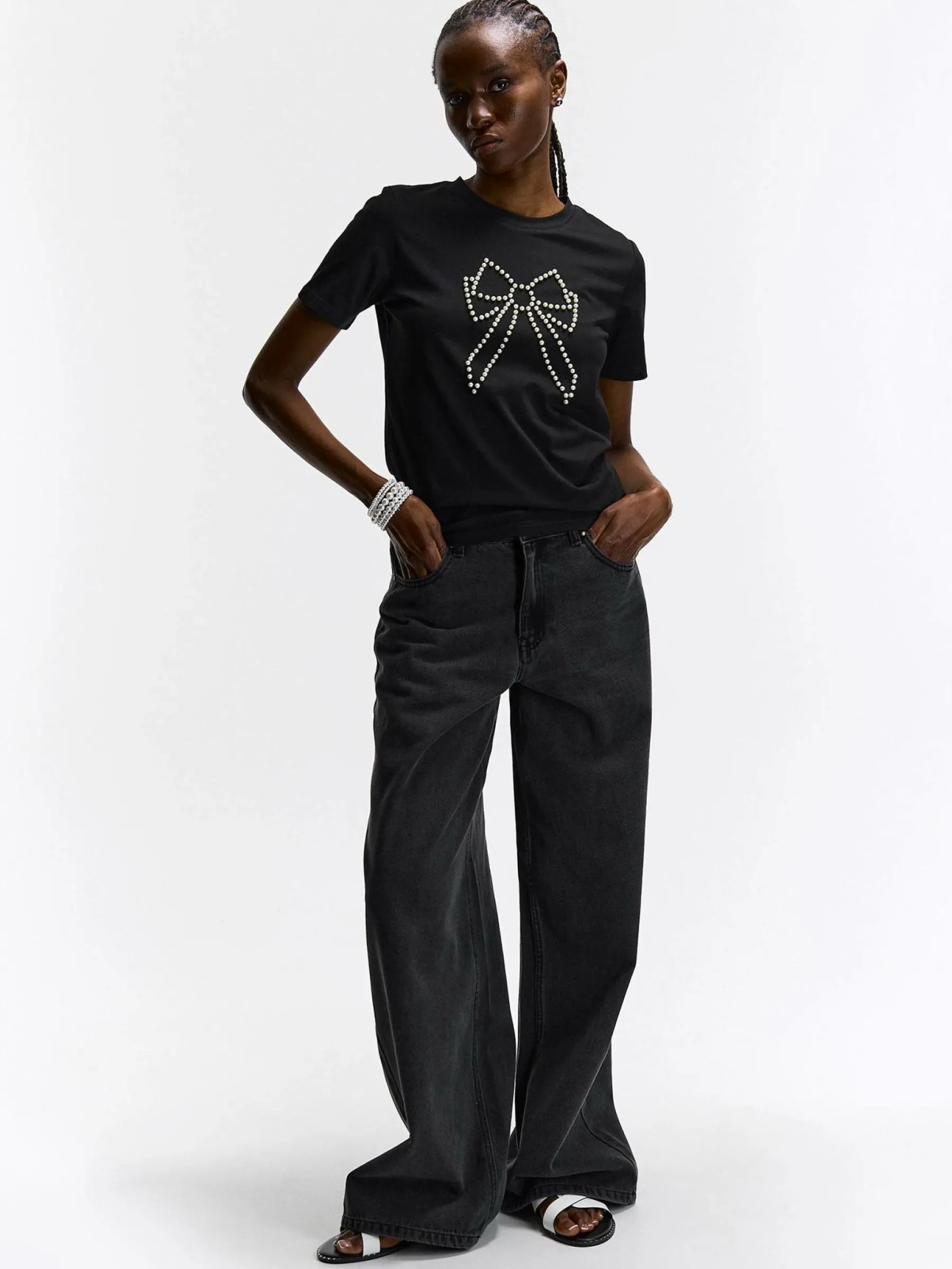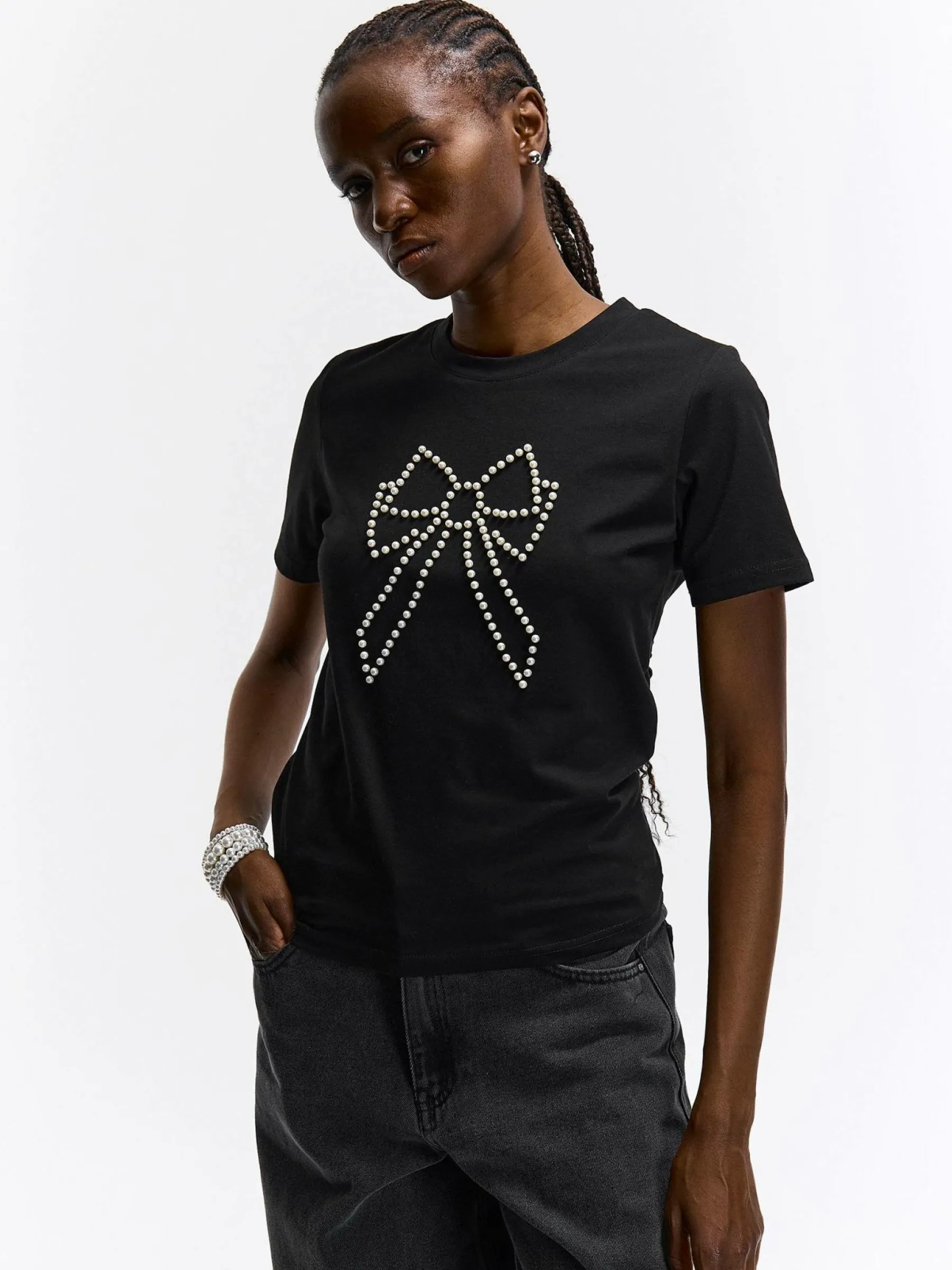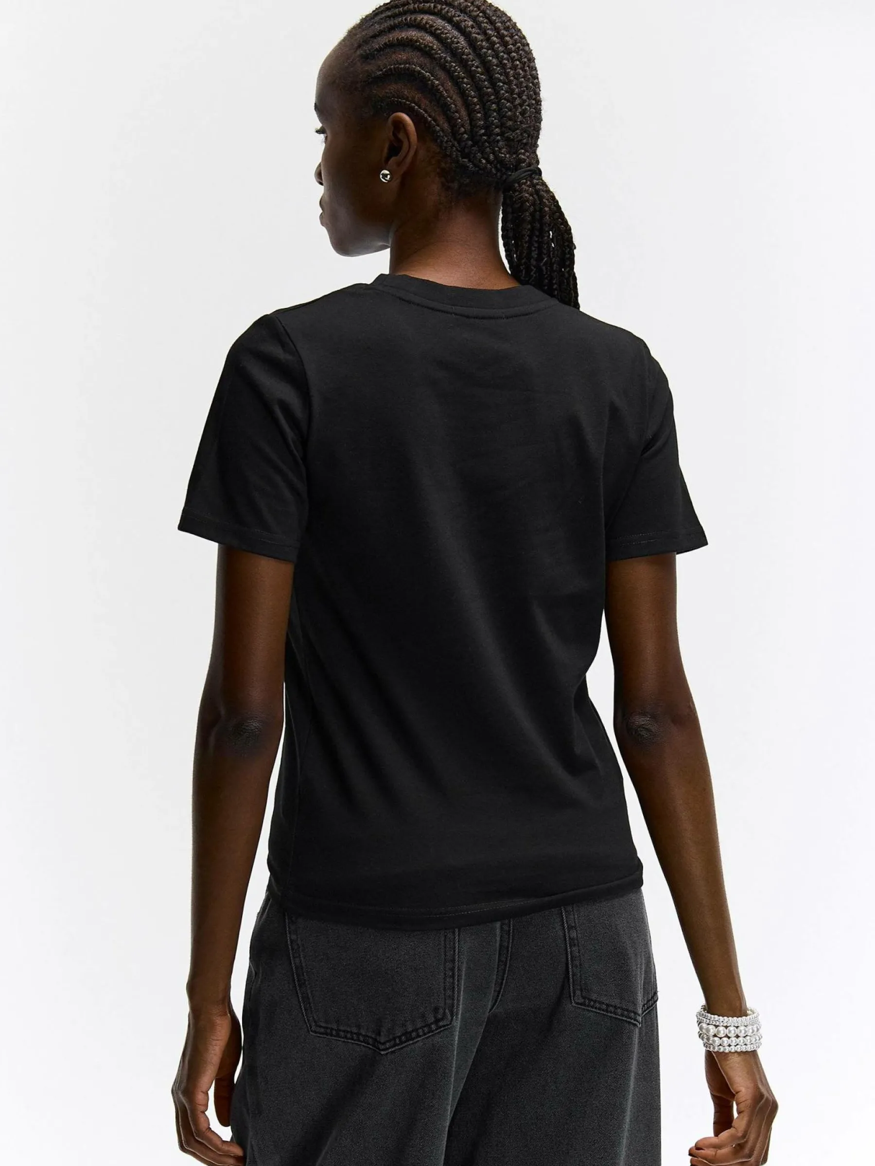Kolor: czarnyKrój: regularTyp: topRekaw: krótki rękawDługość: krótkiPattern style: pojedynczy kolorDetal: nad gł…