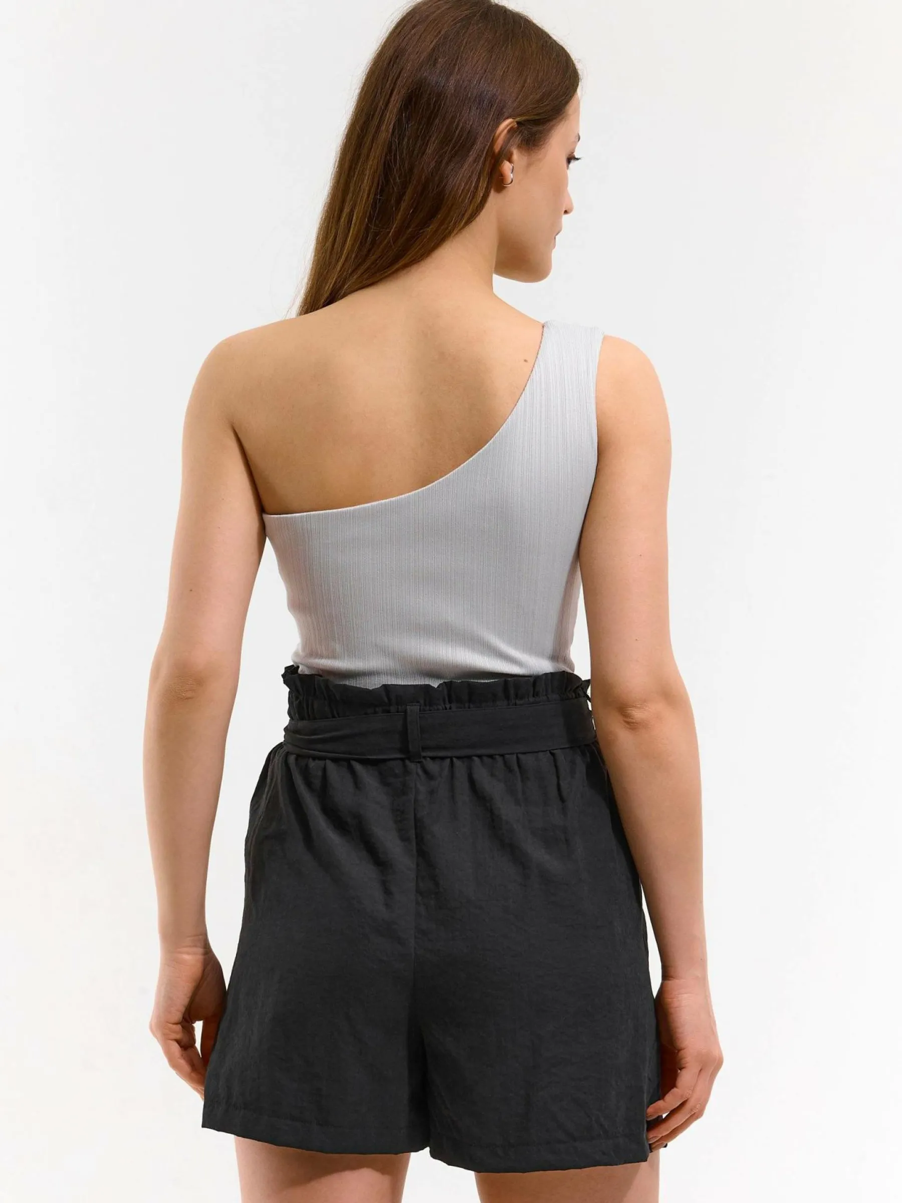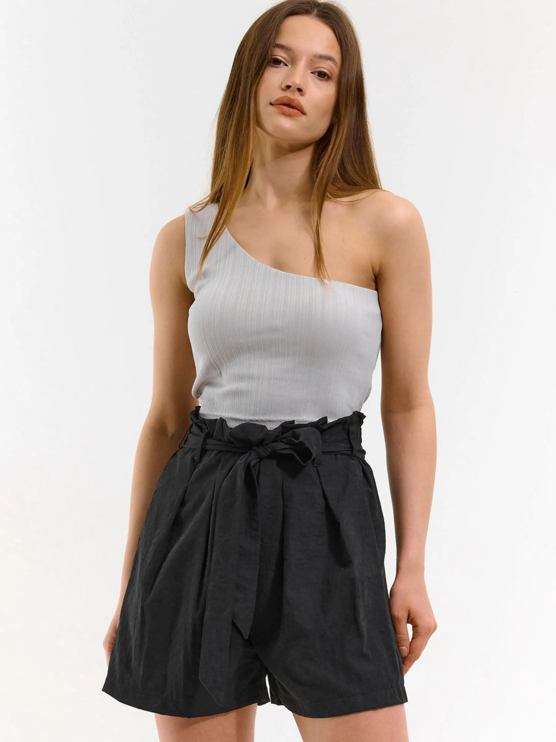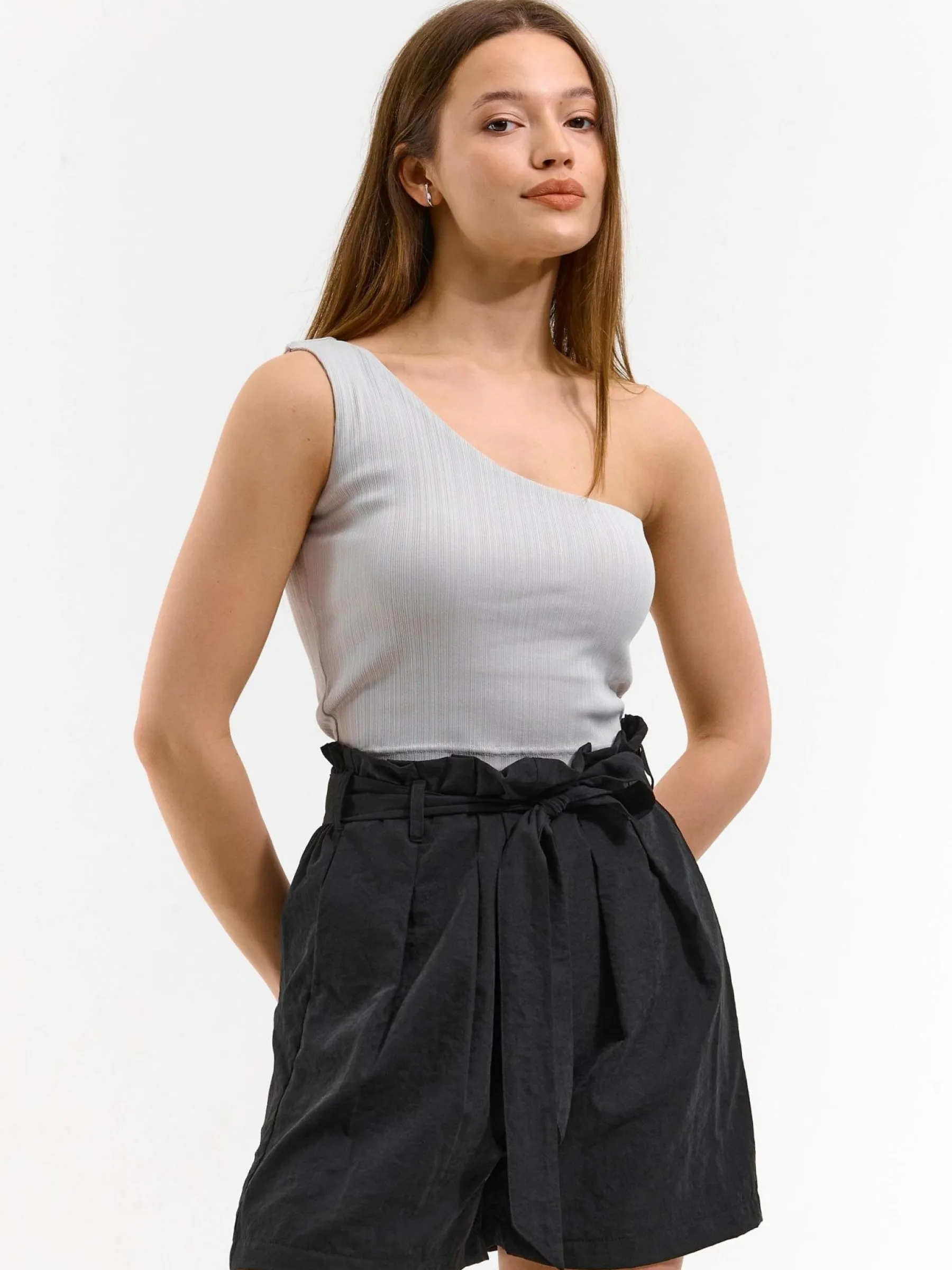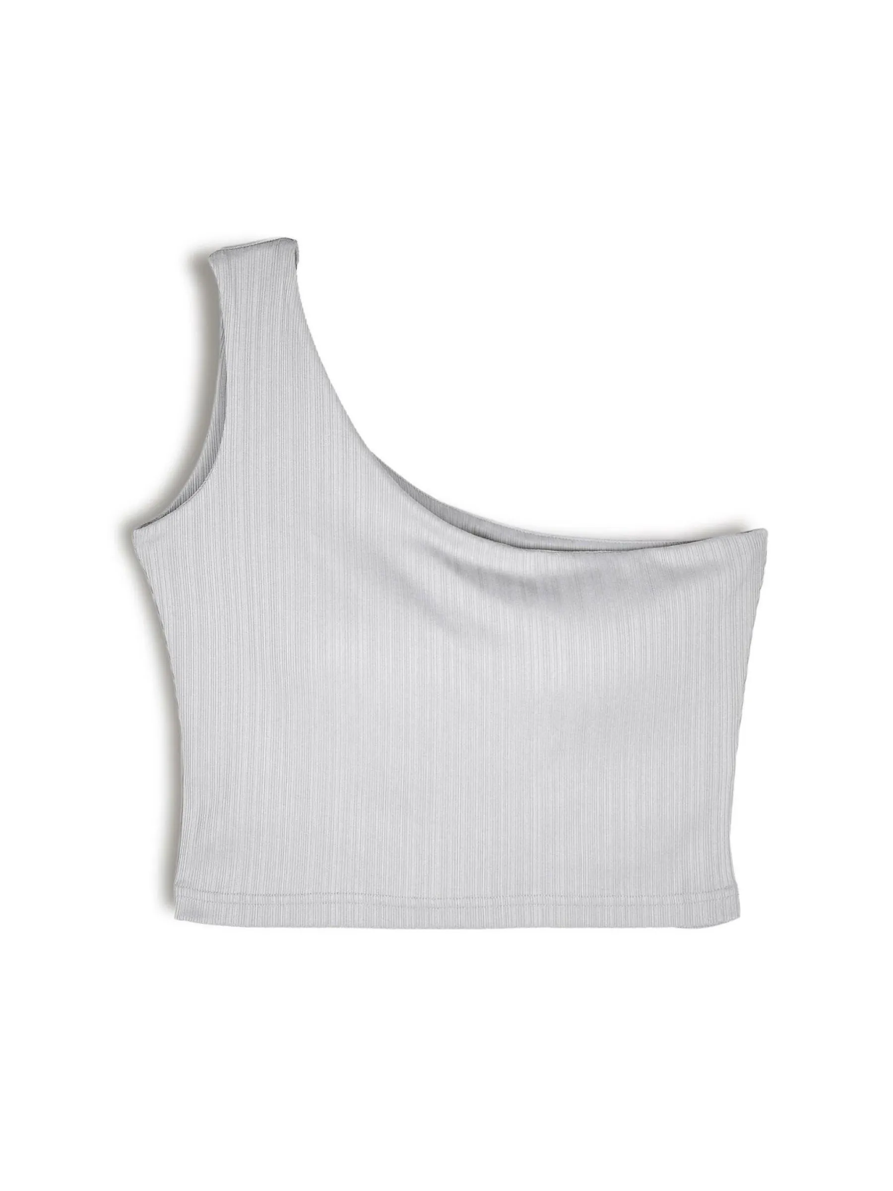 Kolor: szaryKrój: asymetryczneTyp: topRekaw: bez rękawówDługość: krótkiPattern style: pojedynczy kolorDetal: nad …