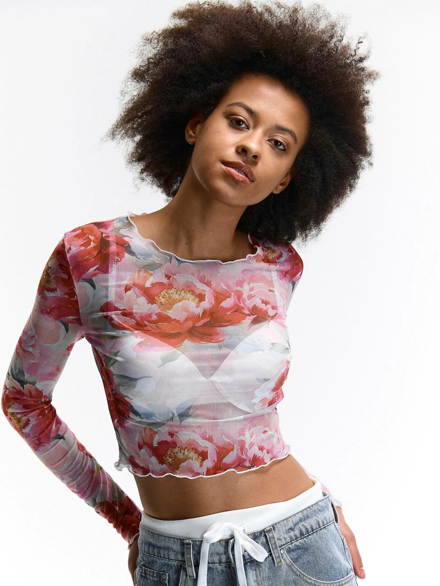 Kolor: różowyTyp: topRekaw: długi rękawDługość: krótki topPattern style: z nadrukiem, kwiatoweDetal: nad głową…