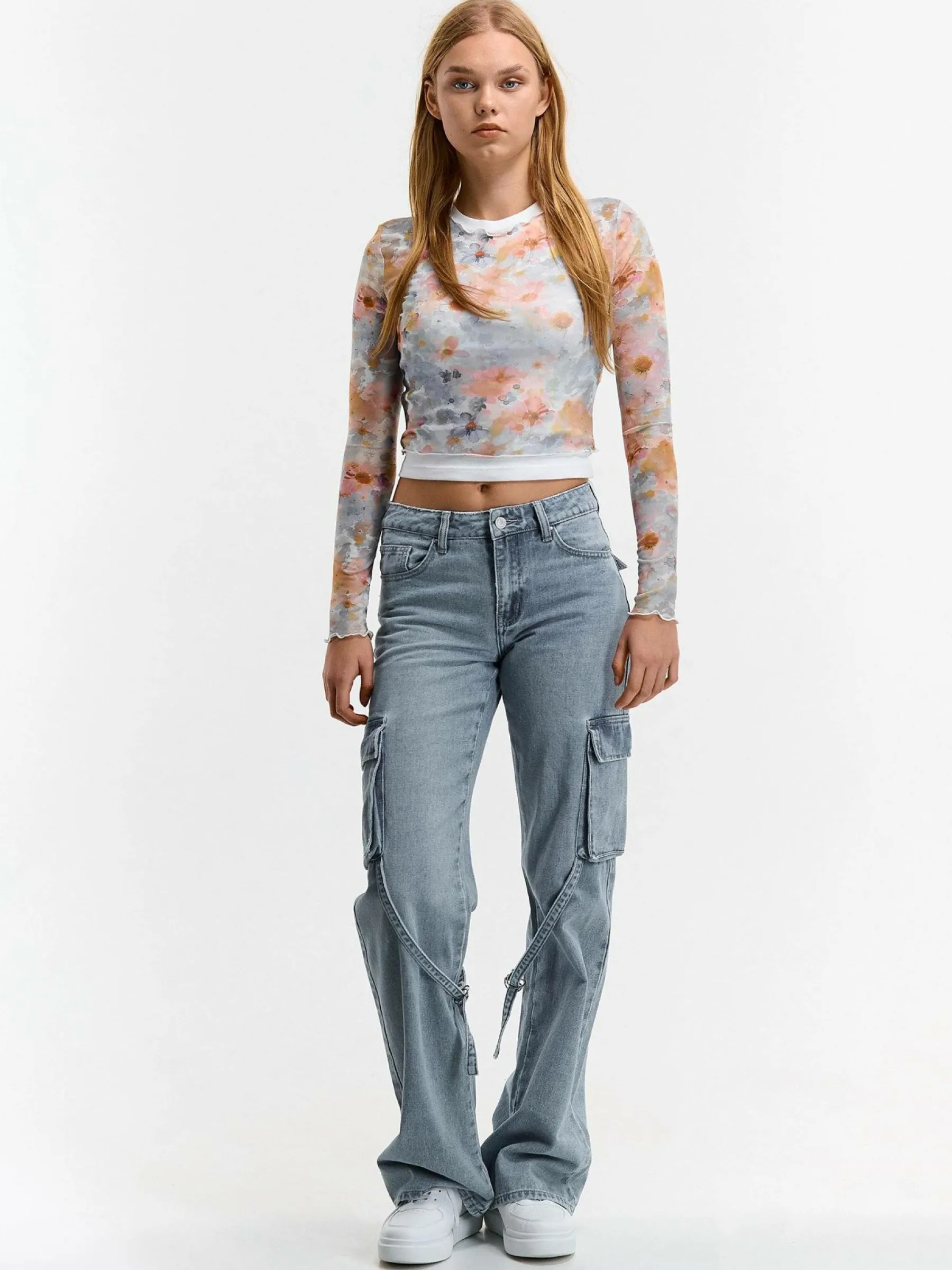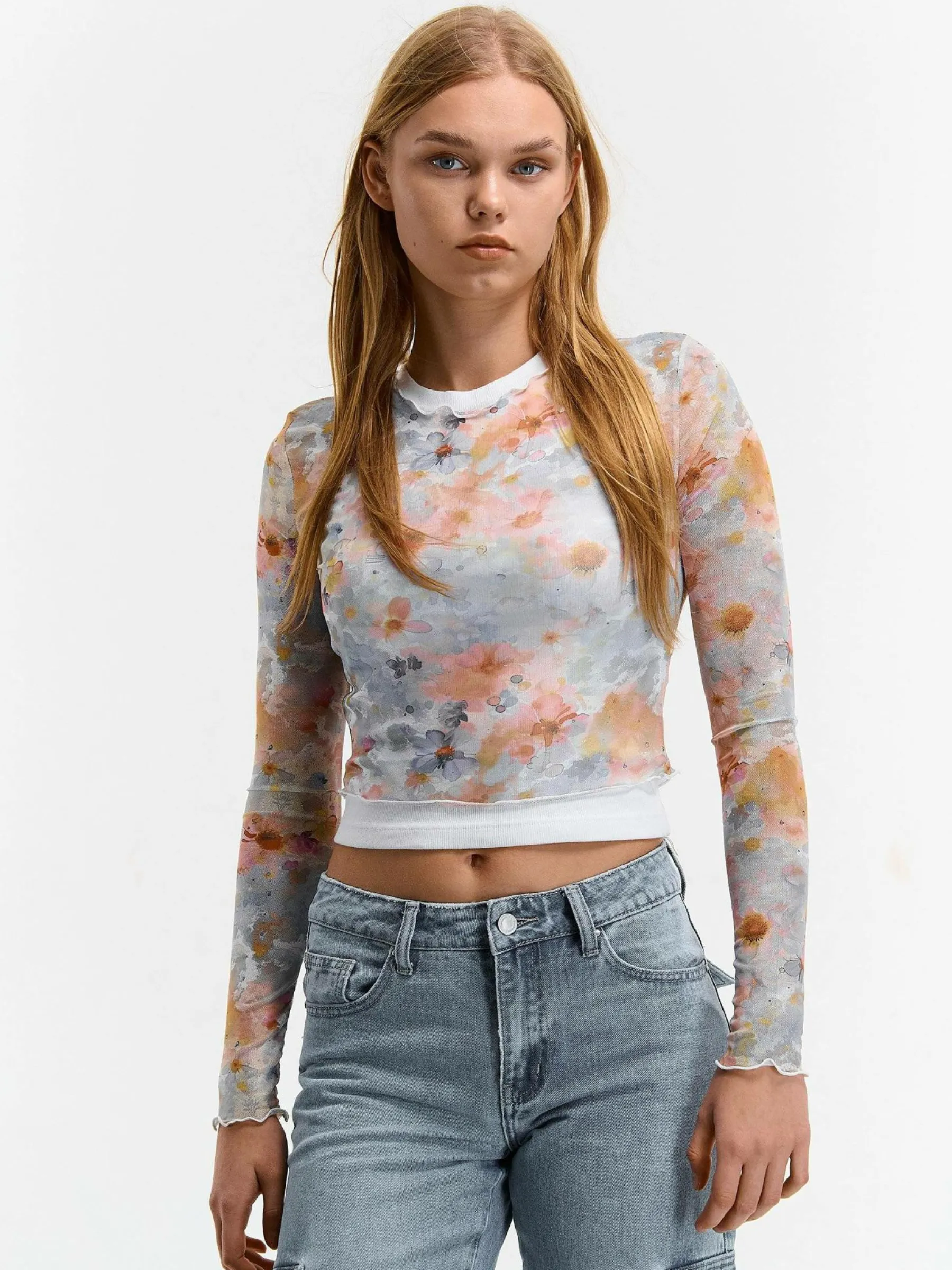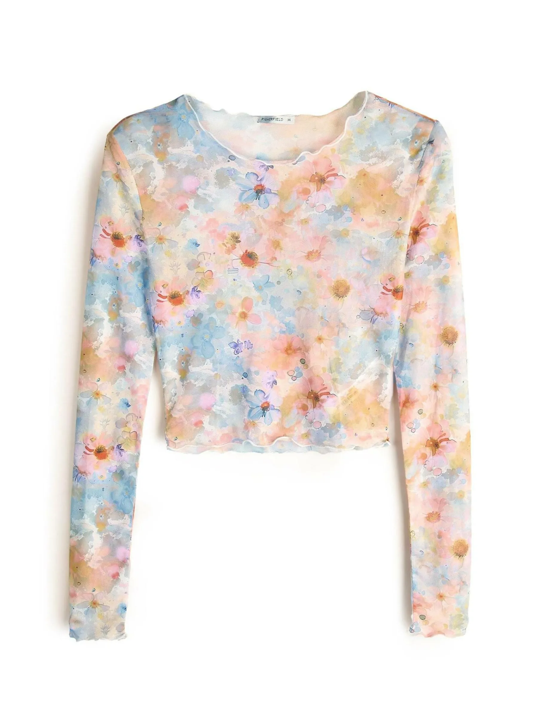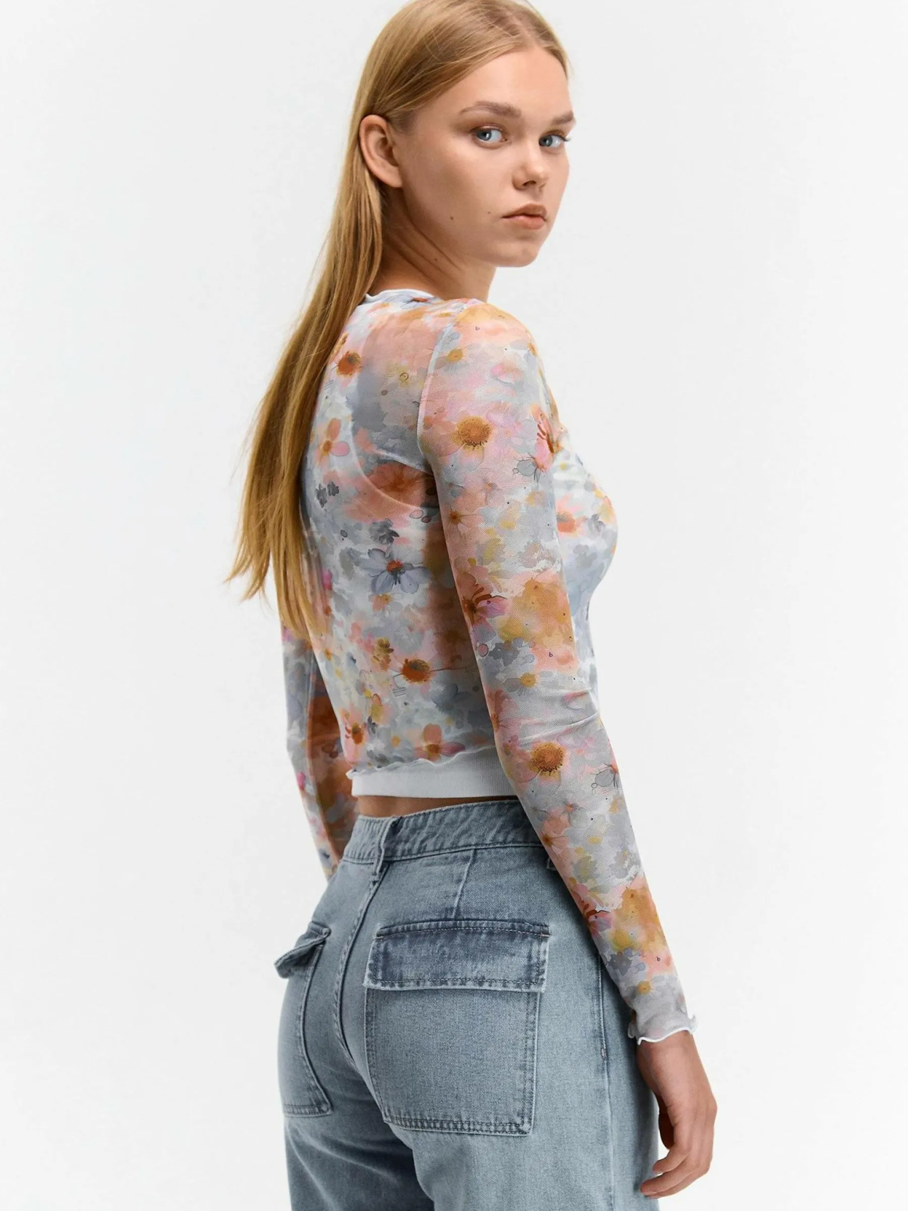 Kolor: niebieskiKrój: regularRekaw: długi rękawDługość: krótki topPattern style: z nadrukiem, kwiatoweDetal: nad …