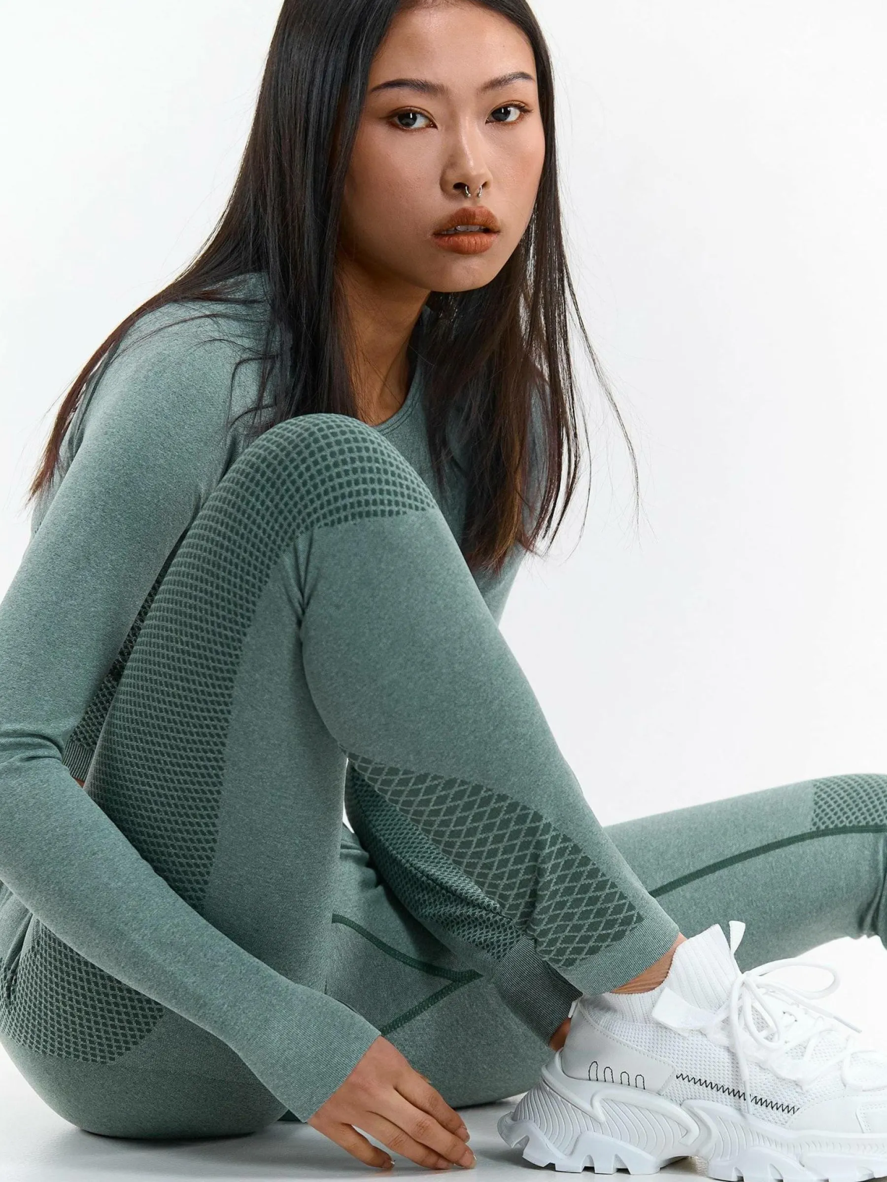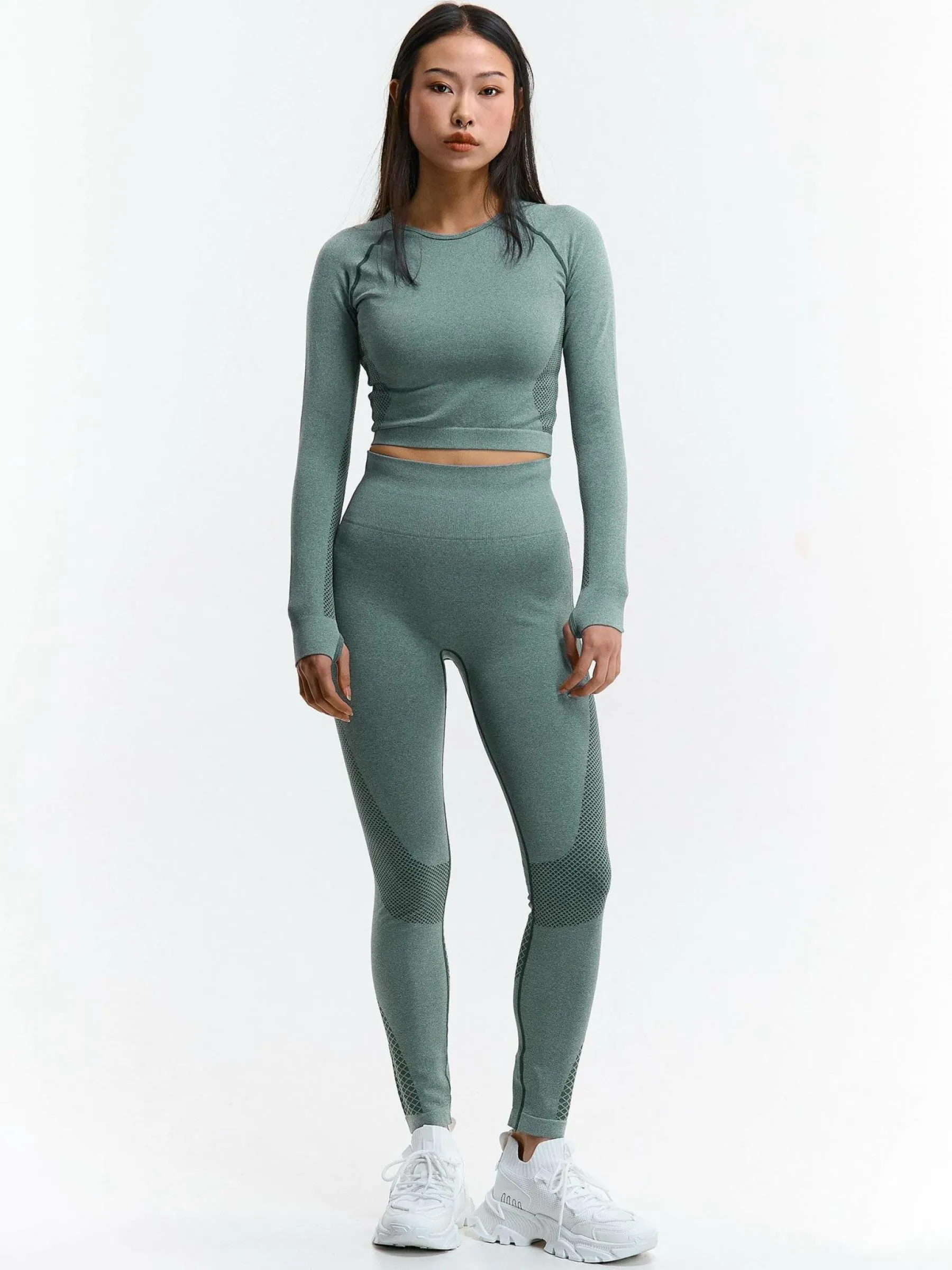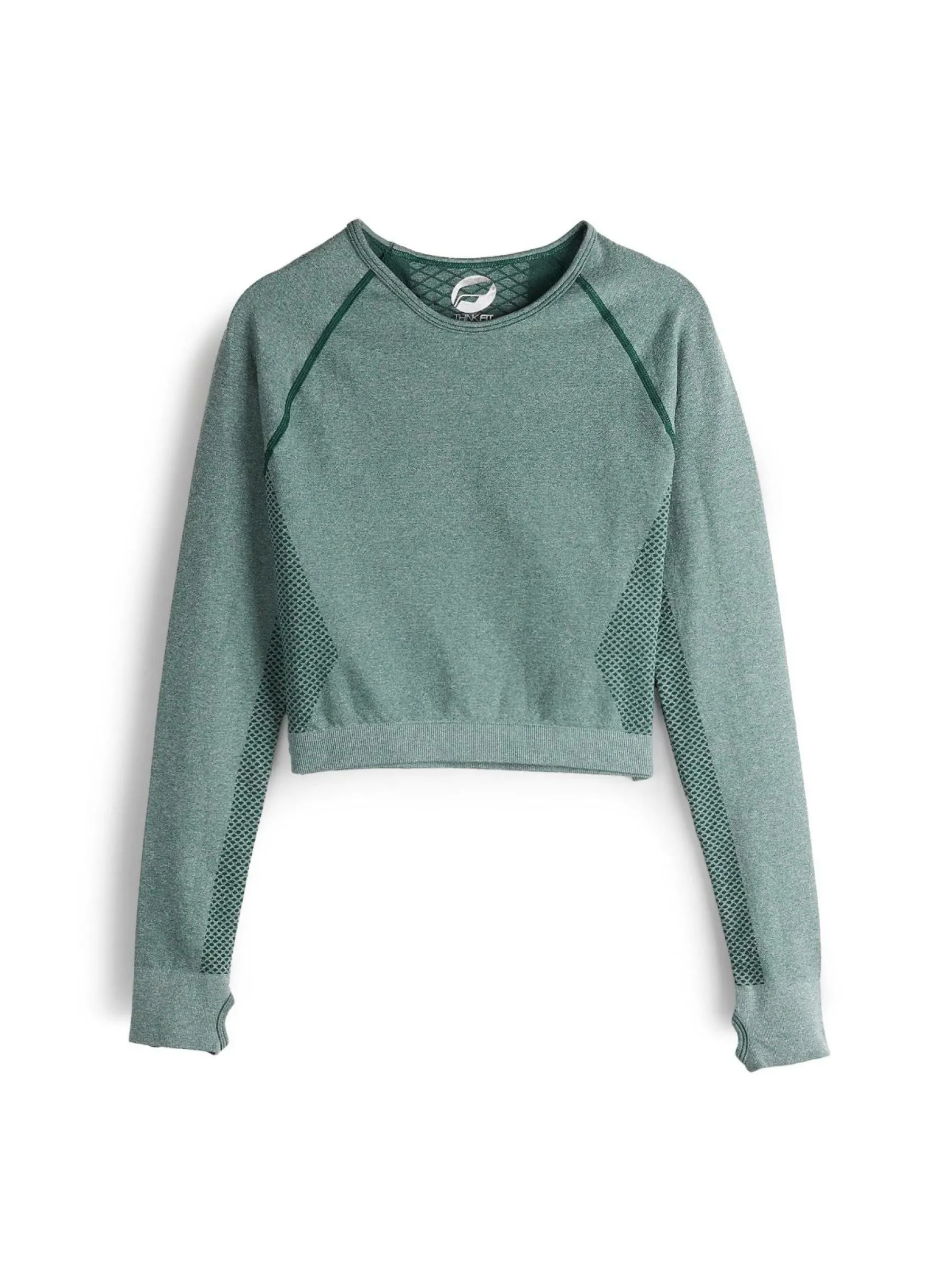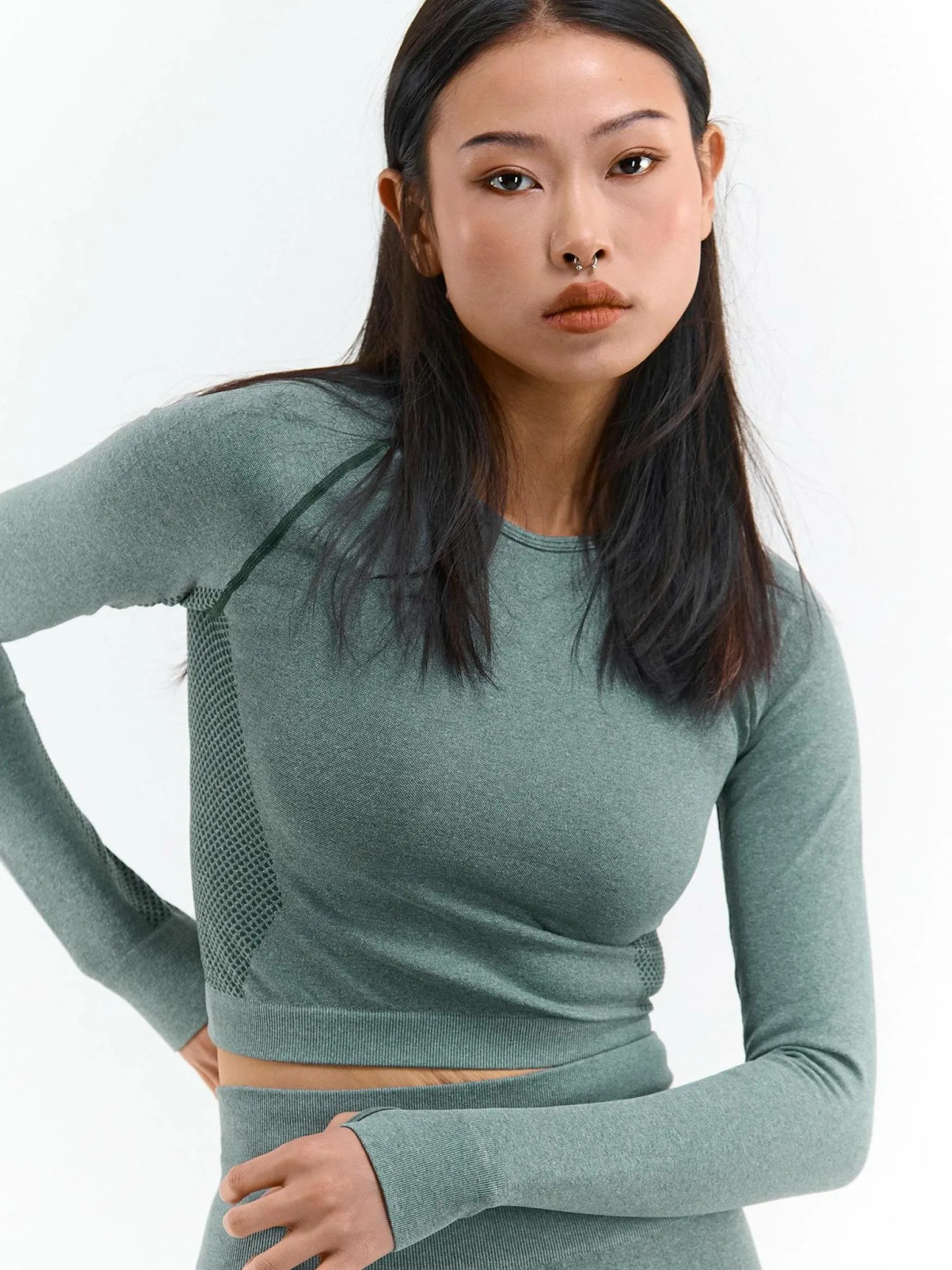 Kolor: zielonyKrój: regularTyp: topRekaw: długi rękaw, rękaw raglanowyDługość: krótki topPattern style: pojedync…