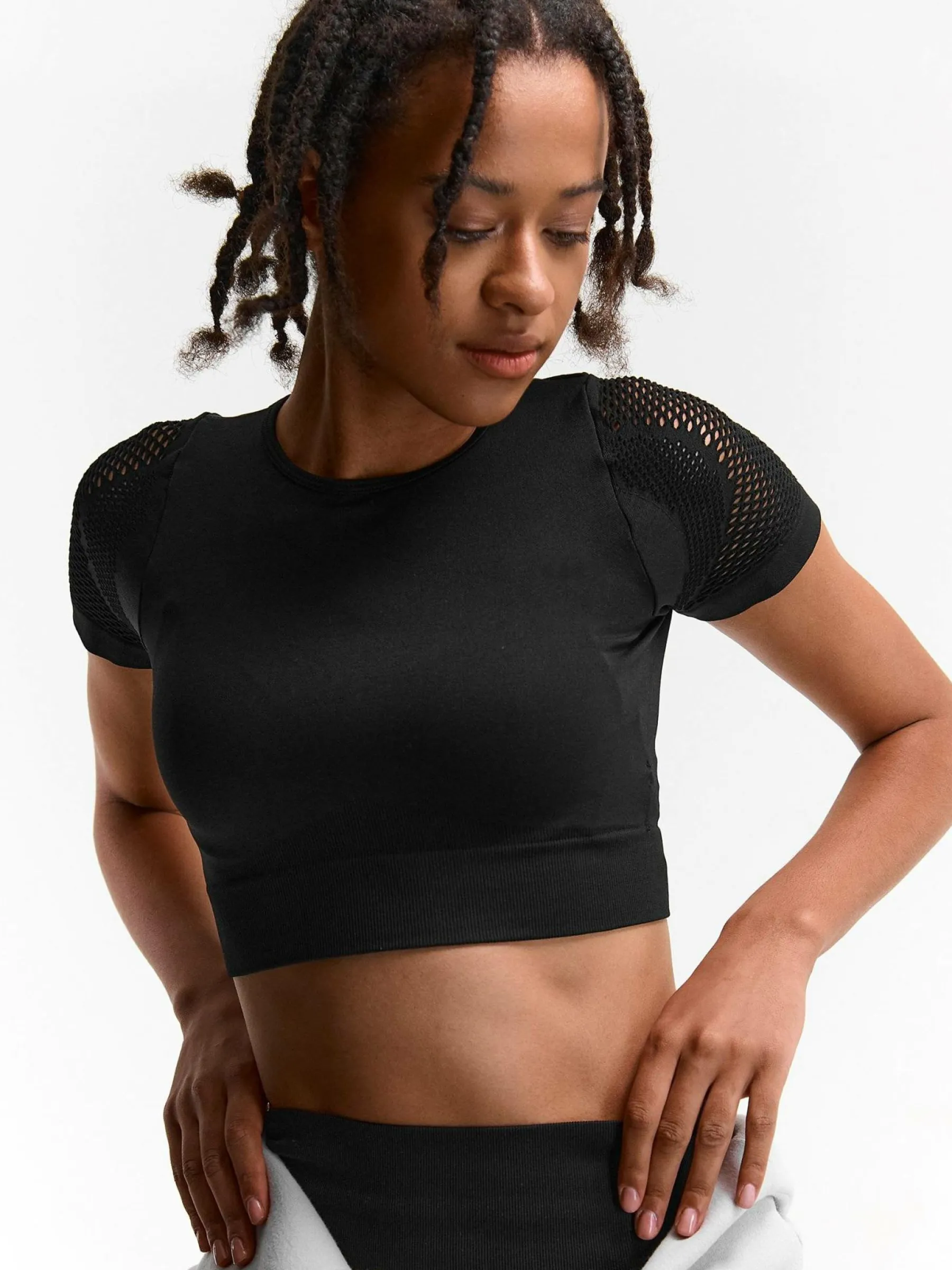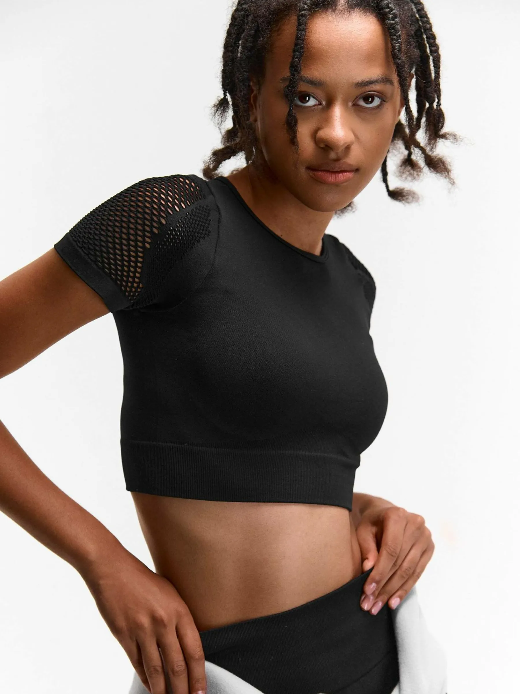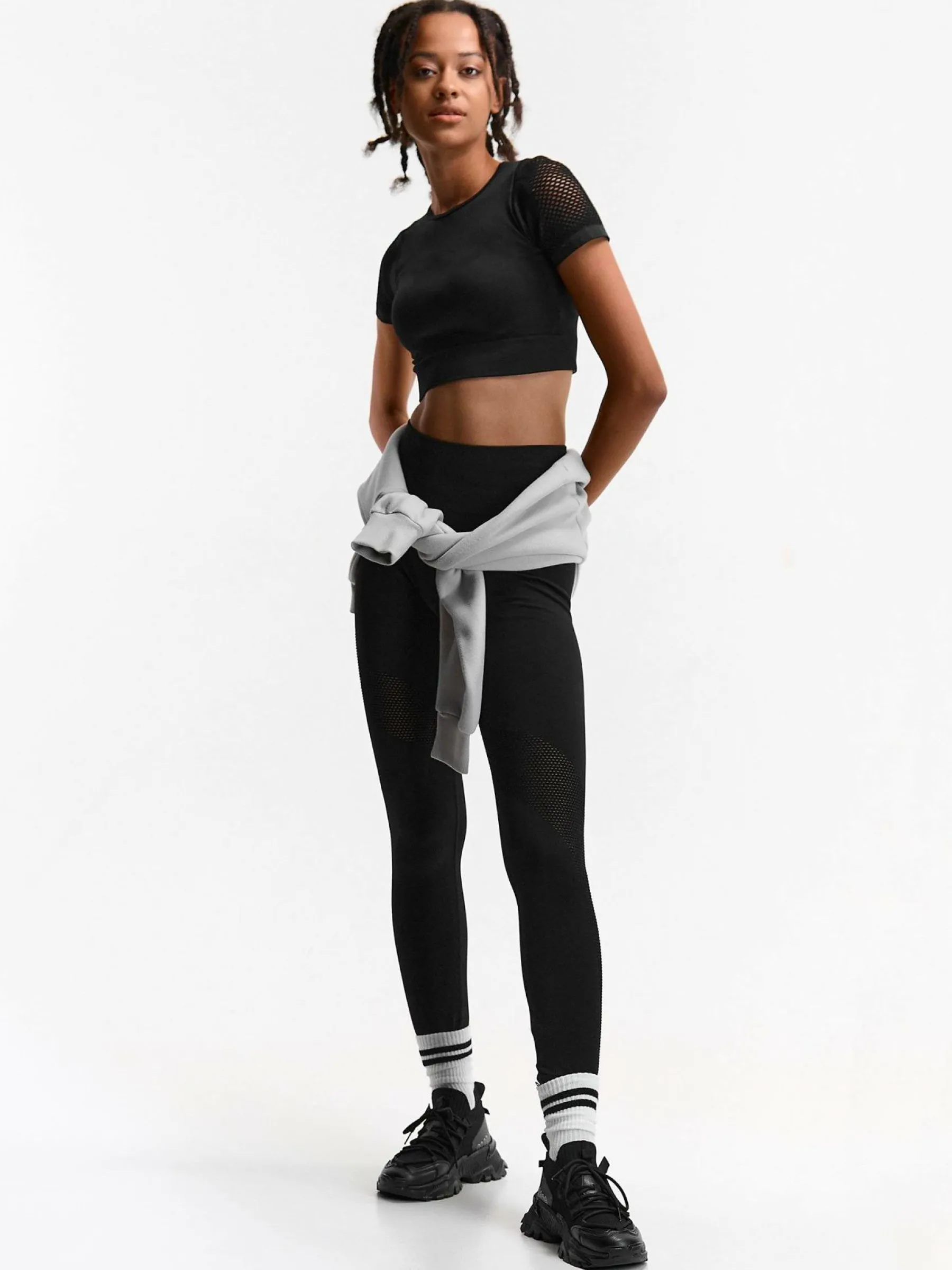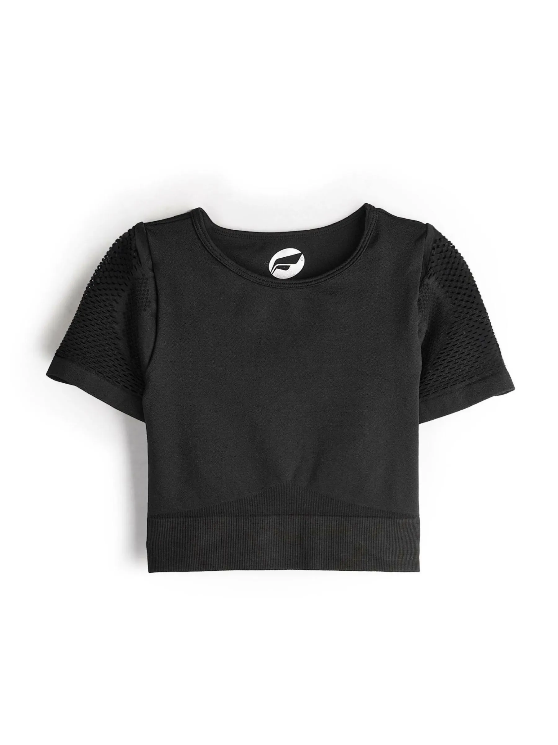 Kolor: czarnyKrój: regularTyp: topRekaw: krótki rękawDługość: krótki topPattern style: pojedynczy kolorDetal: nad…