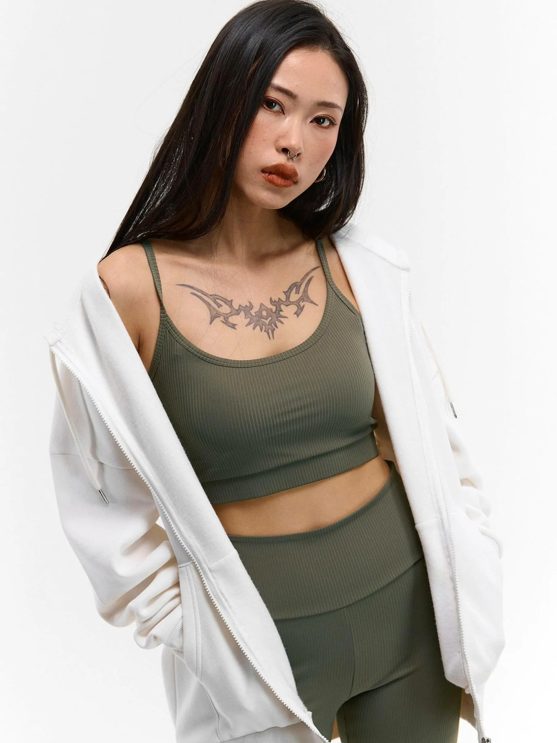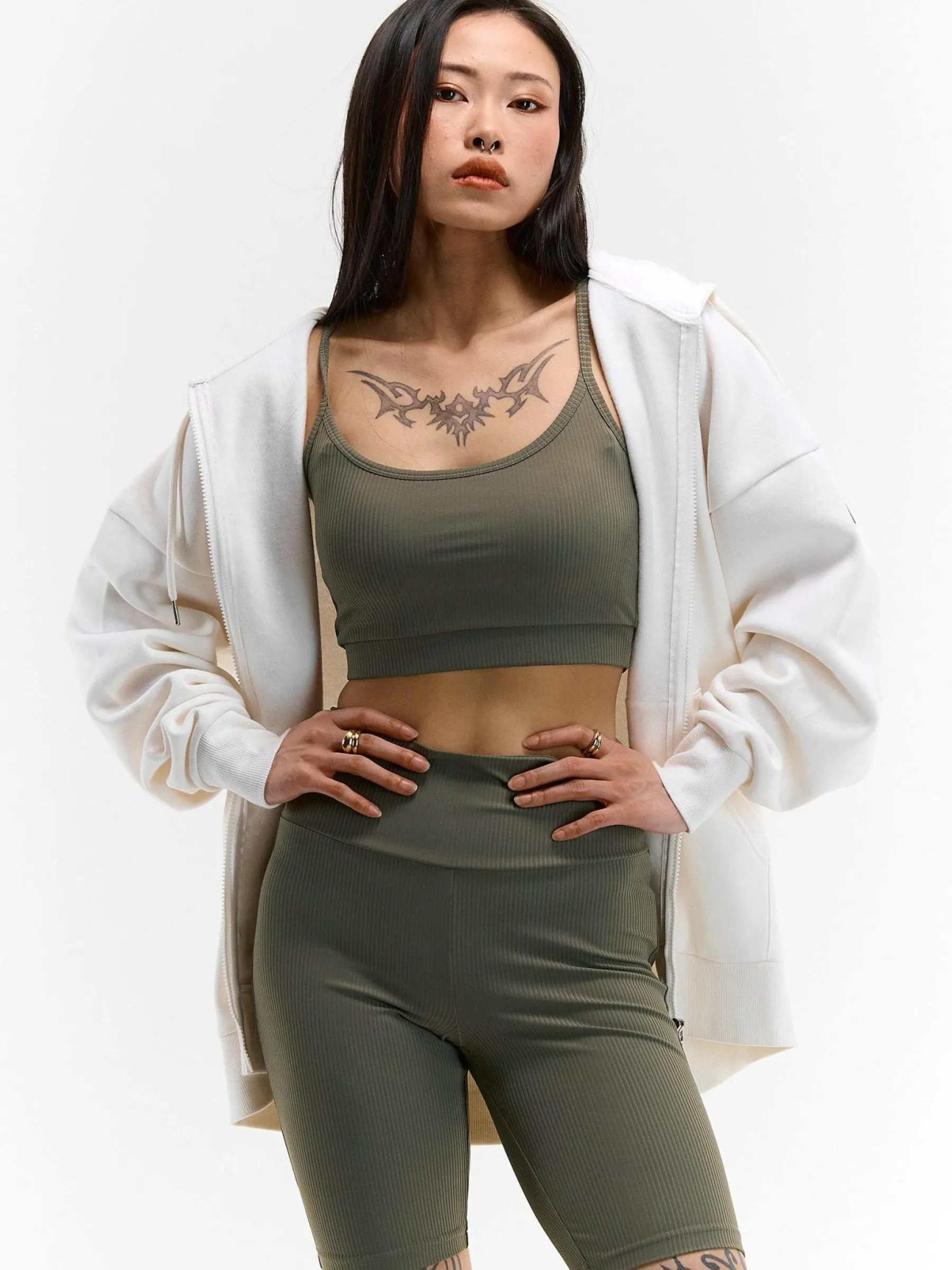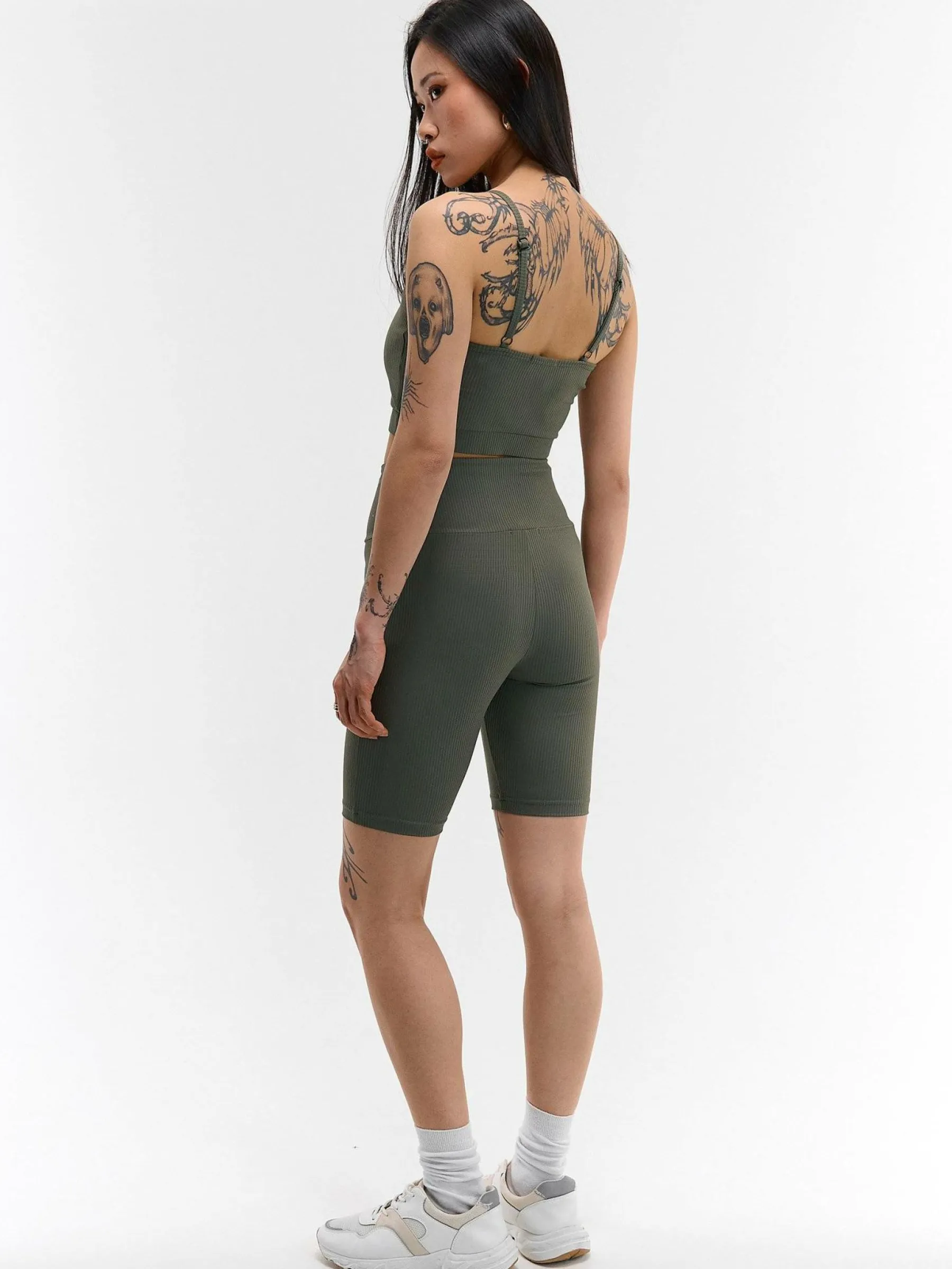Kolor: khakiKrój: regularTyp: topRekaw: bez rękawówDługość: krótki topPattern style: pojedynczy kolor, żebrowany…