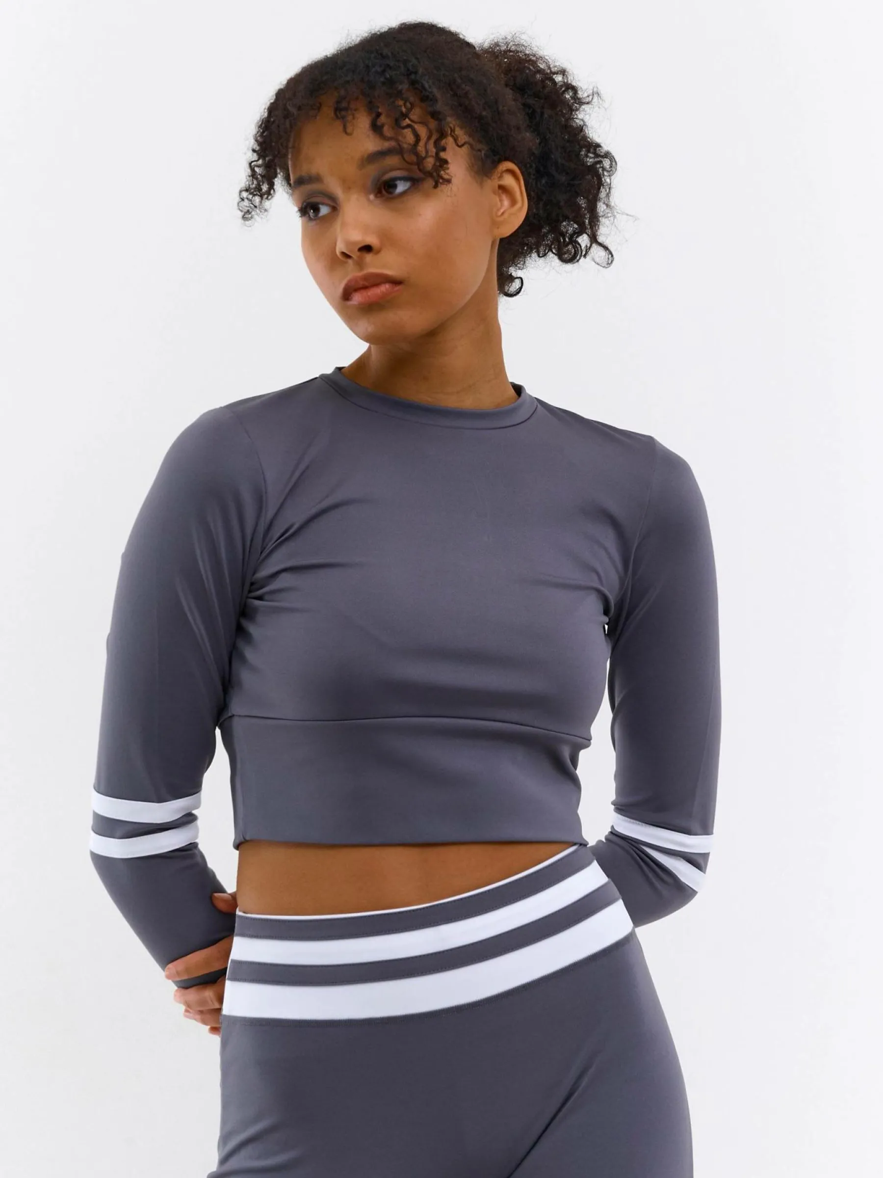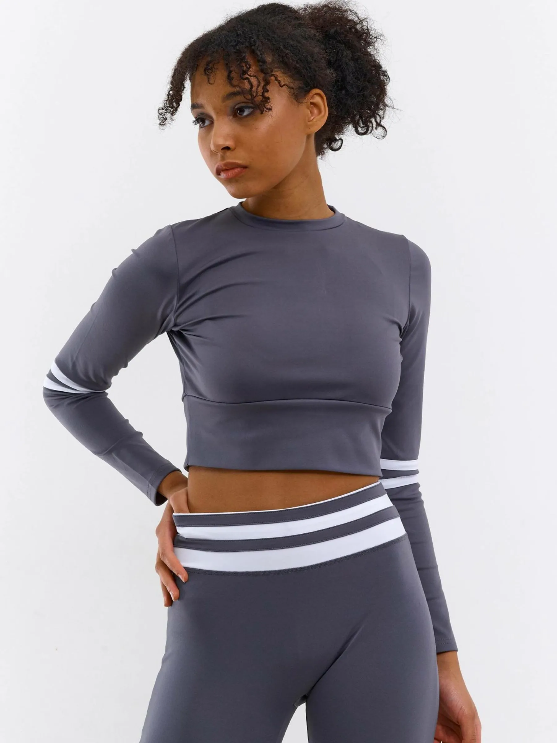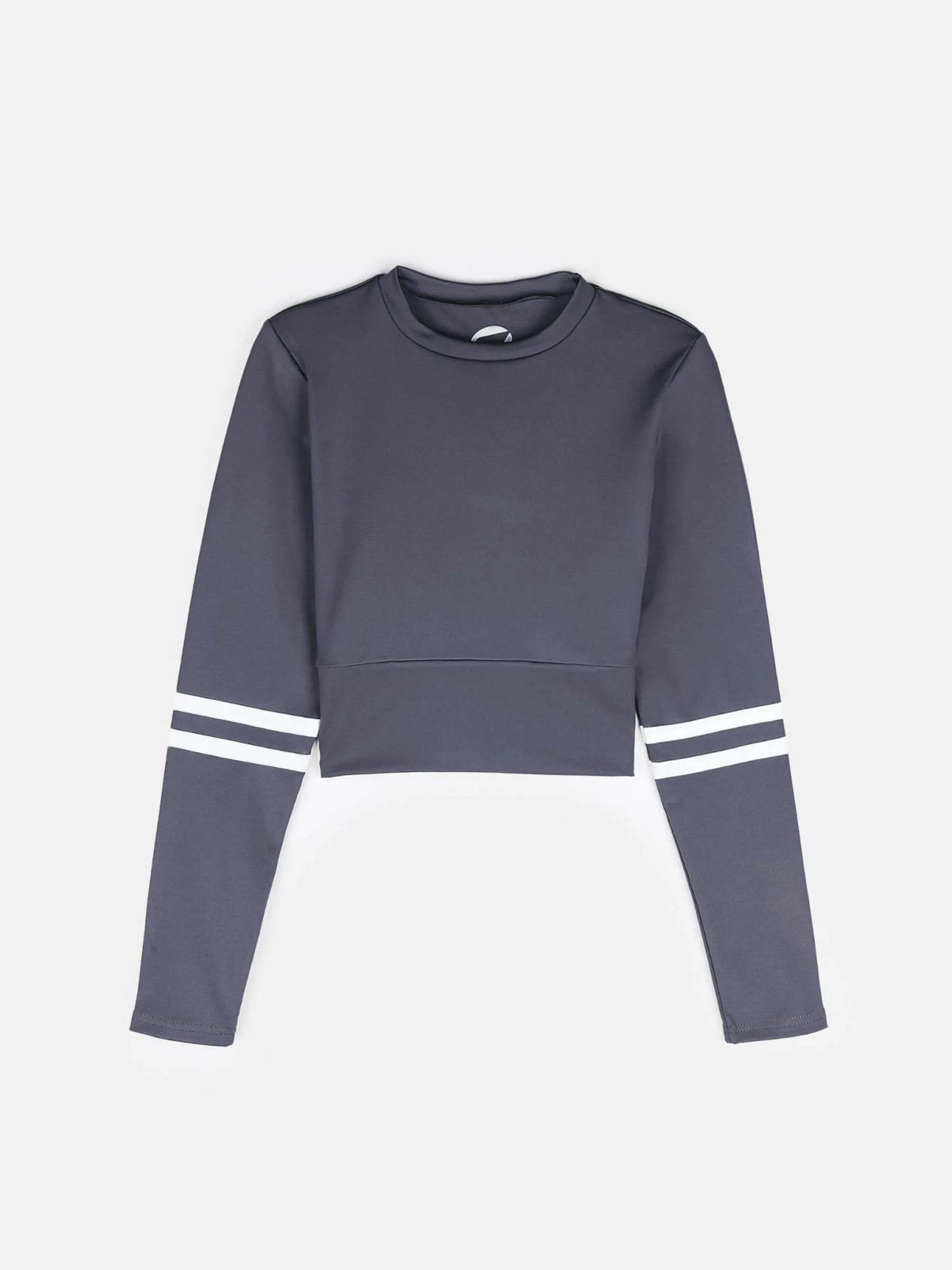 Kolor: szaryKrój: regularTyp: topRekaw: długi rękawDługość: krótkiPattern style: pojedynczy kolorDetal: nad głow…