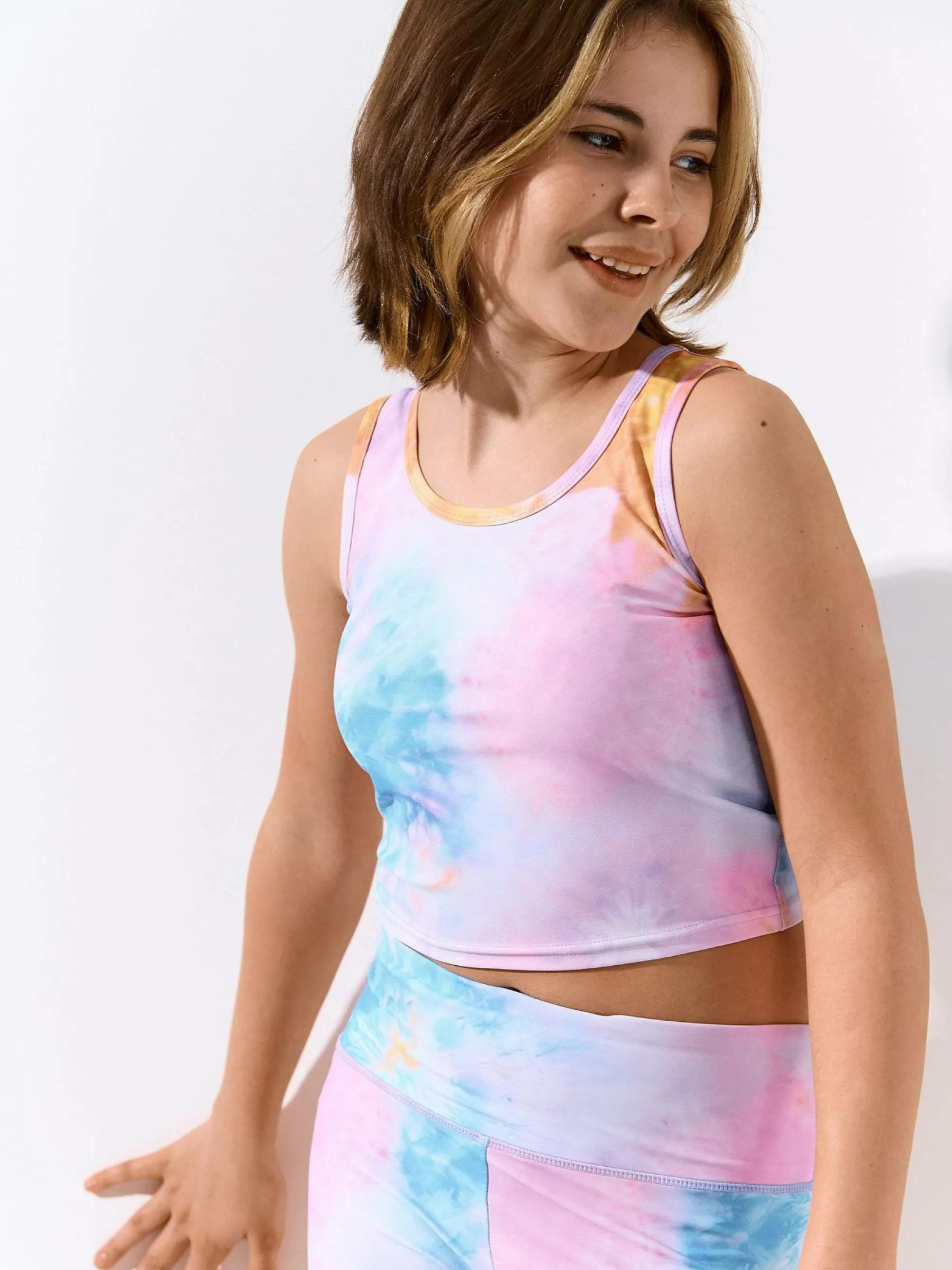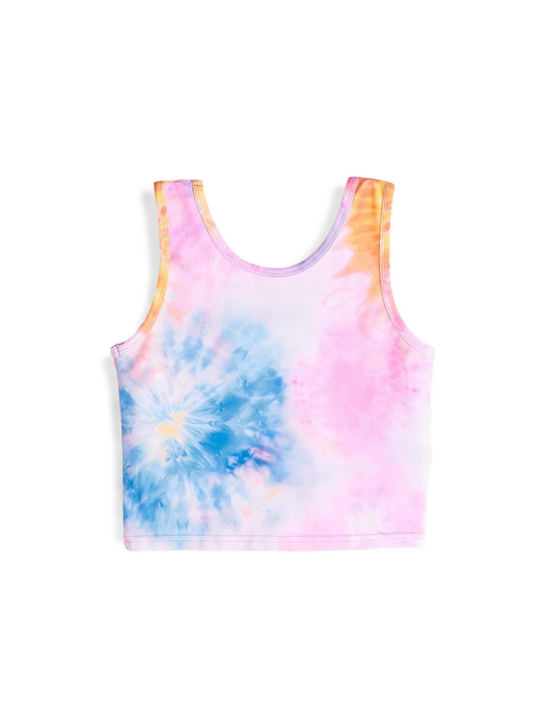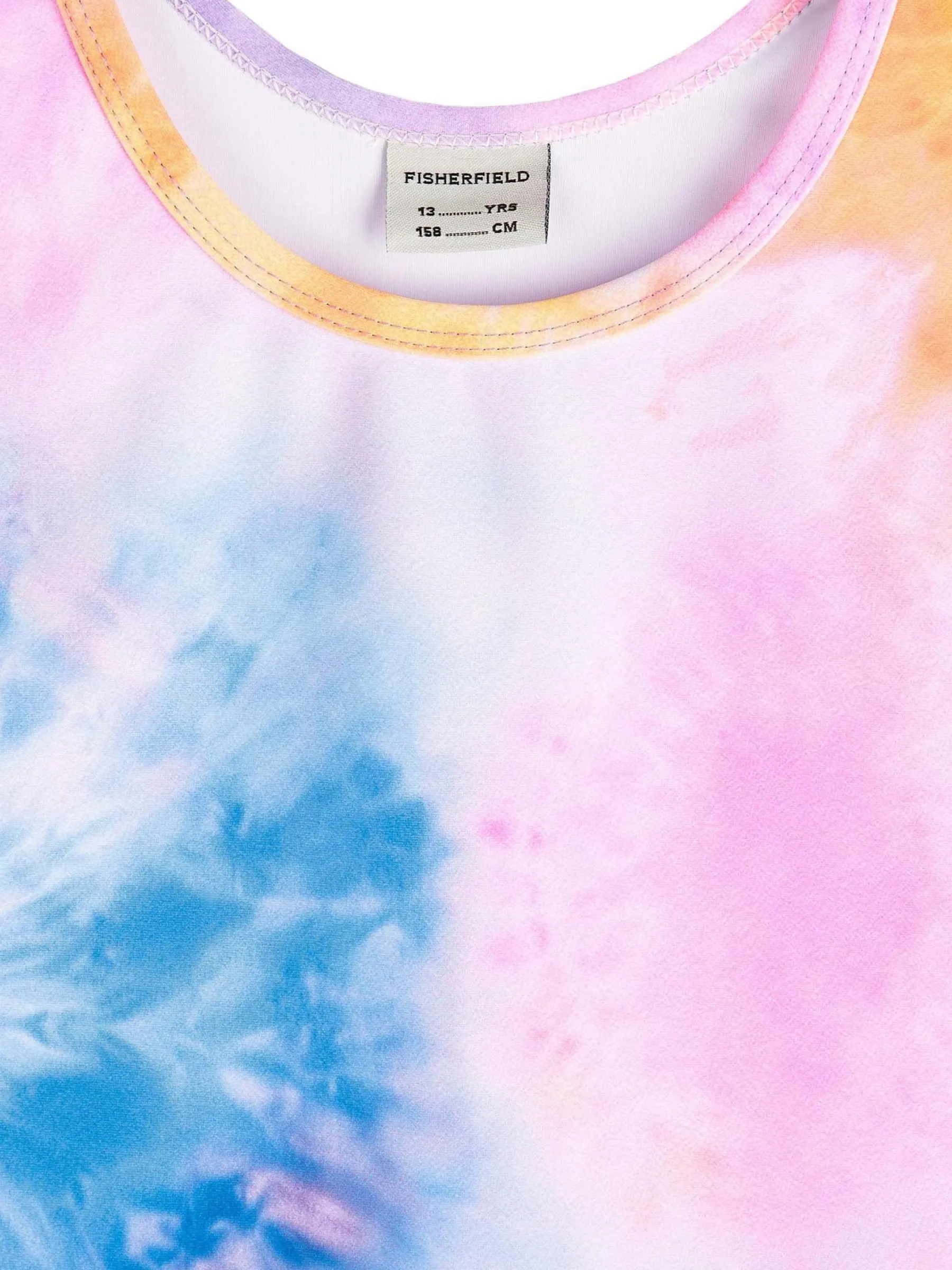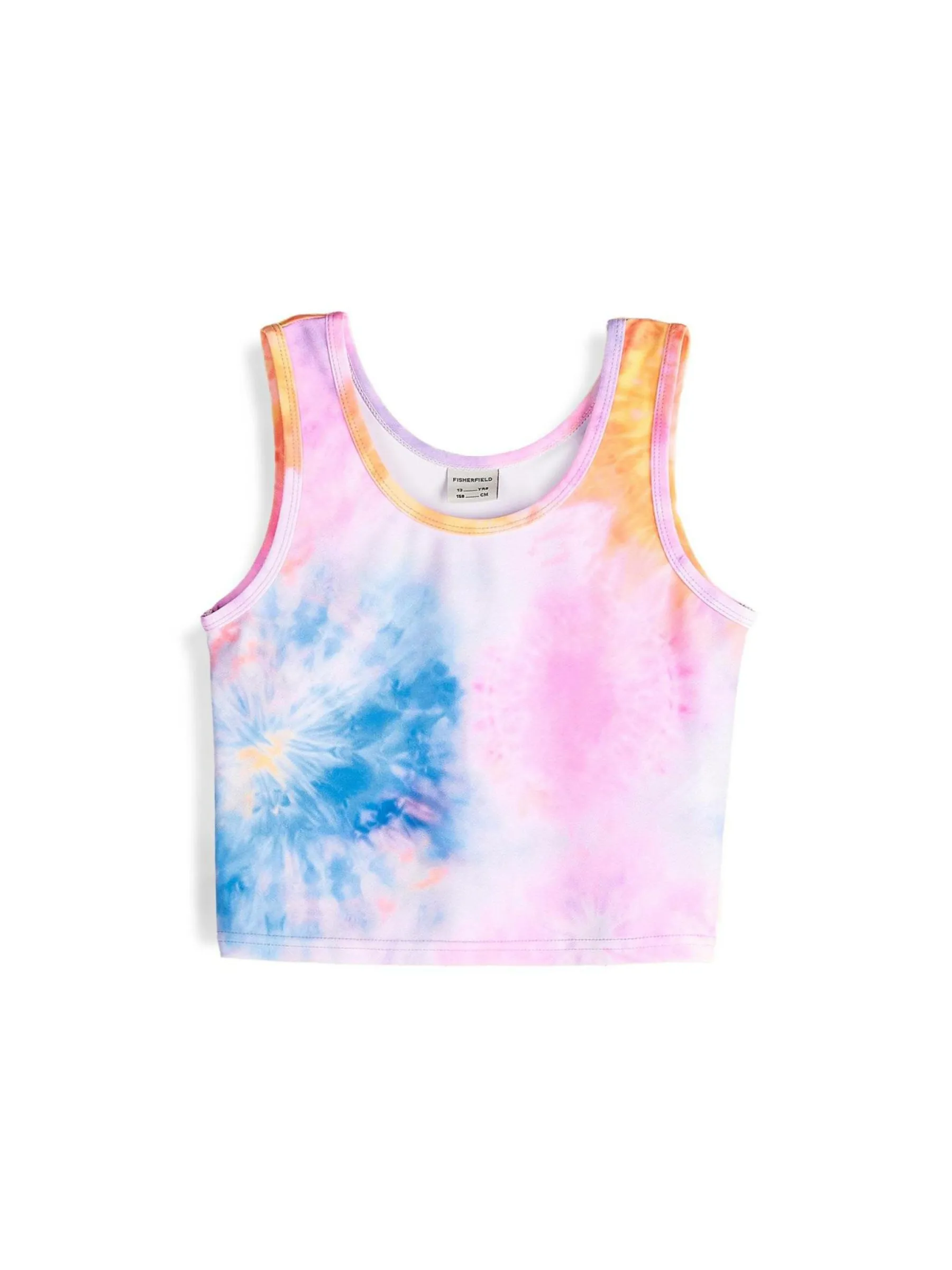 Kolor: różowyKrój: regularTyp: podkoszulekRekaw: bez rękawówDługość: krótkiPattern style: tie dyeDetal: nad gł…