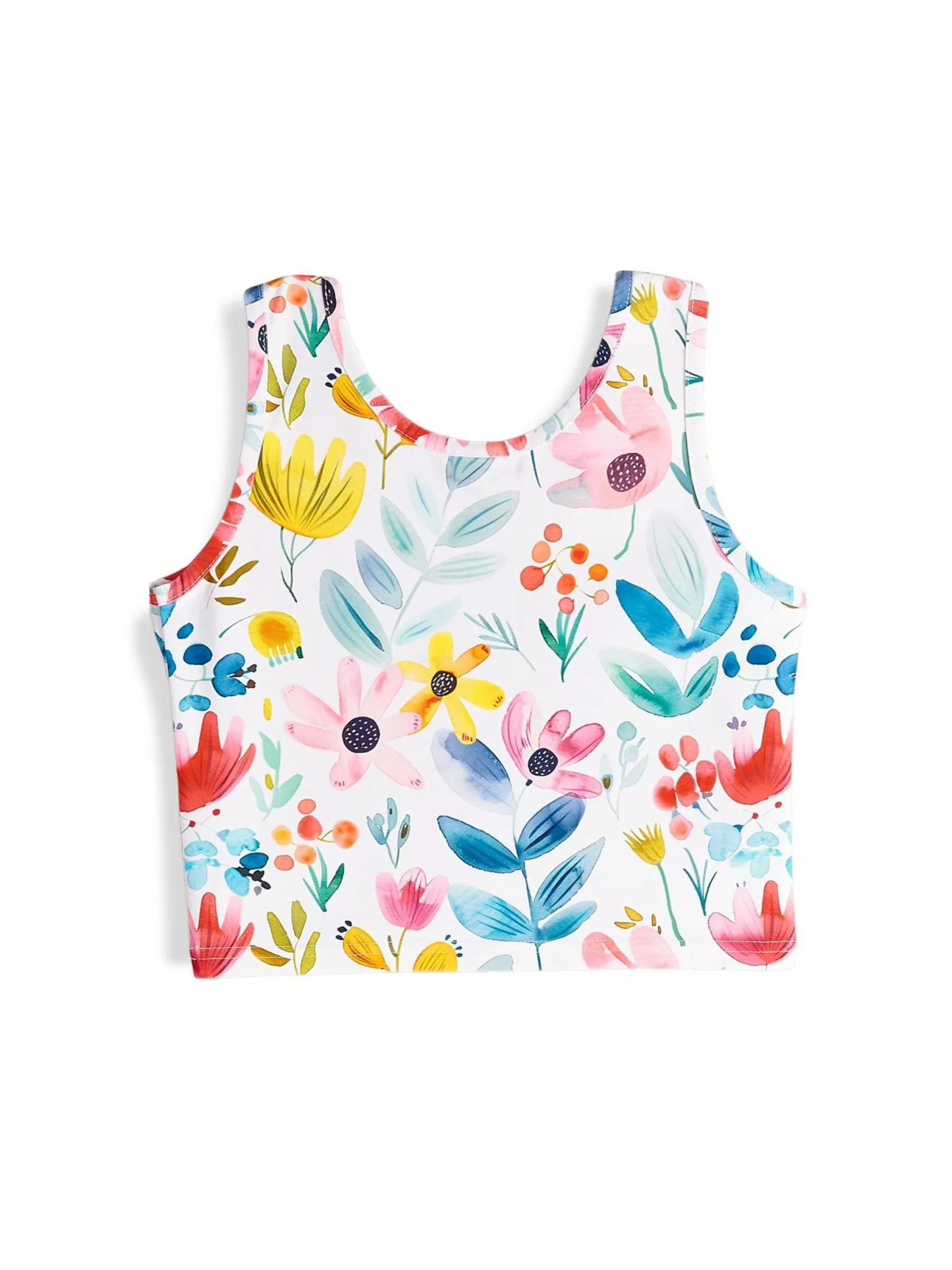 Kolor: białyKrój: regularTyp: podkoszulekRekaw: bez rękawówDługość: krótki topPattern style: kwiatoweDetal: nad …