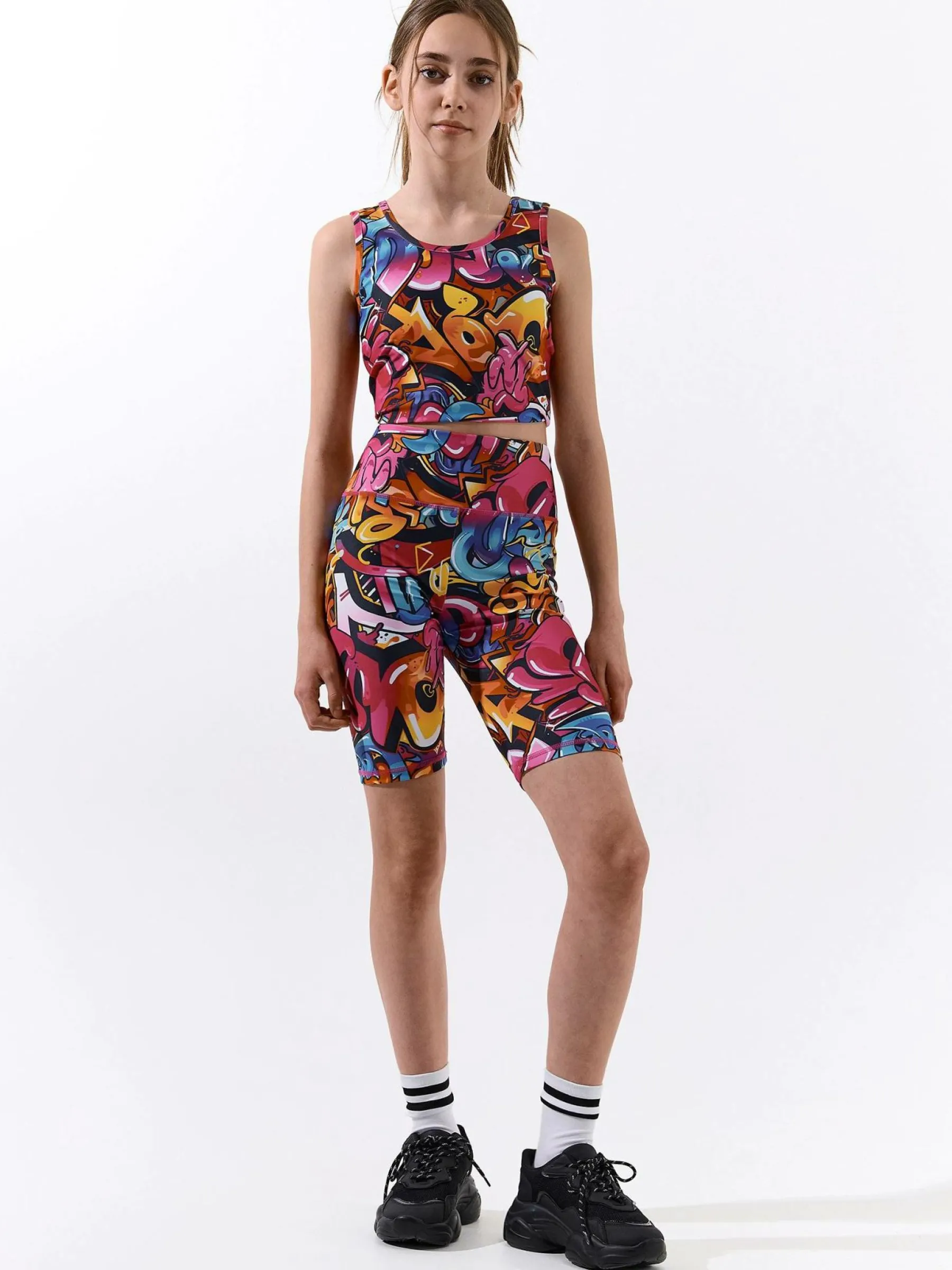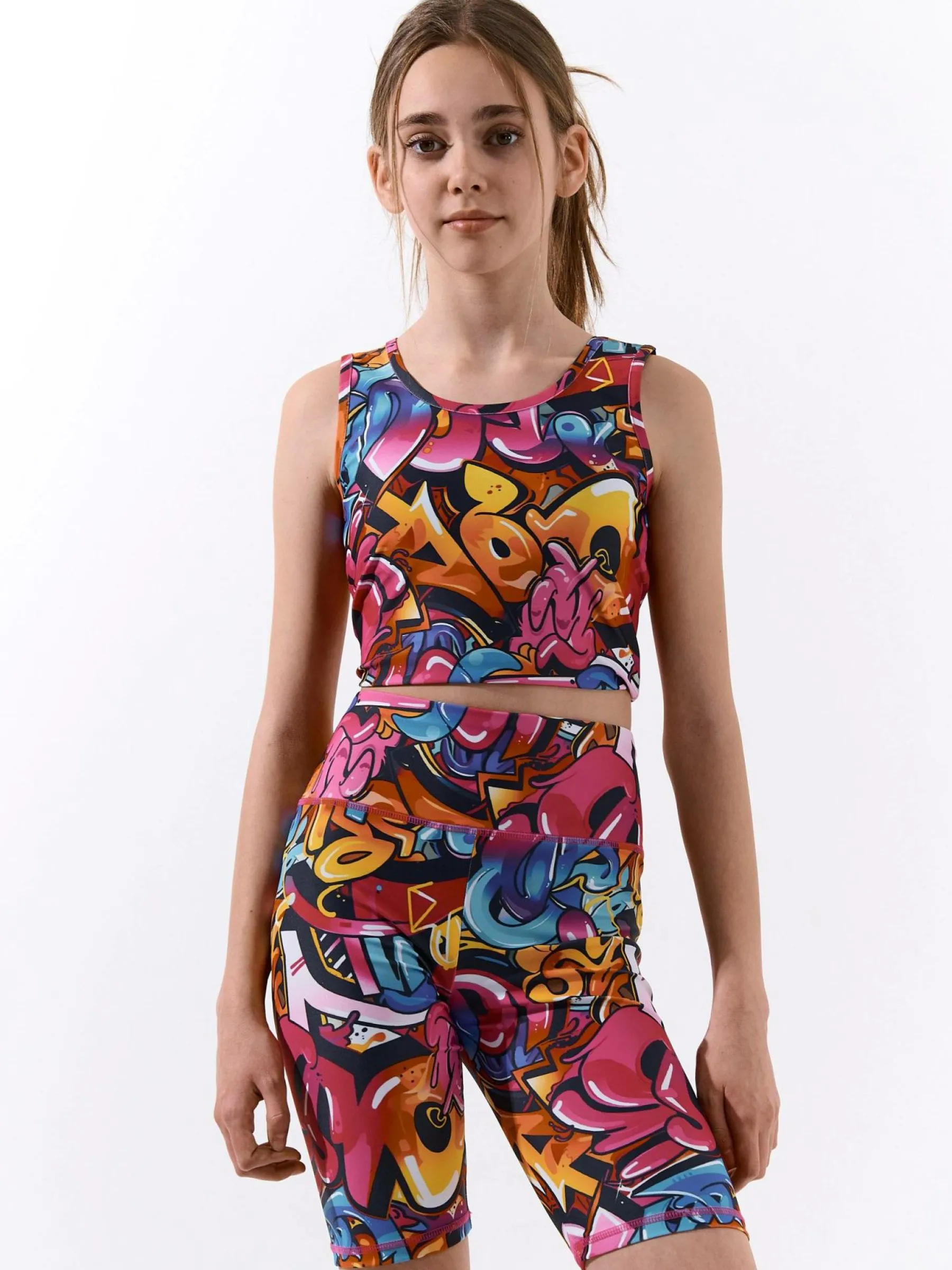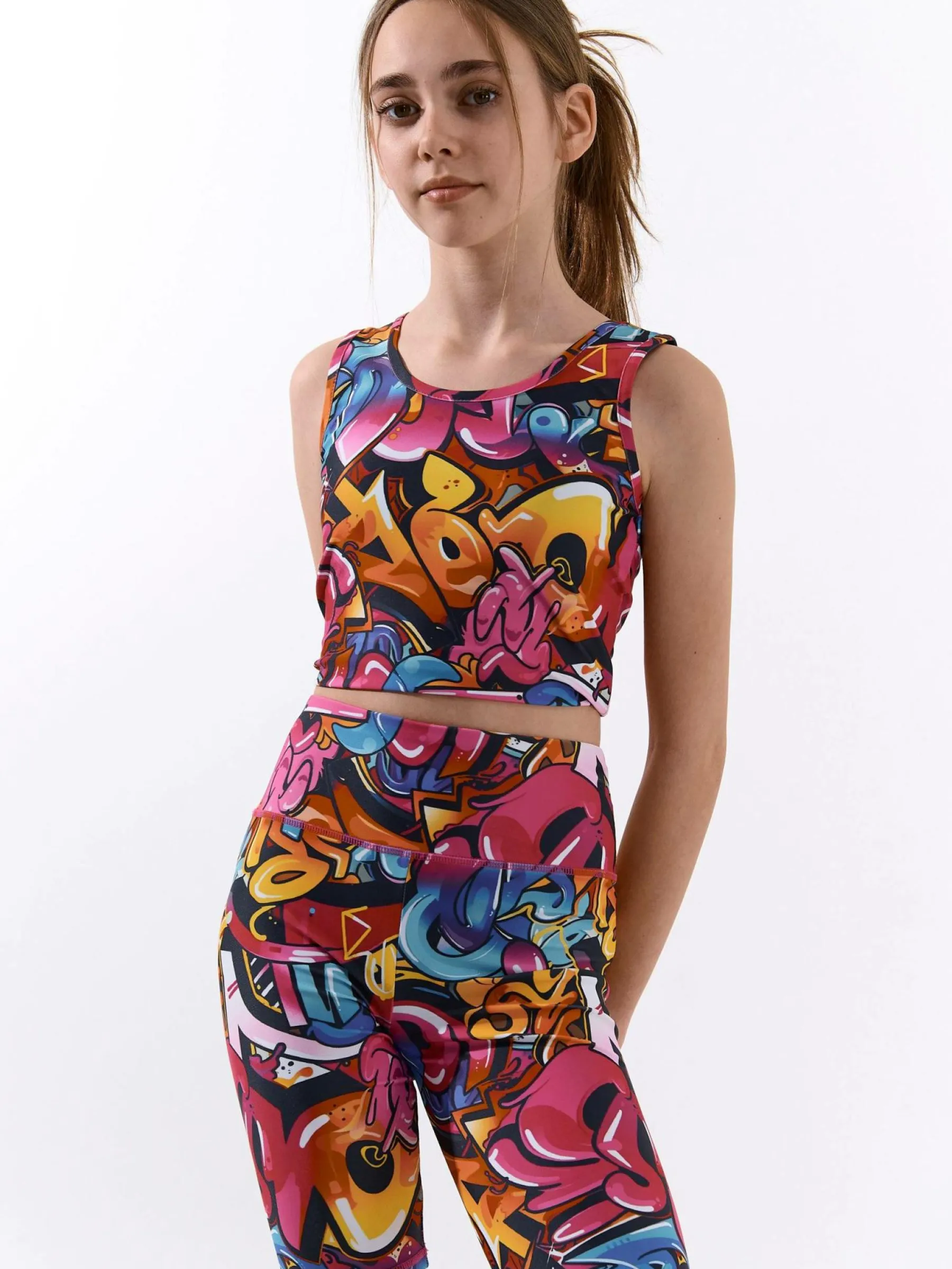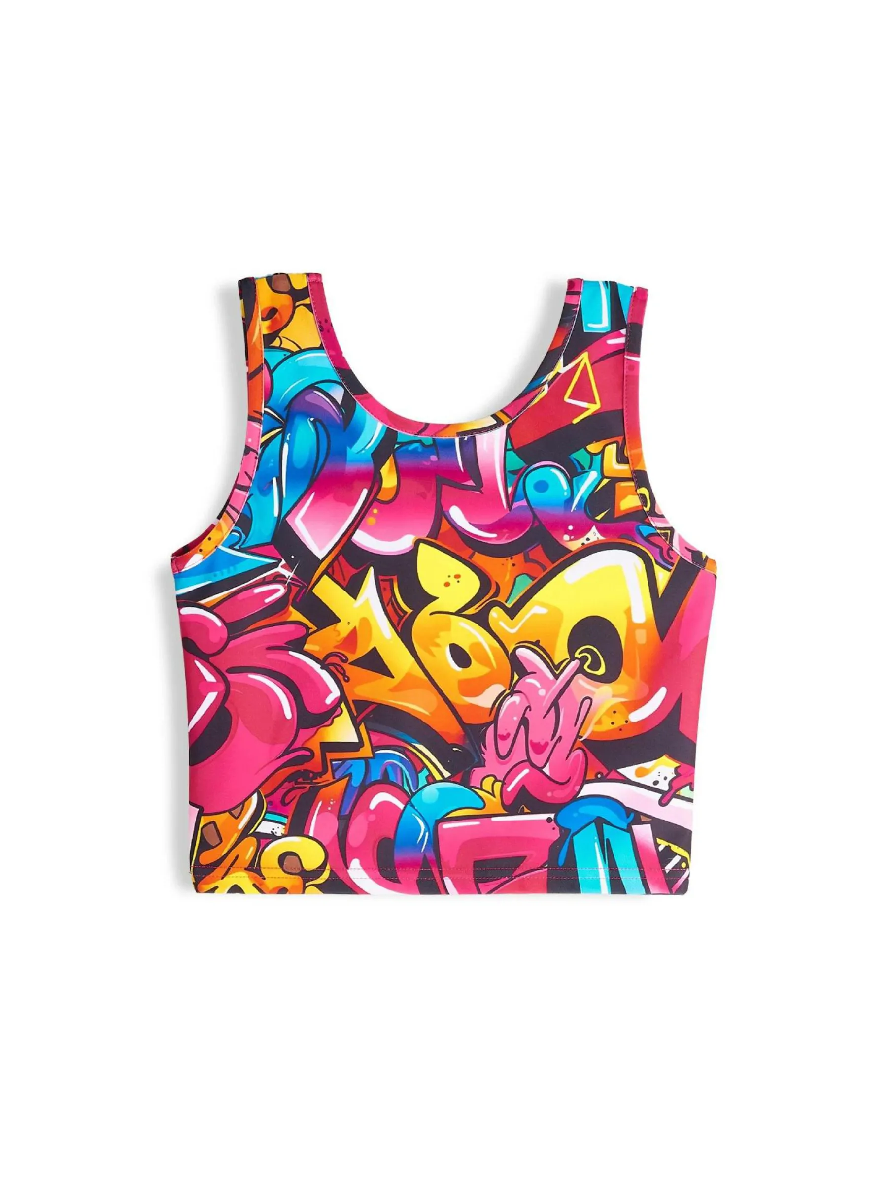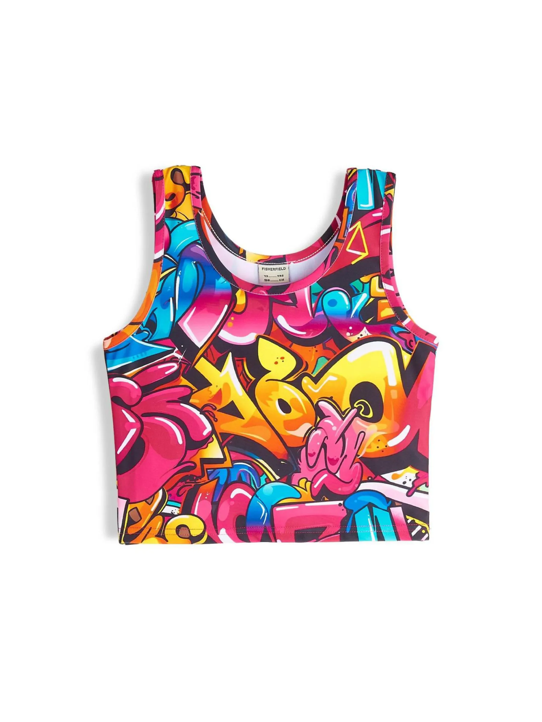 Kolor: czarnyKrój: regularTyp: topRekaw: bez rękawówDługość: krótki topPattern style: z nadrukiemDetal: nad głow…
