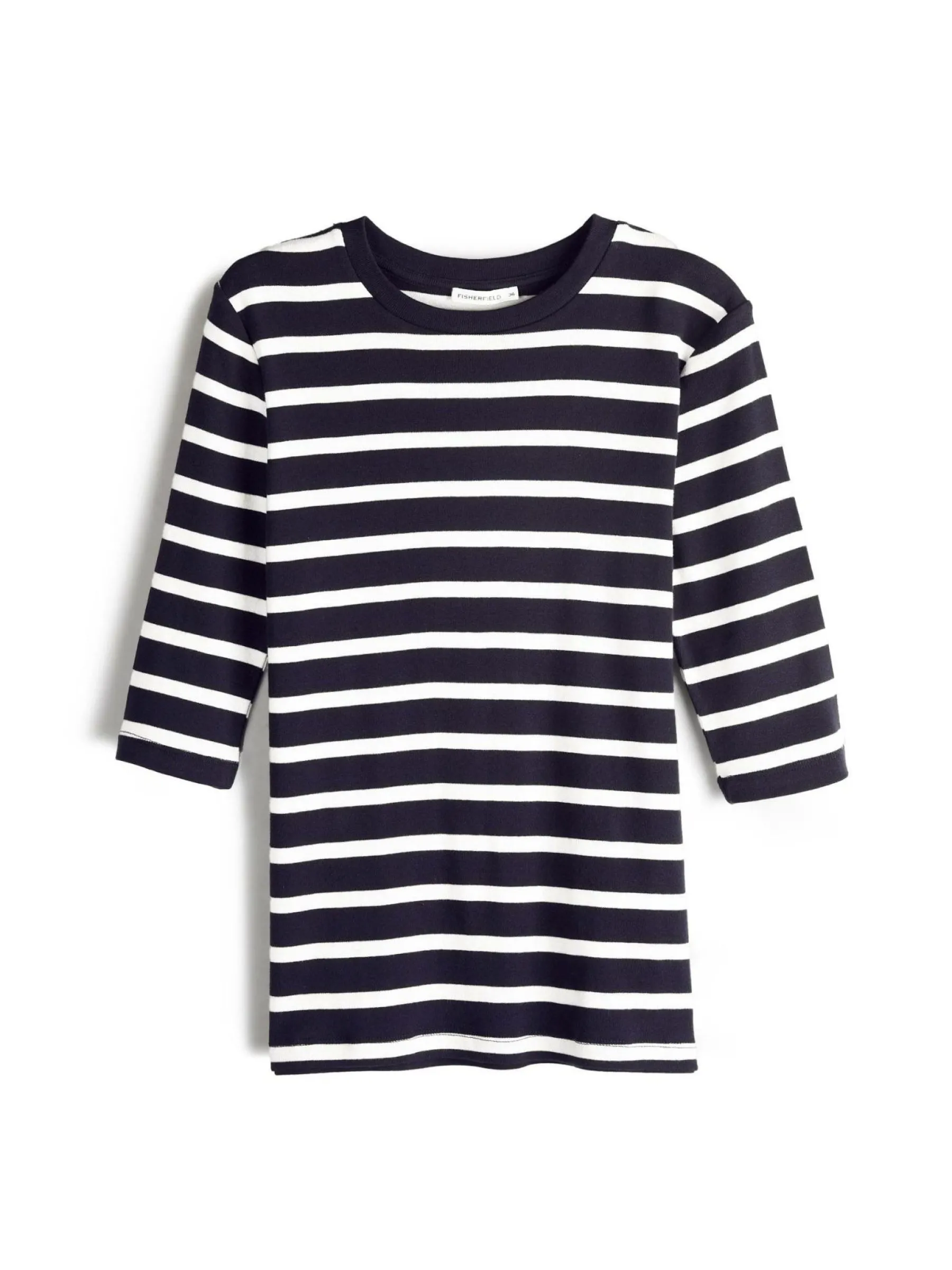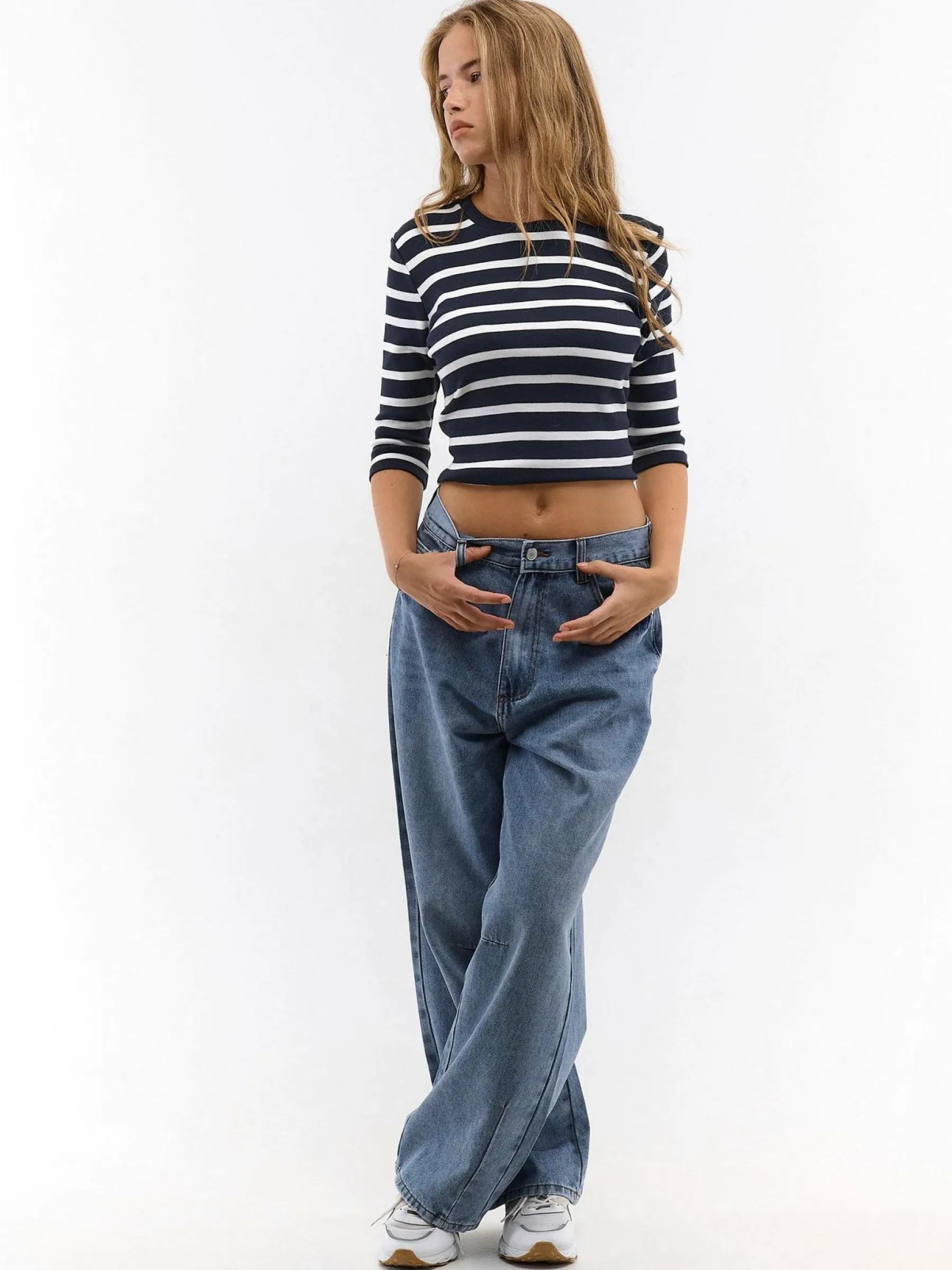Kolor: granatowy, niebieskiKrój: regularTyp: topRekaw: rękaw 3/4Długość: krótkiPattern style: w prążkiDetal: nad…
