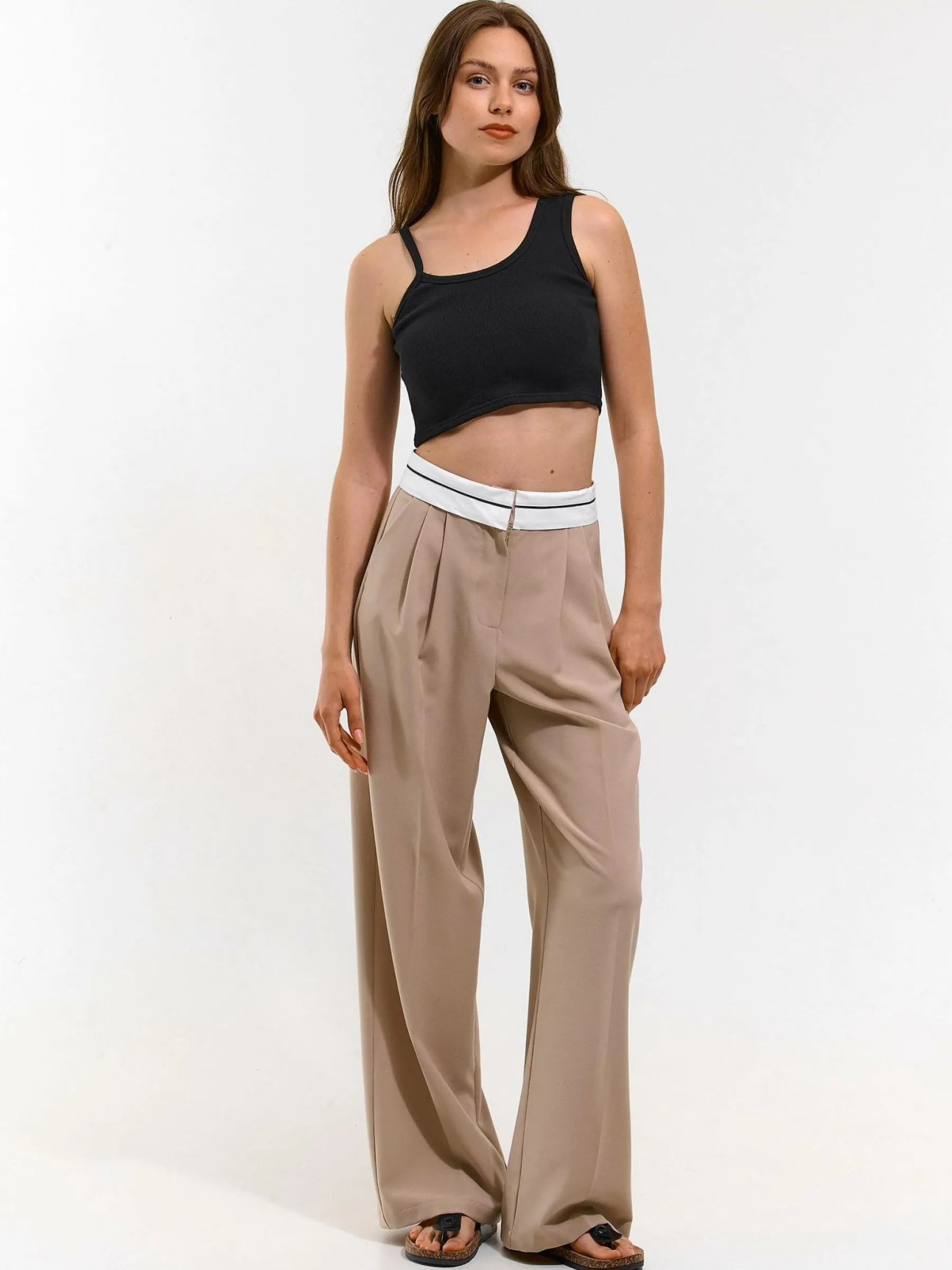 Kolor: czarnyKrój: asymetryczneTyp: podkoszulekRekaw: bez rękawówDługość: krótki topPattern style: pojedynczy kol…