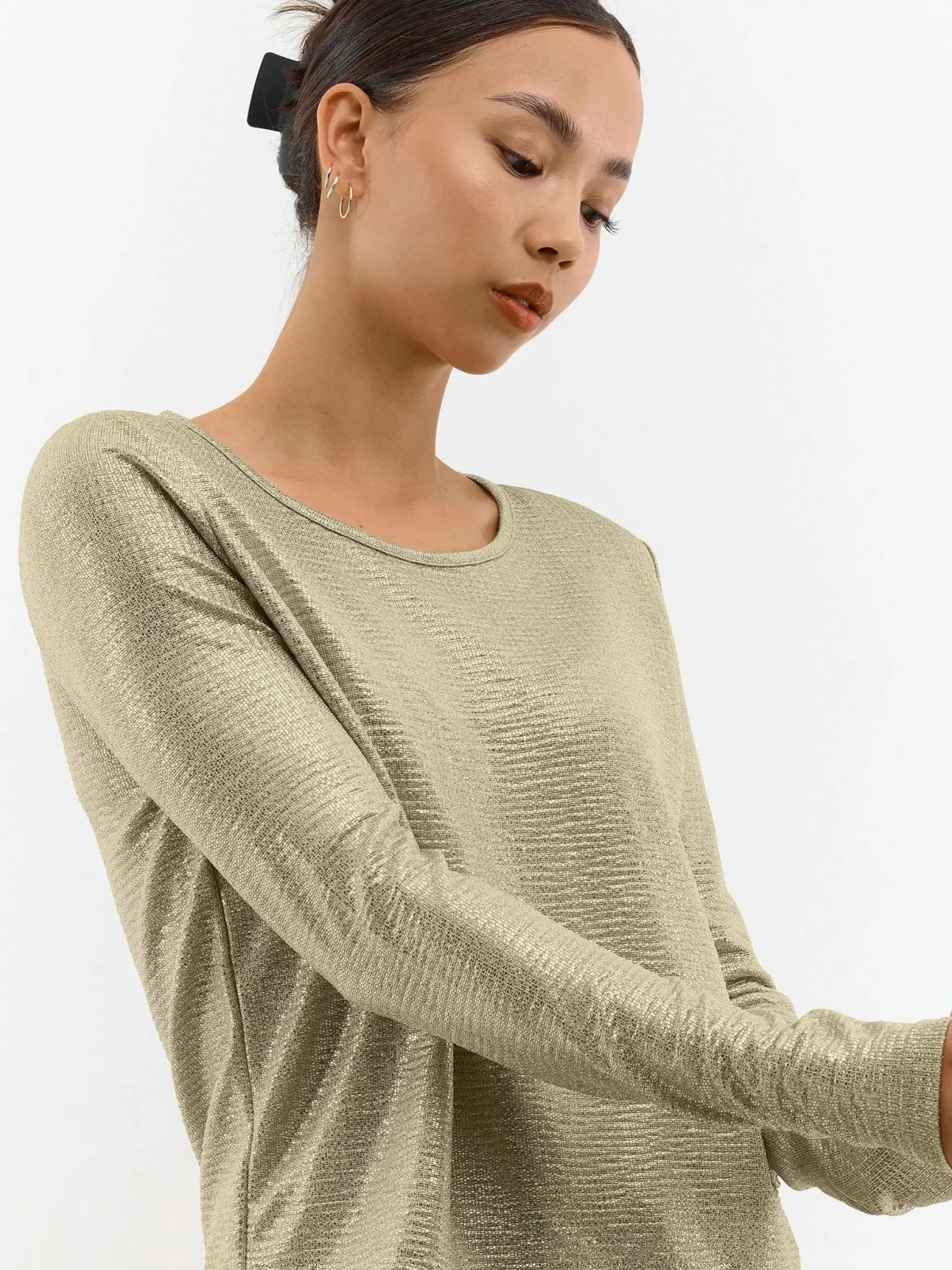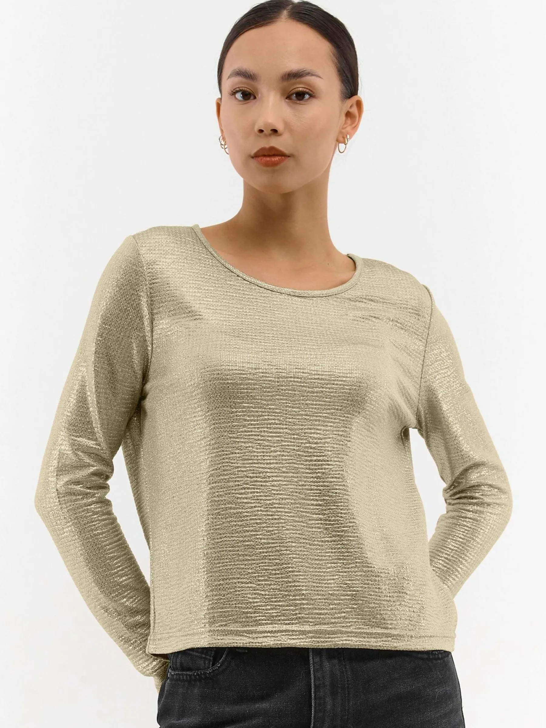 Zdjęcia z modelką mogą nie odpowiadać rzeczywistemu kolorowi produktu.Kolor: gold, metalicznyKrój: regularTyp: topR…