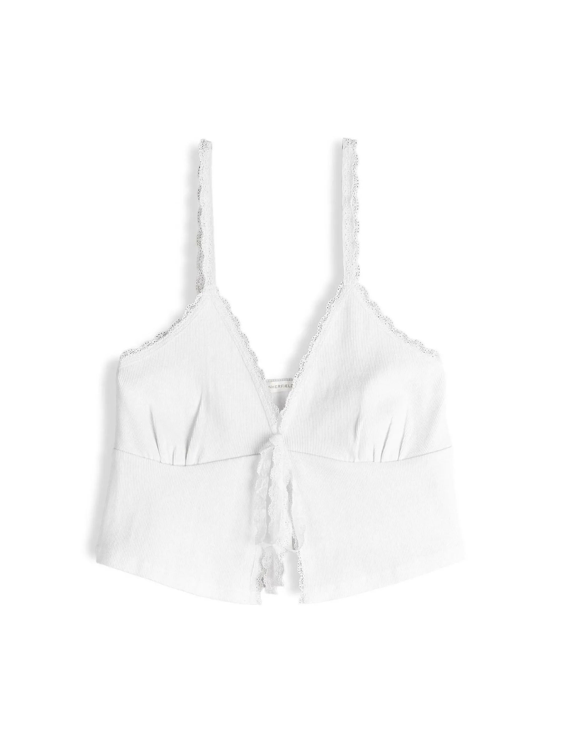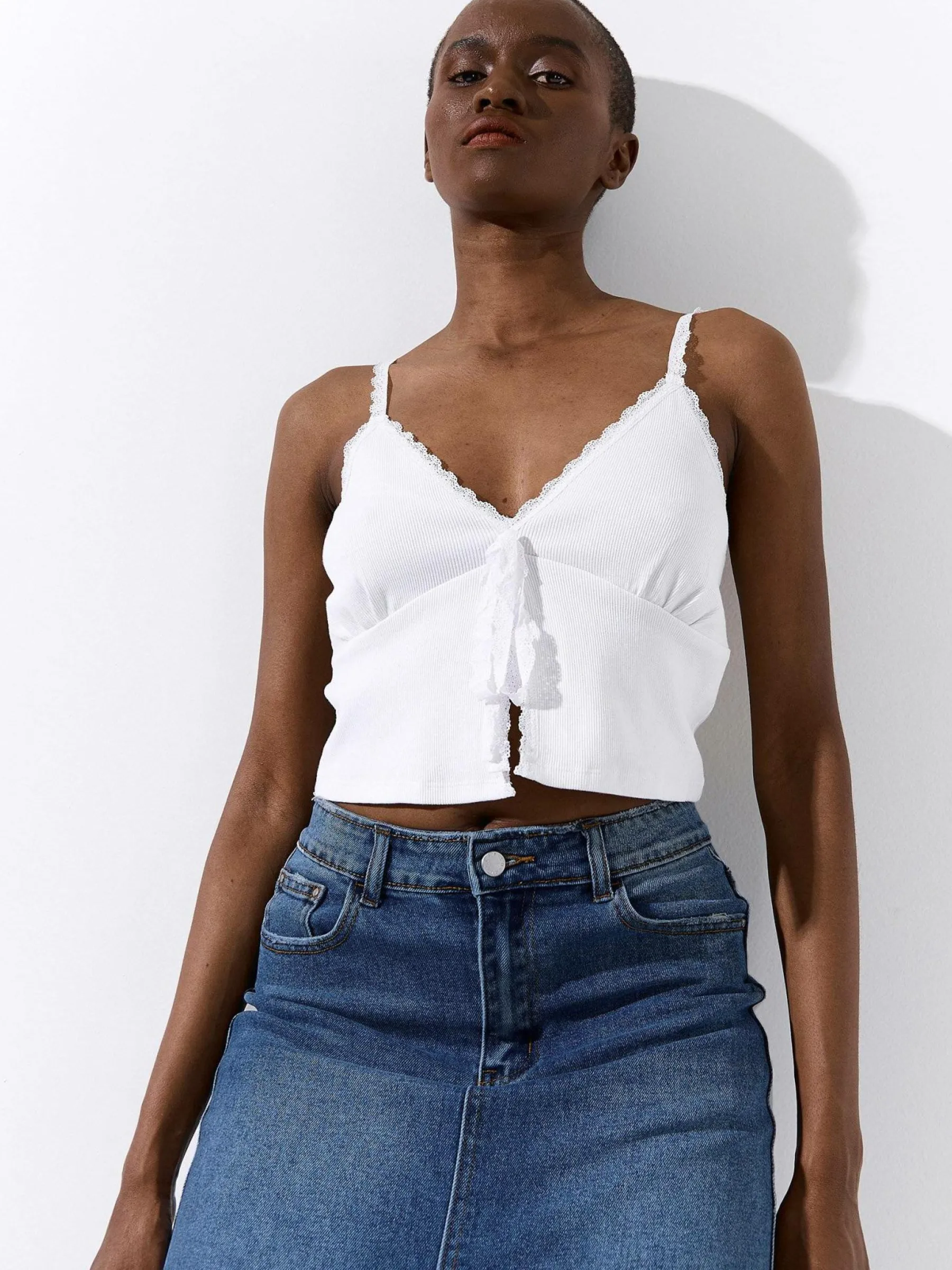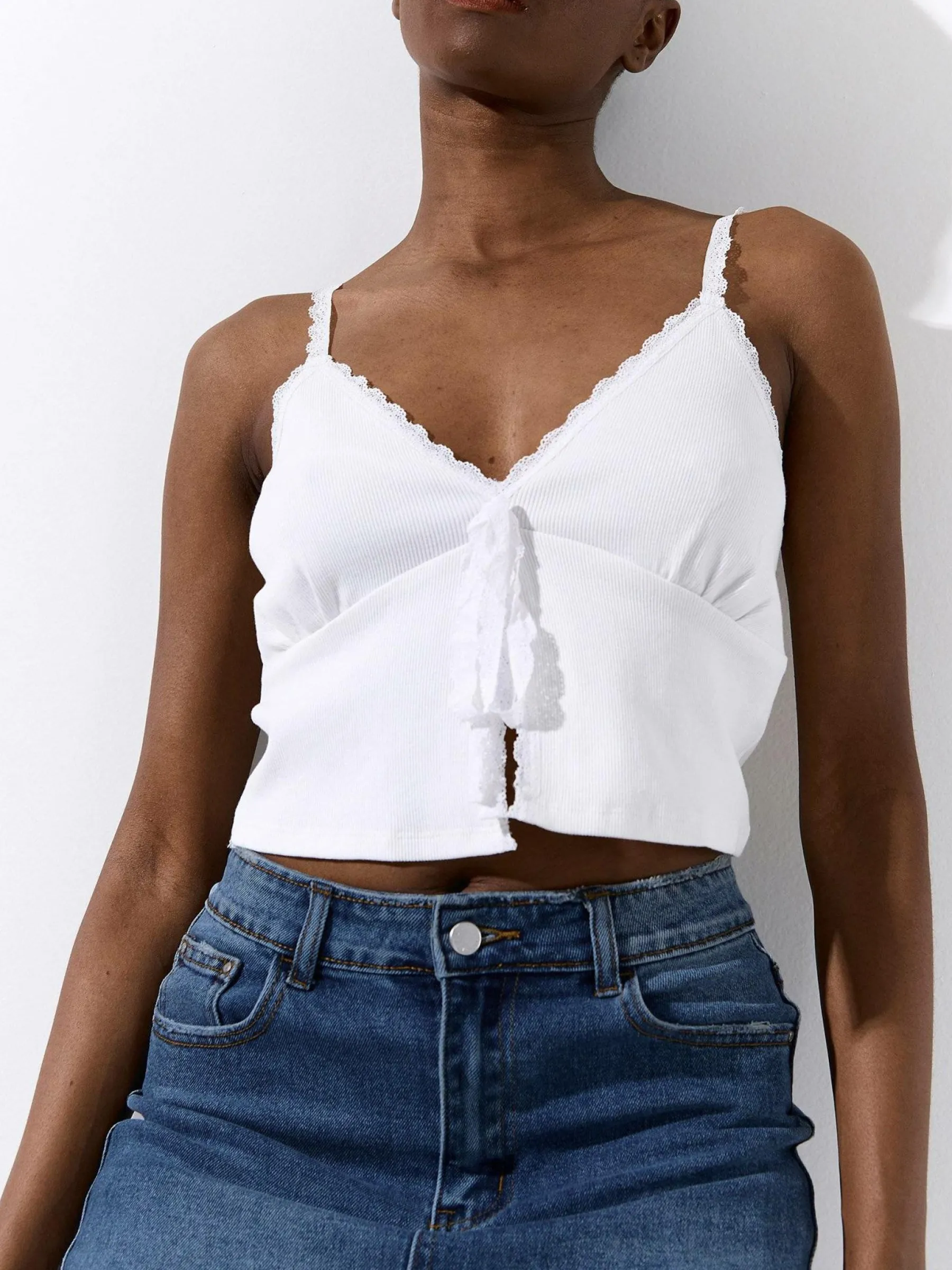 Kolor: białyKrój: regularTyp: topRekaw: bez rękawówDługość: krótkiPattern style: pojedynczy kolor, żebrowanyDet…