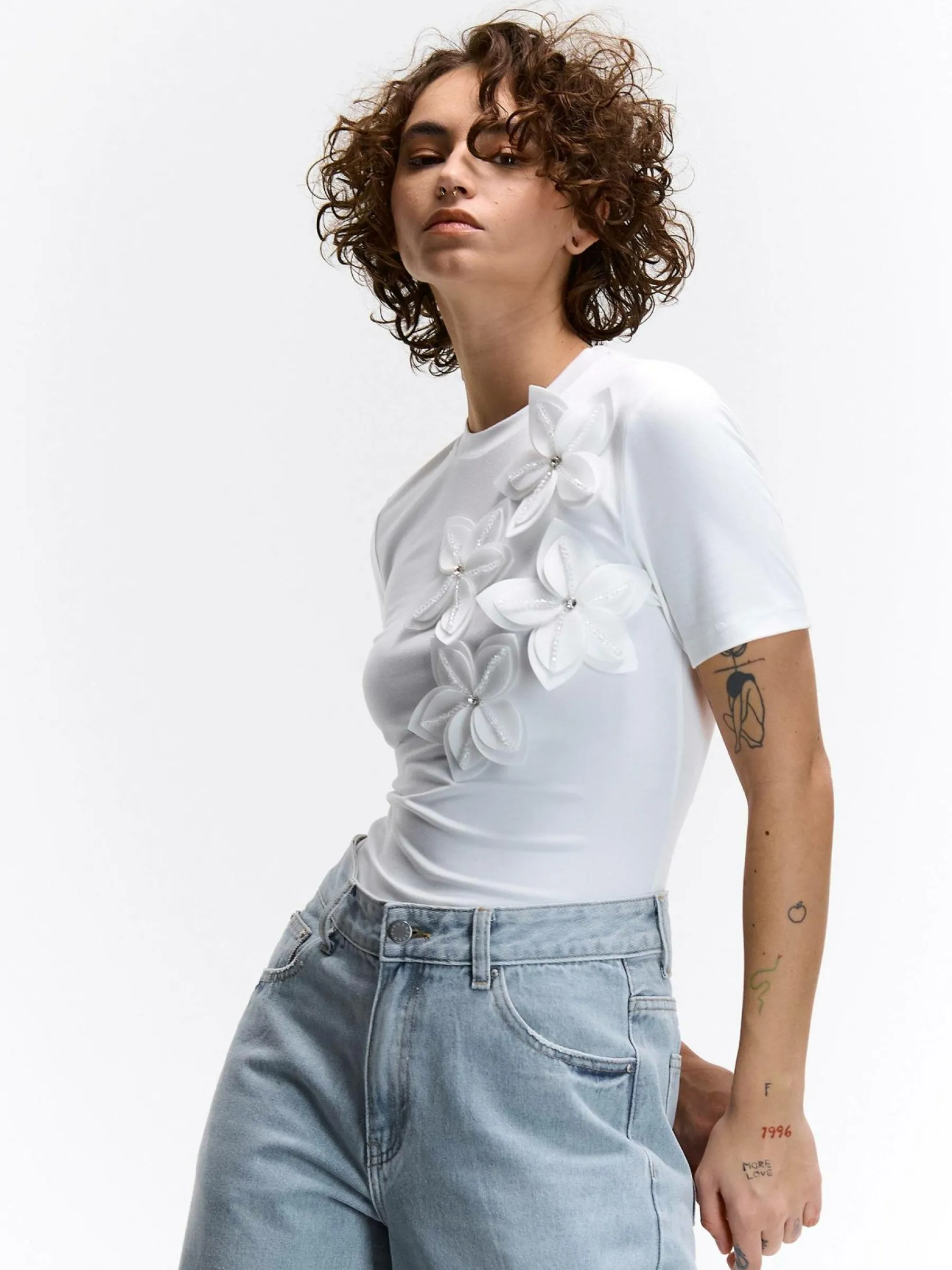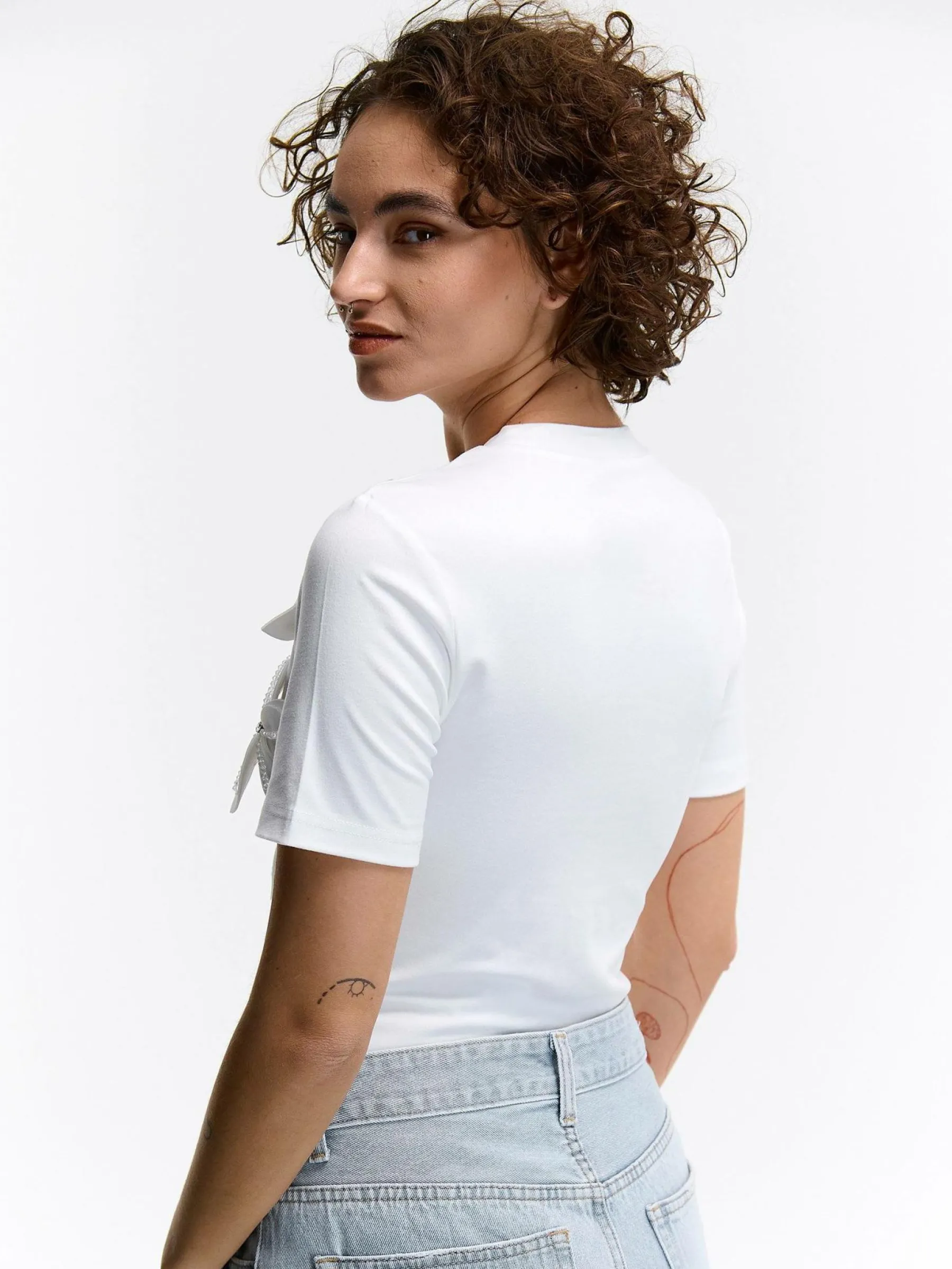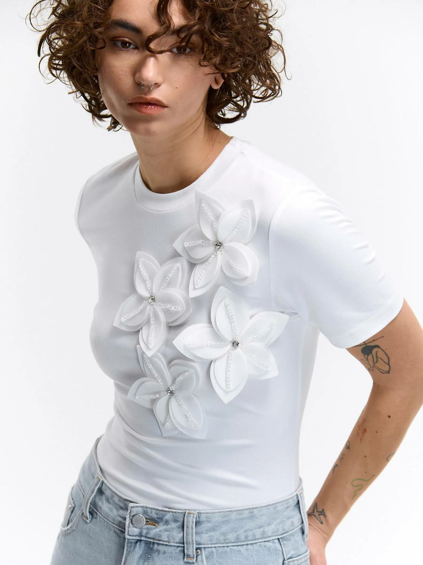 Kolor: białyKrój: regularTyp: topRekaw: krótki rękawDługość: krótkiPattern style: pojedynczy kolorDetal: nad gł…