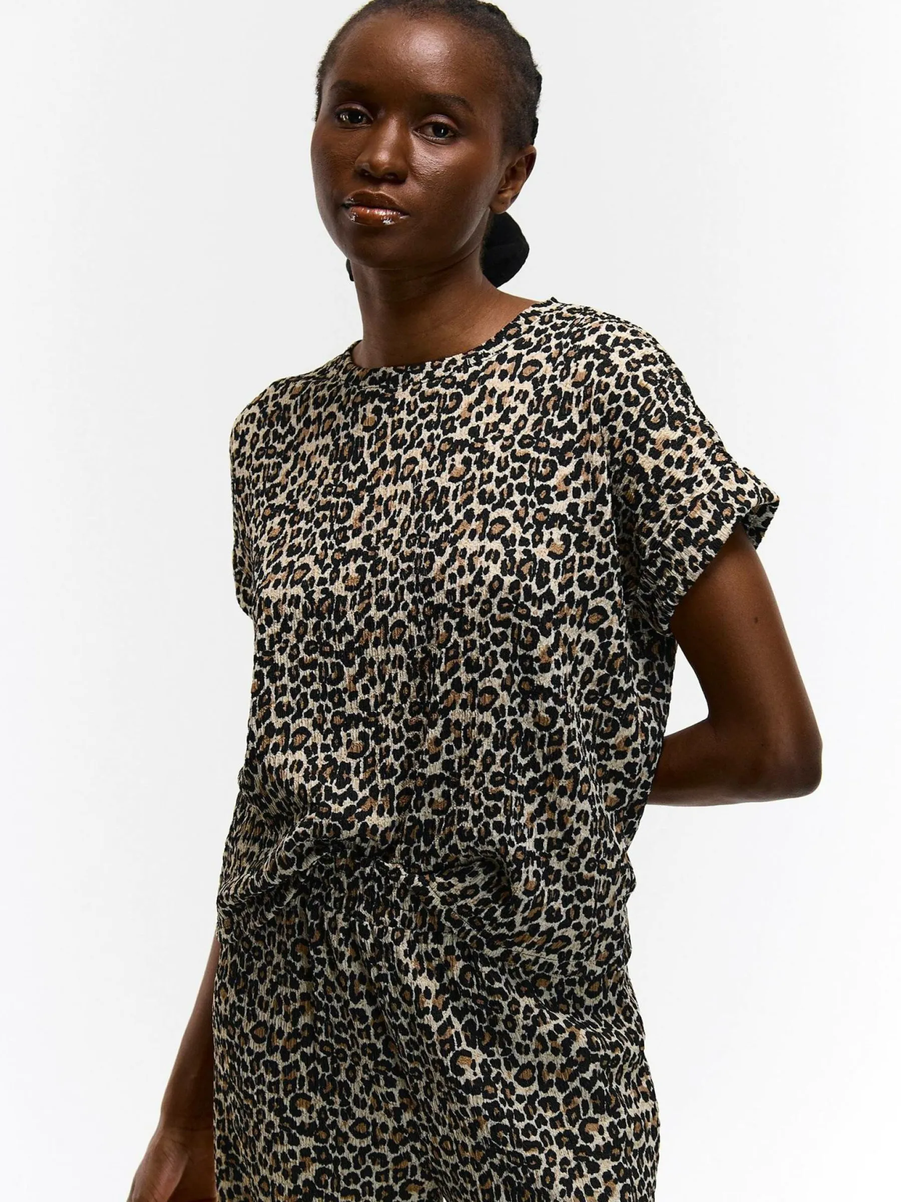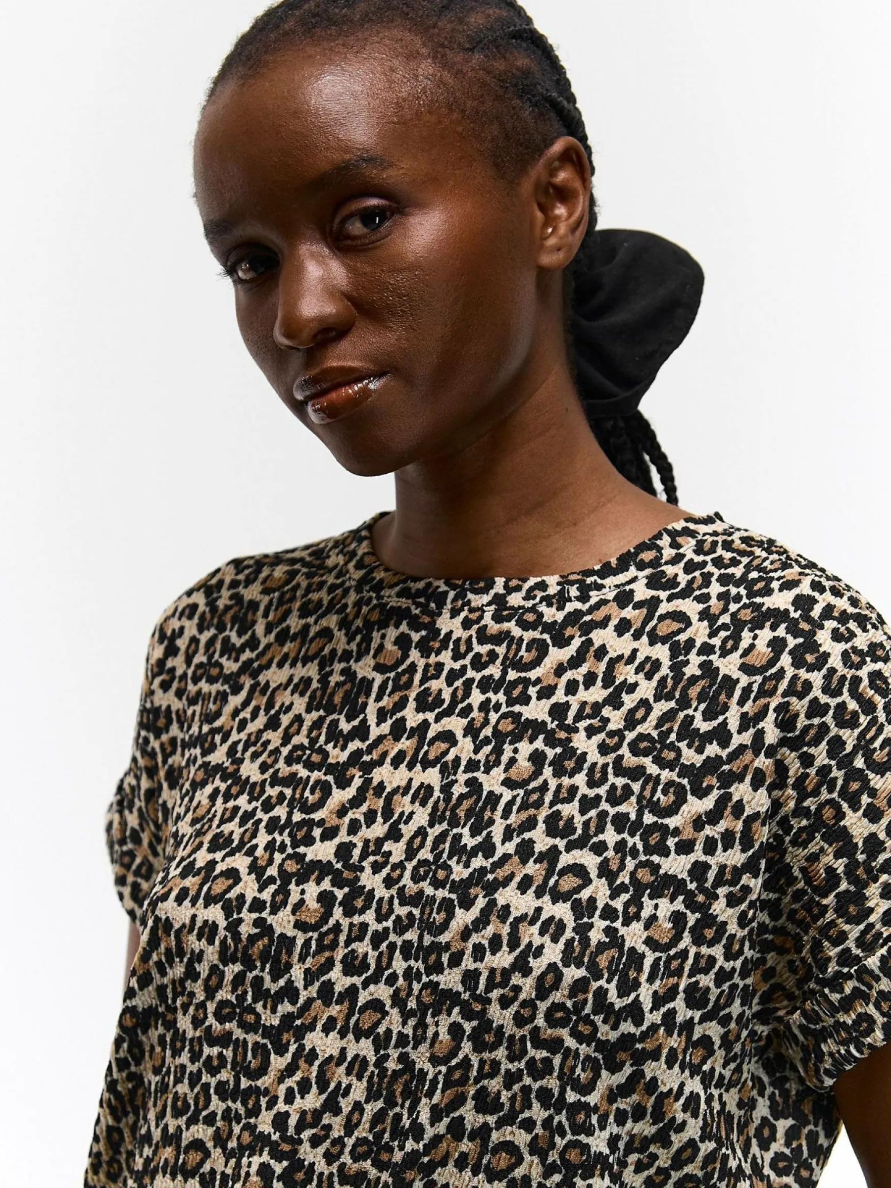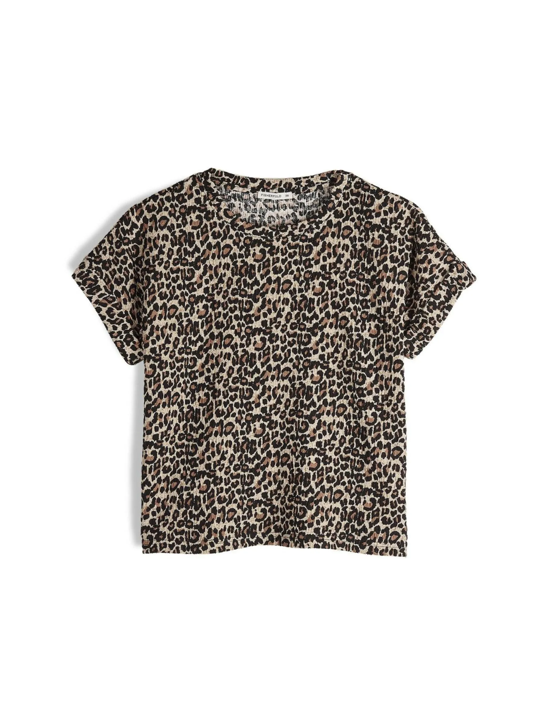Kolor: brązowyKrój: regularTyp: topRekaw: krótki rękawDługość: krótkiPattern style: zwierzecyDetal: nad głowąM…