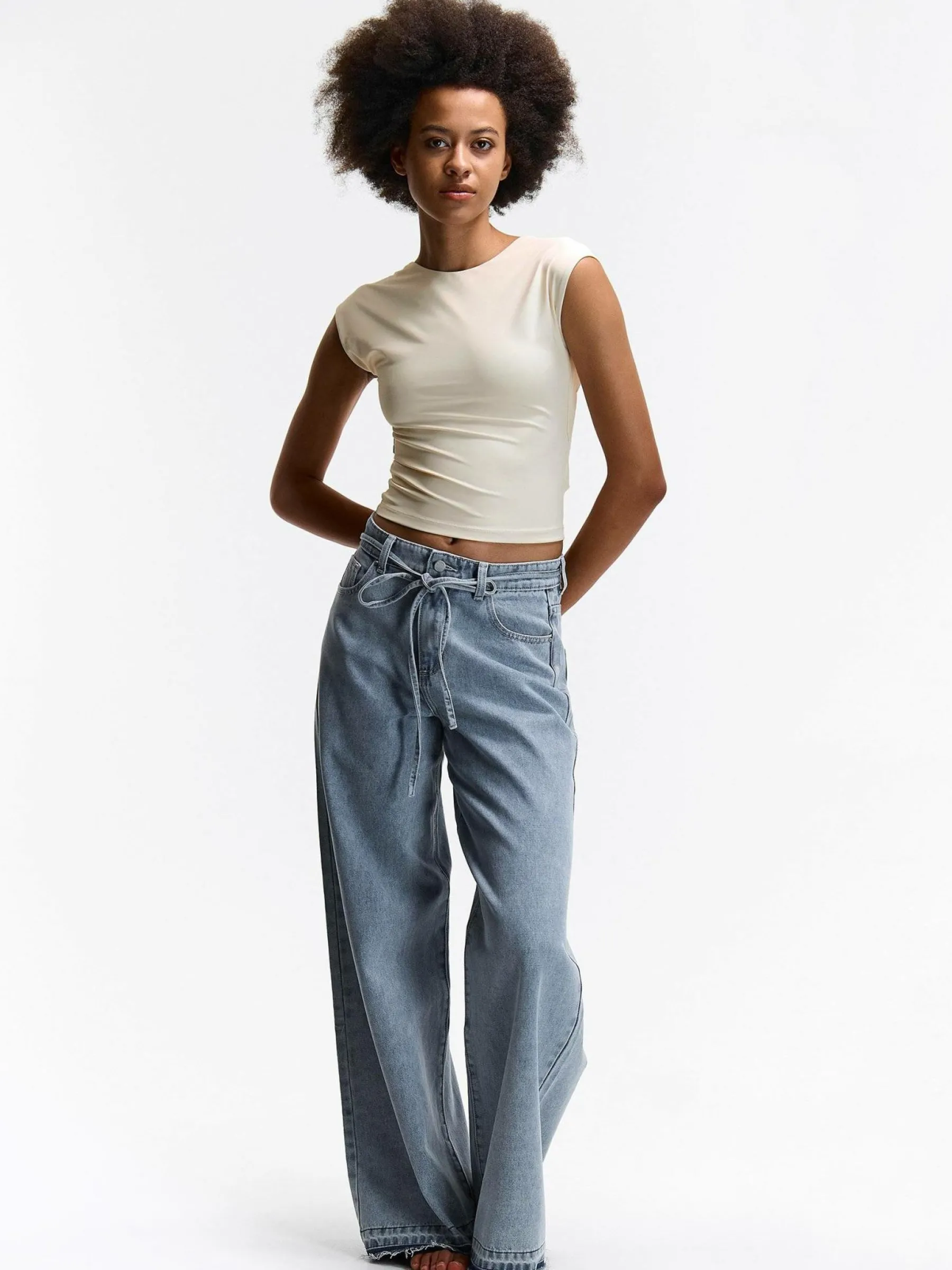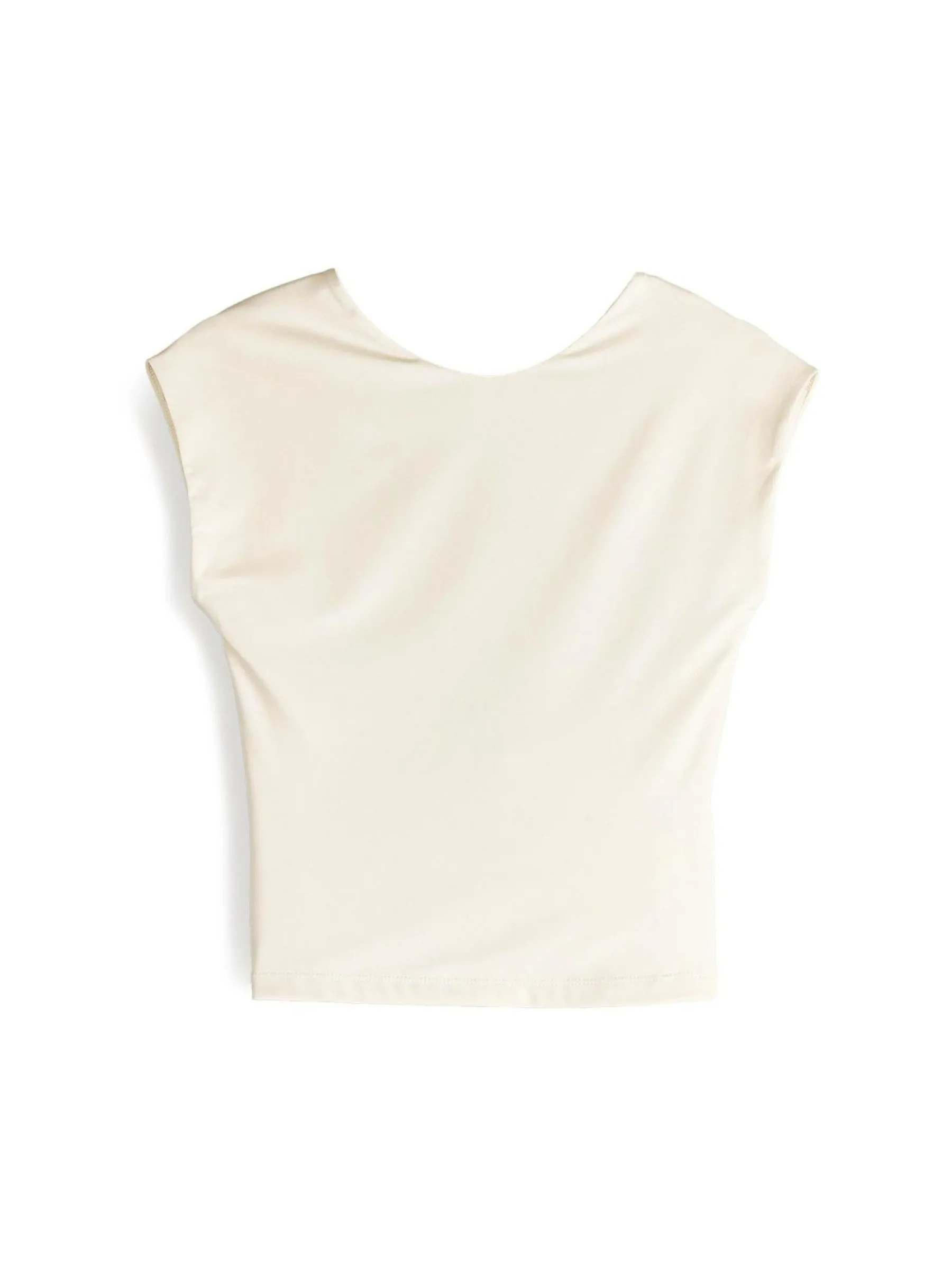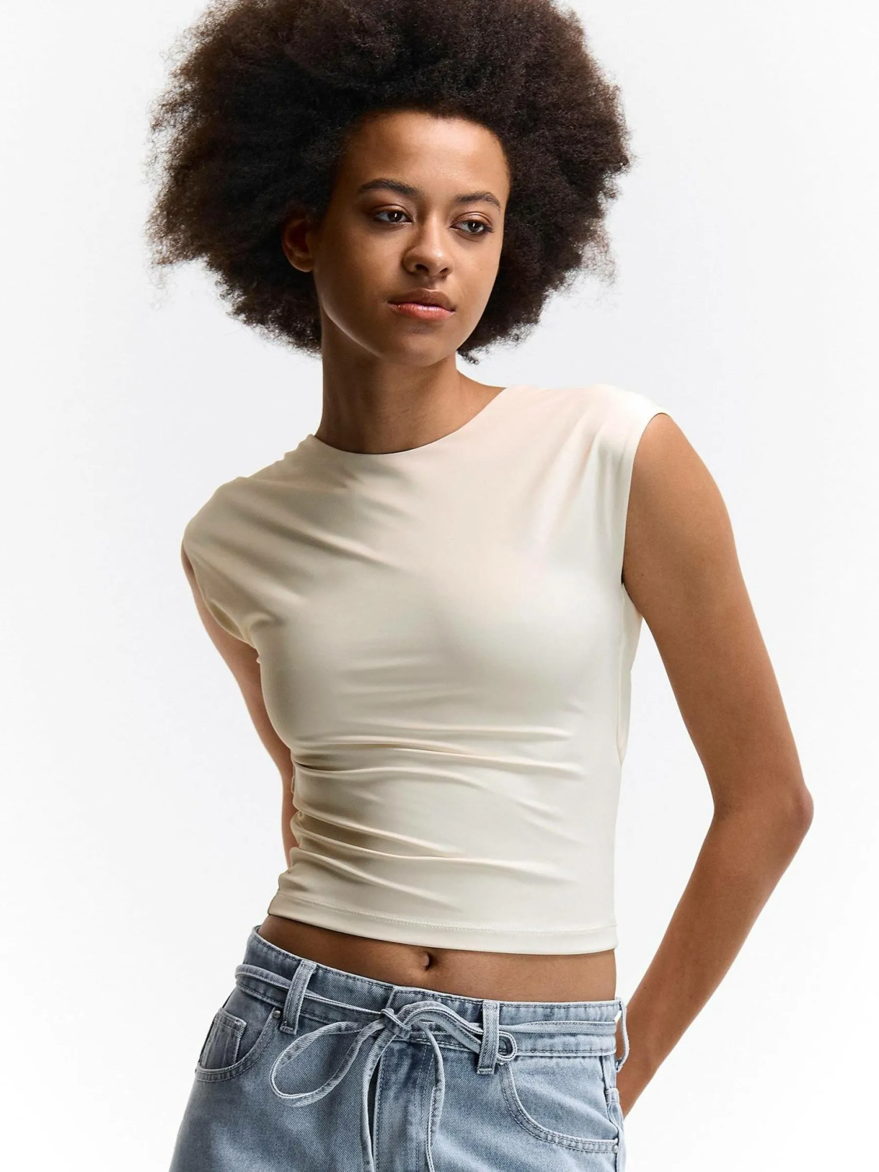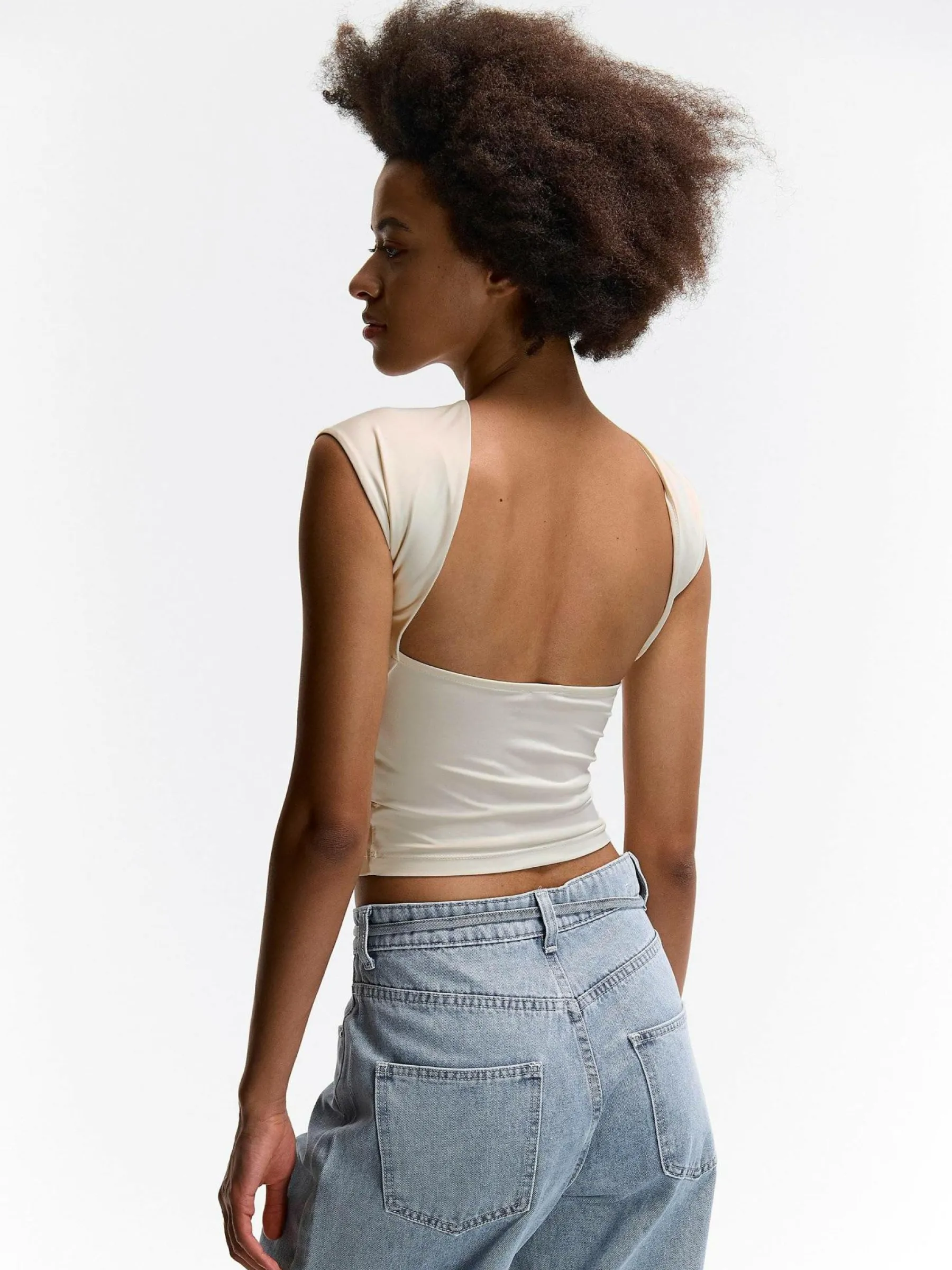 Kolor: beżowyKrój: regularTyp: topRekaw: bez rękawówDługość: krótki topPattern style: pojedynczy kolorDetal: nad…