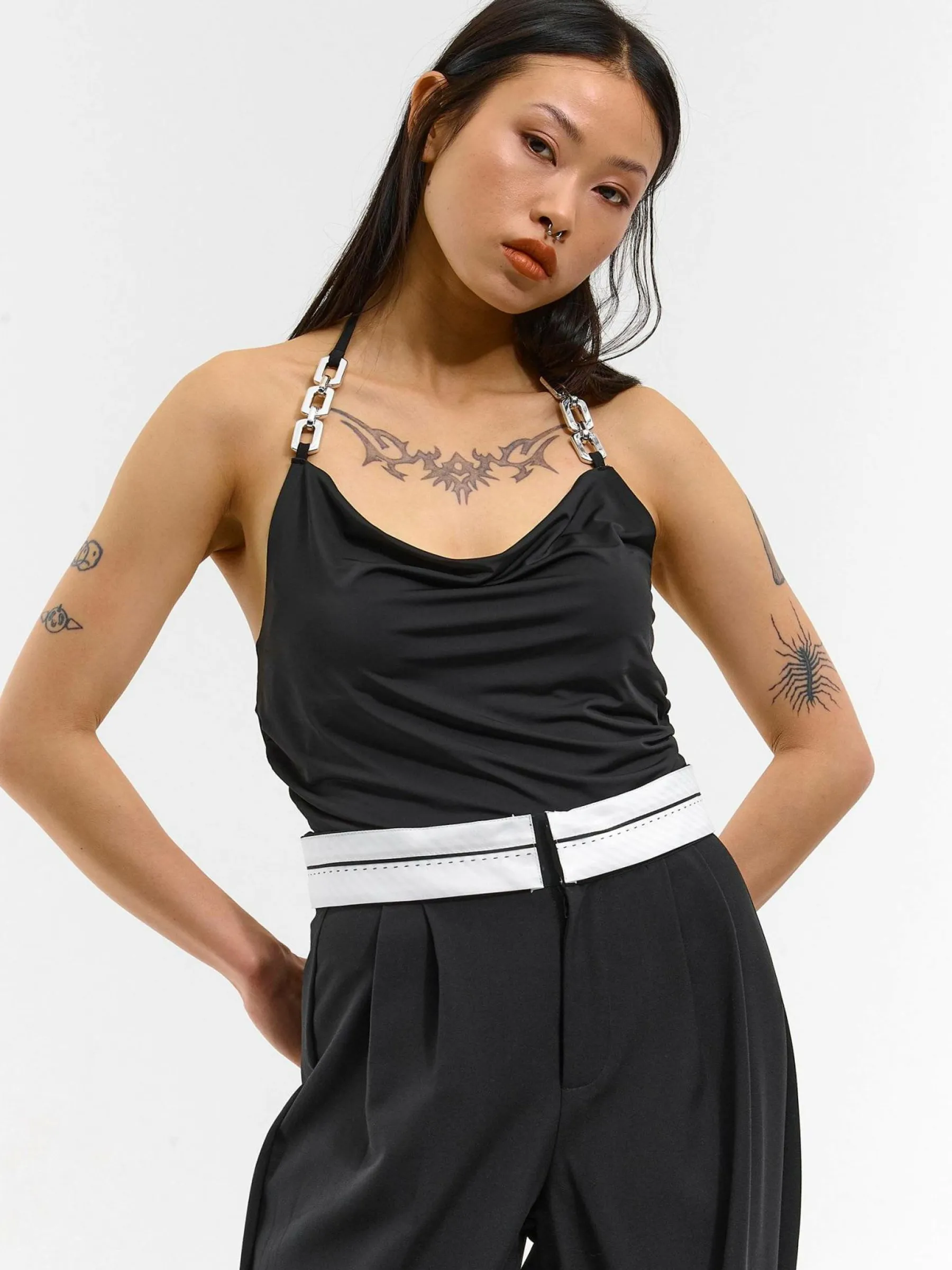 Kolor: czarnyKrój: z marszczeniemTyp: podkoszulekRekaw: bez rękawówDługość: krótkiPattern style: pojedynczy kolor…