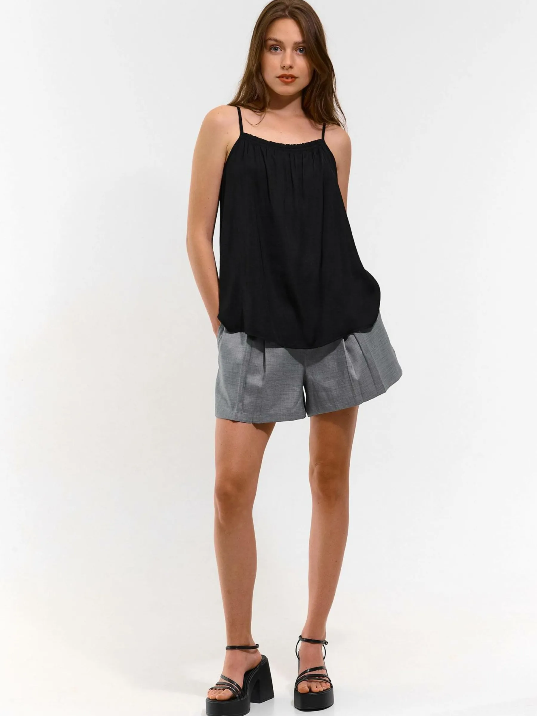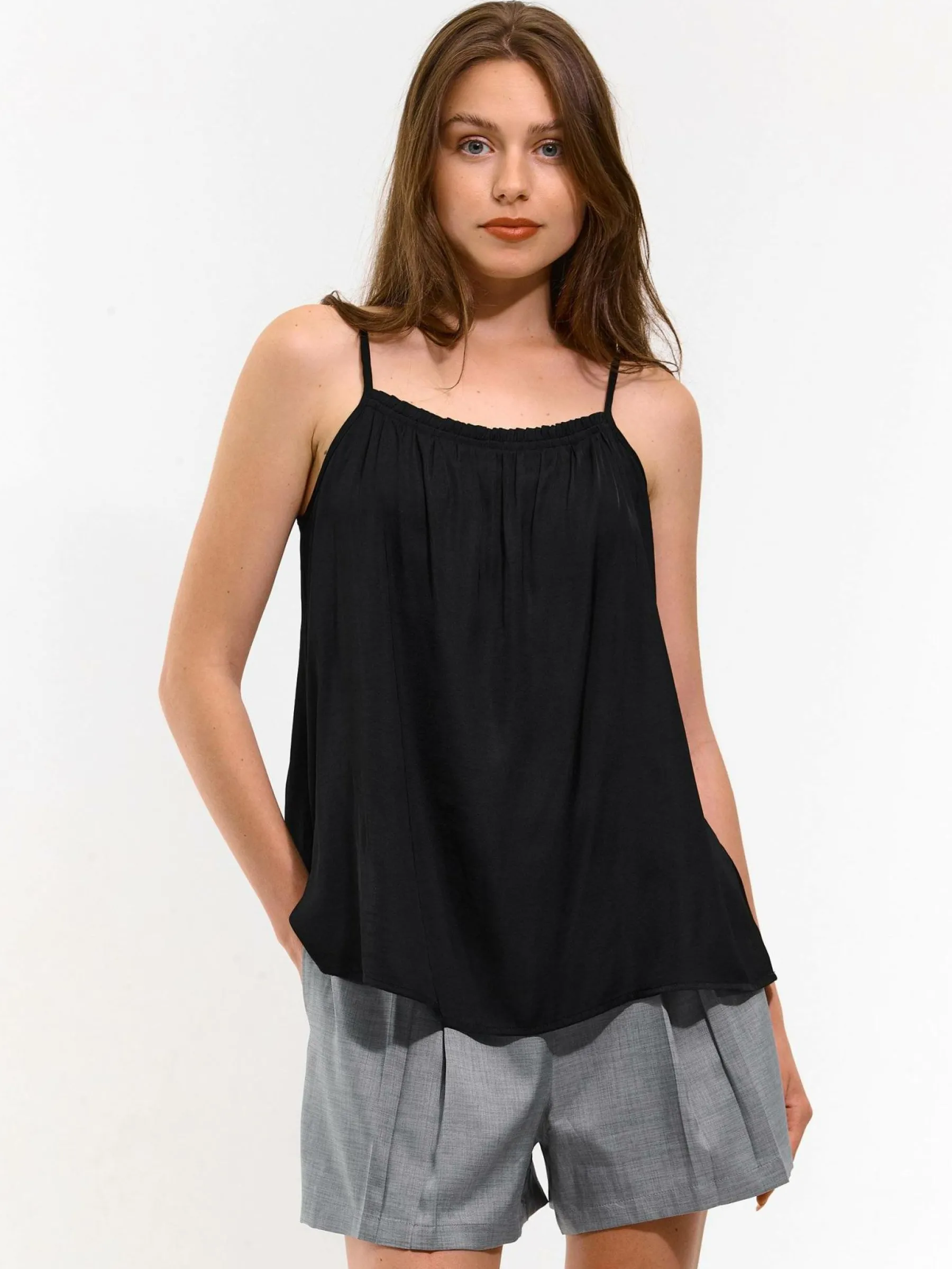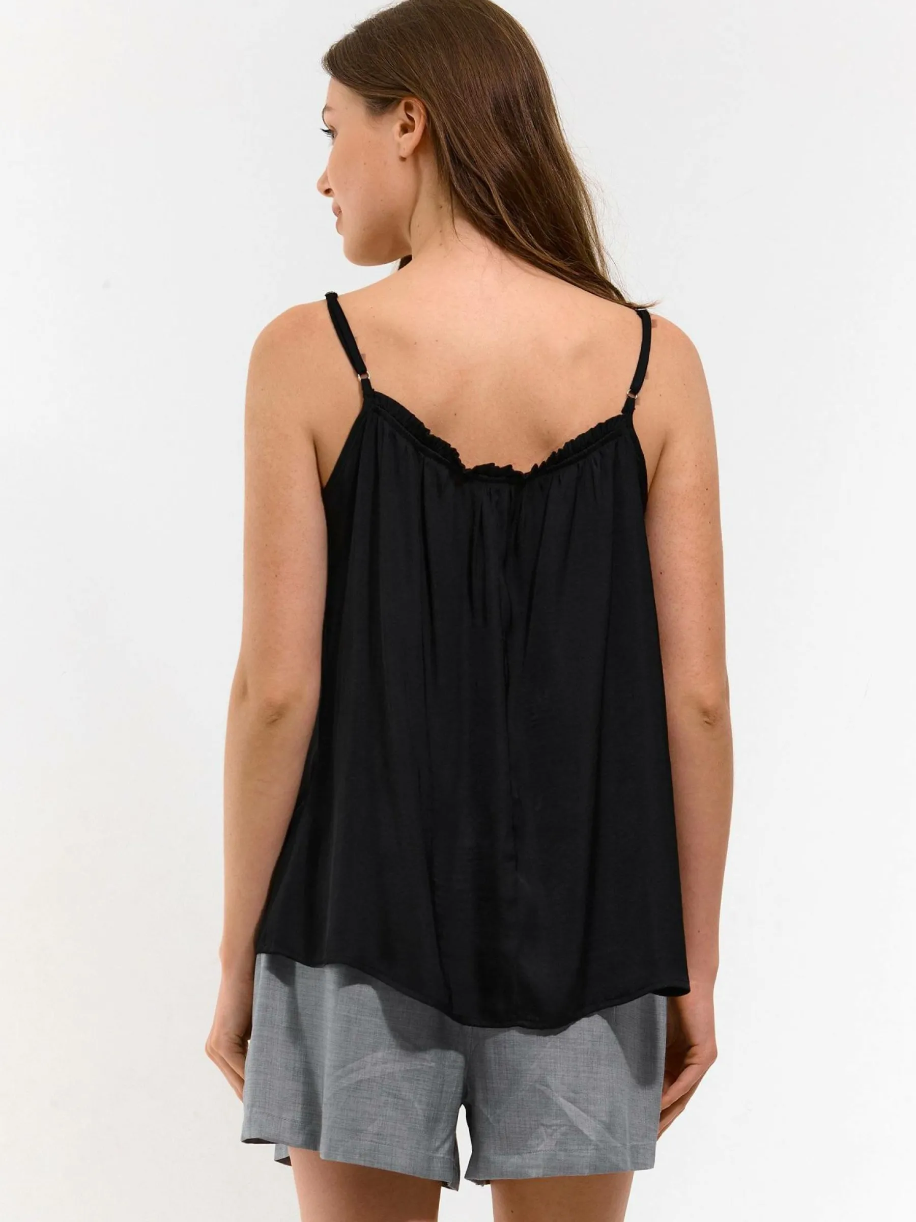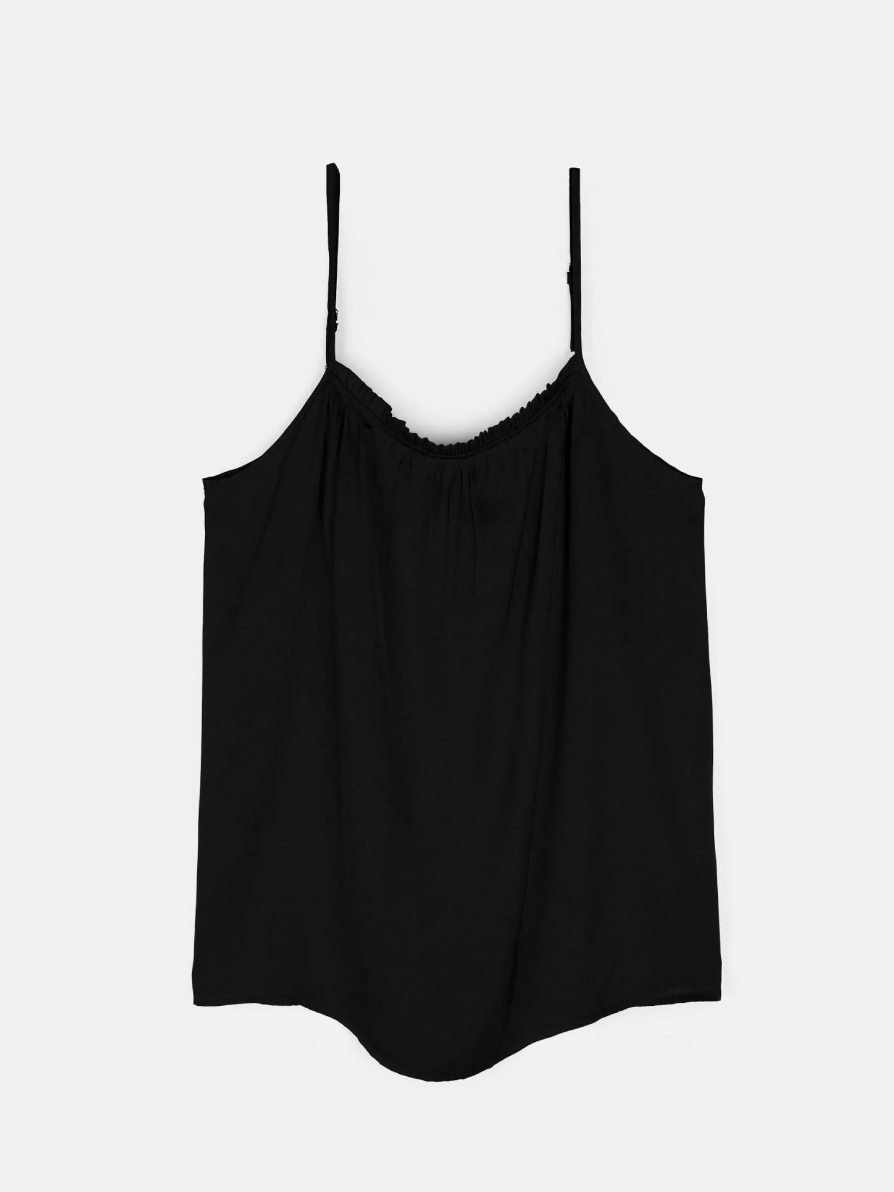 Kolor: czarnyKrój: regularTyp: topRekaw: bez rękawówDługość: krótkiPattern style: pojedynczy kolorDetal: nad gło…