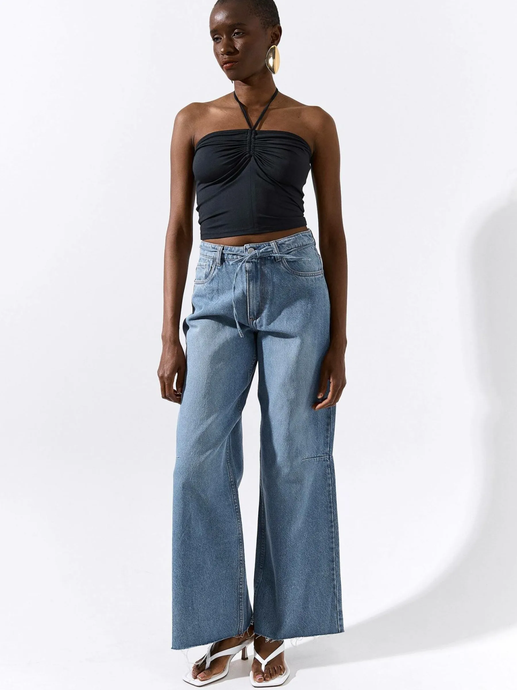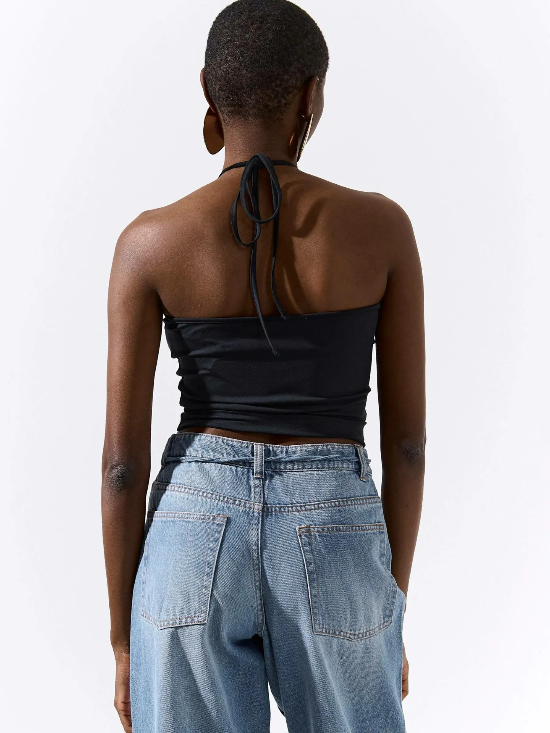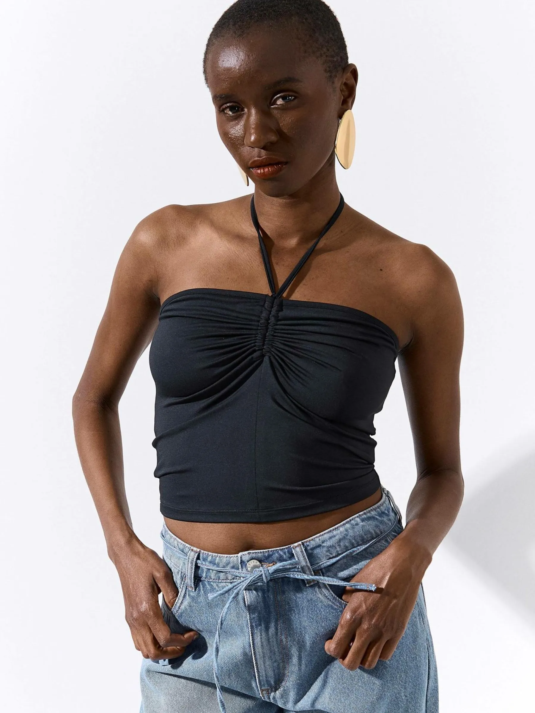 Kolor: czarnyKrój: z odkrytymi ramionamiTyp: topRekaw: bez rękawówDługość: krótkiPattern style: pojedynczy kolorD…