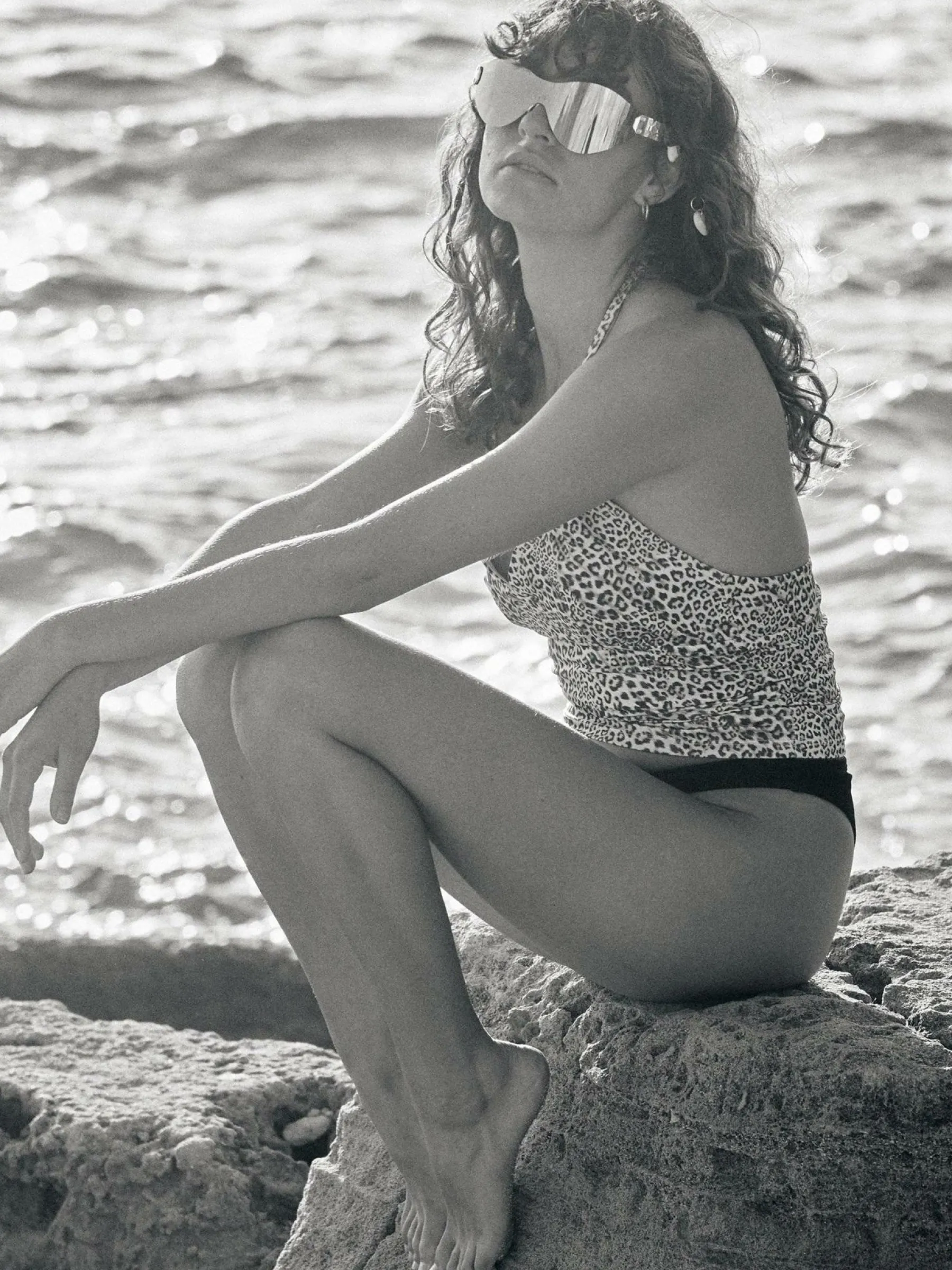 Kolor: niebieskiKrój: regularTyp: topRekaw: bez rękawówDługość: krótkiPattern style: zwierzecyDetal: z wiązaniem…