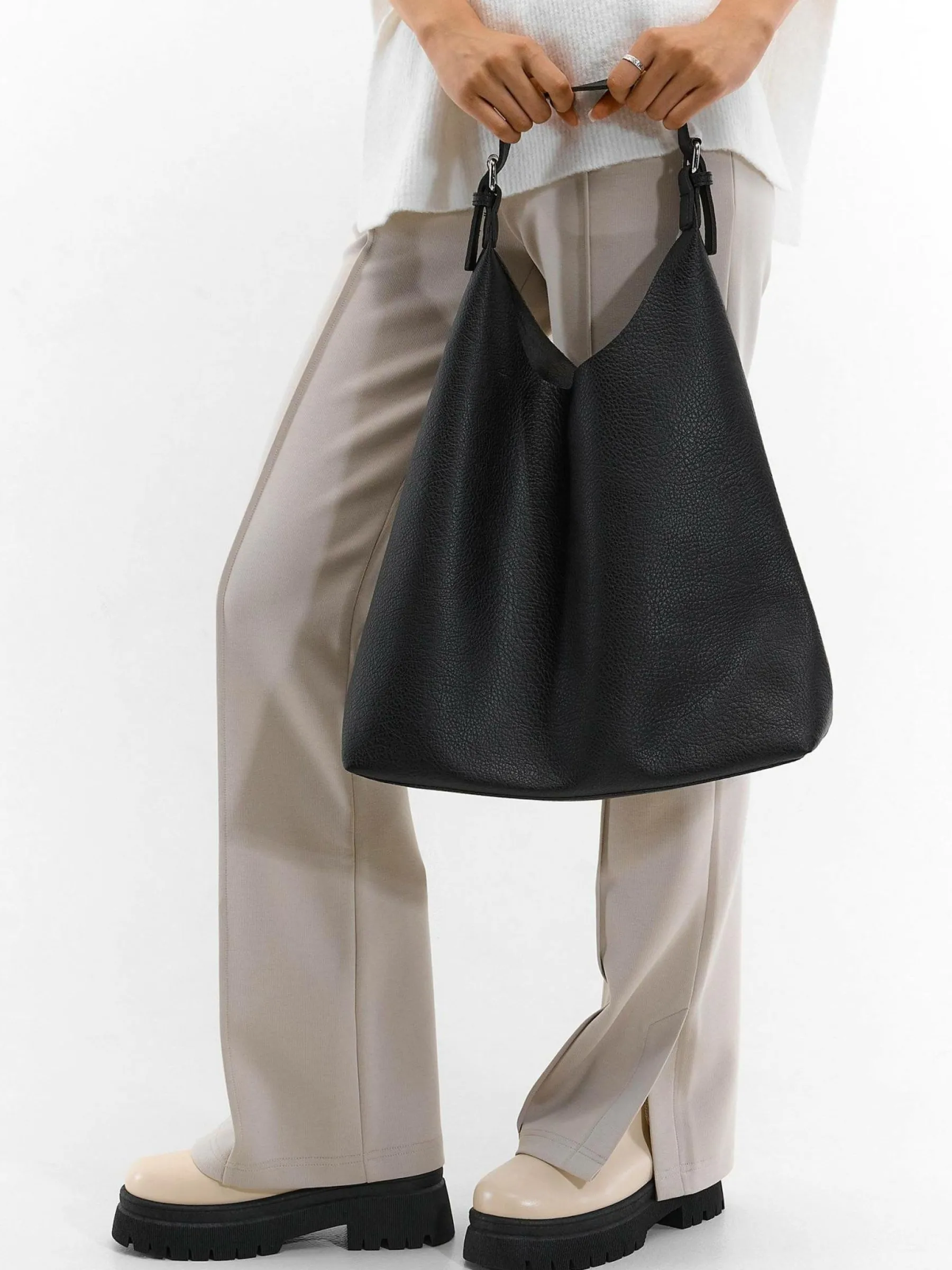 Kolor: czarnyKrój: shopperTyp: torebkaPattern style: pojedynczy kolorDetal: na snapyMateriał: sztuczna skóraPłeć: k…