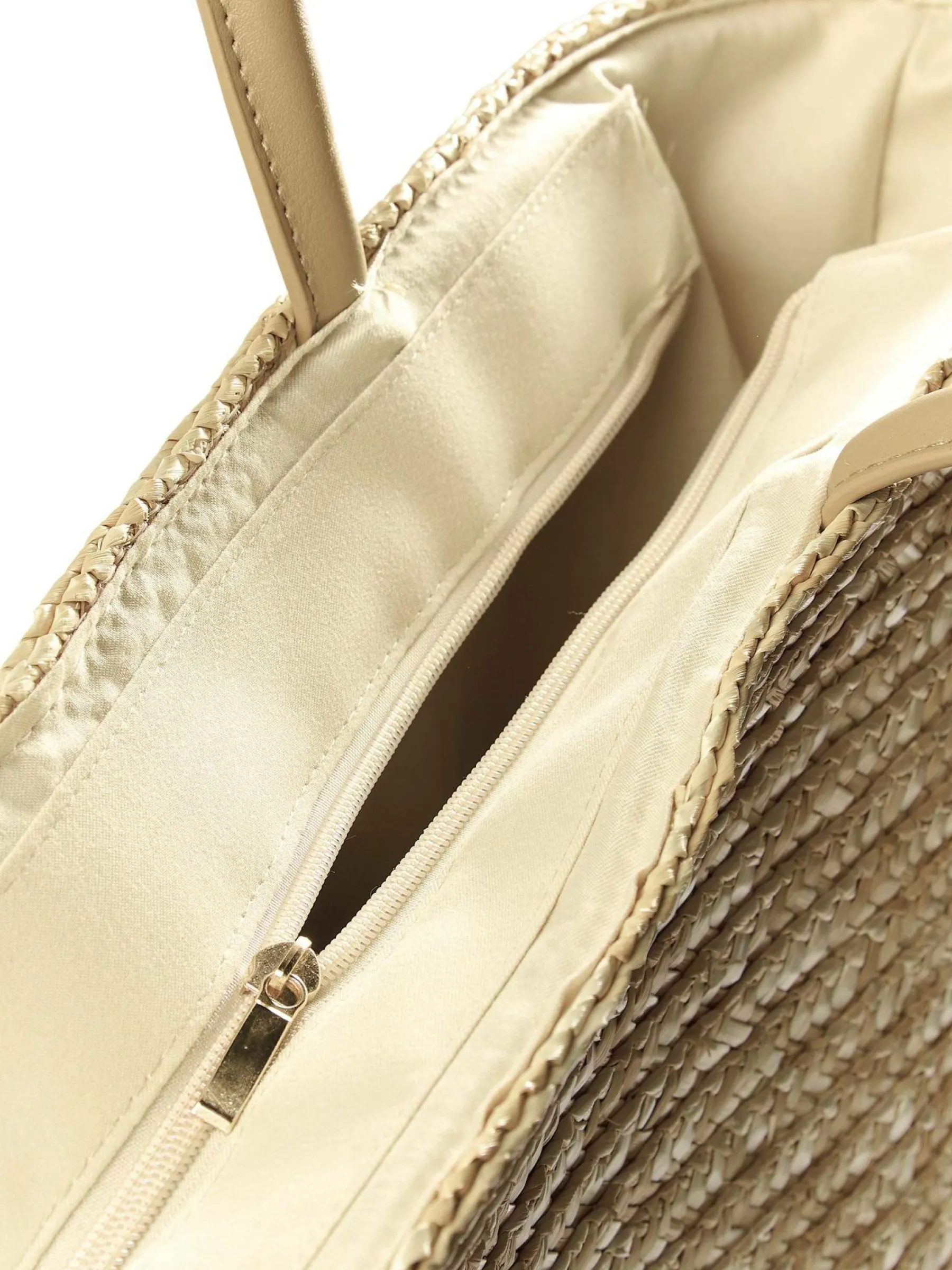 Kolor: beżowyKrój: shopperTyp: torebka, torbaPattern style: pojedynczy kolorDetal: na zamekPłeć: kobietyOkazja: stro…