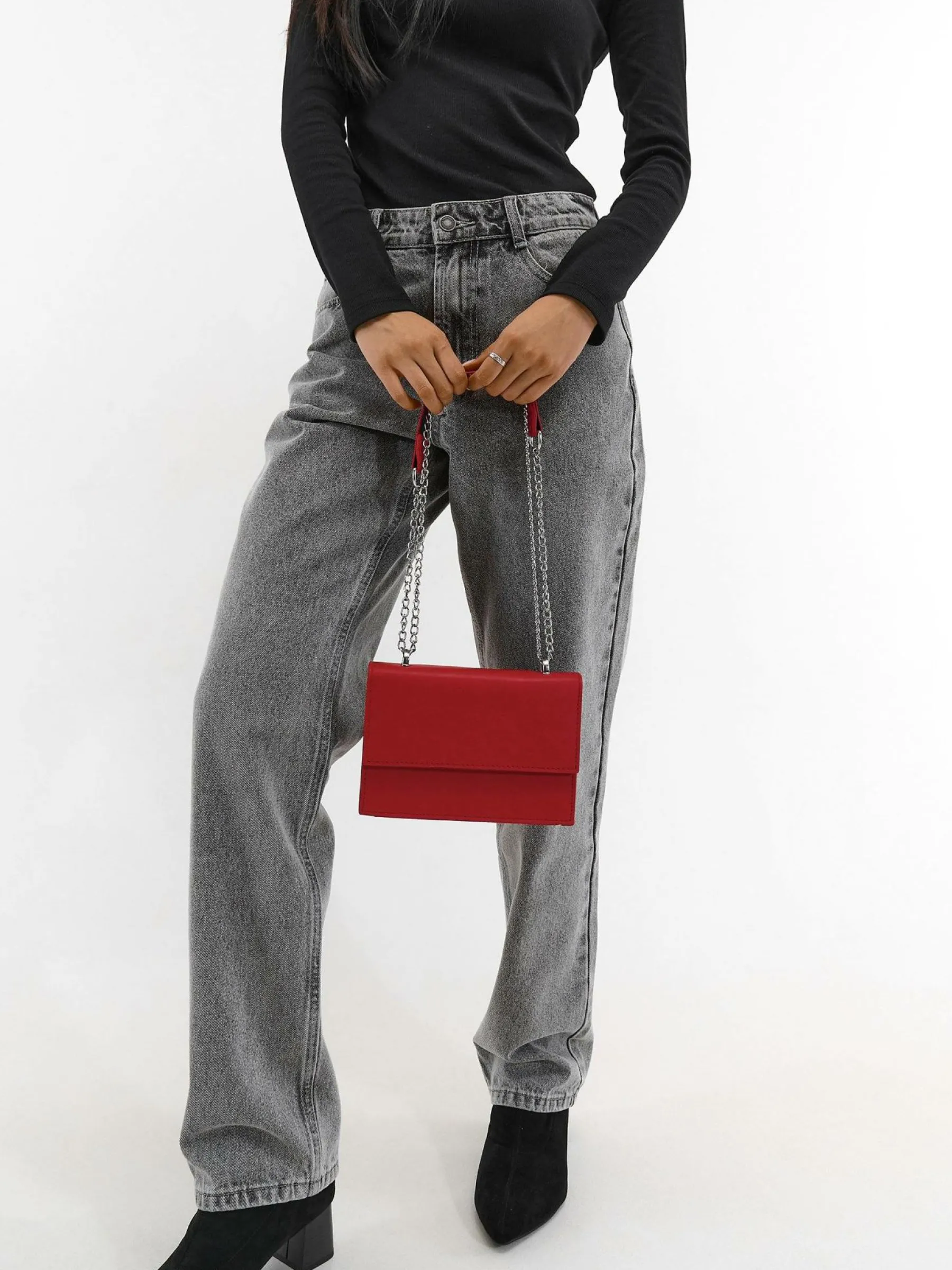 Kolor: czerwonyKrój: podstawowyTyp: torebkaPattern style: pojedynczy kolorDetal: na snapy, z łańcuchemMateriał: sztu…