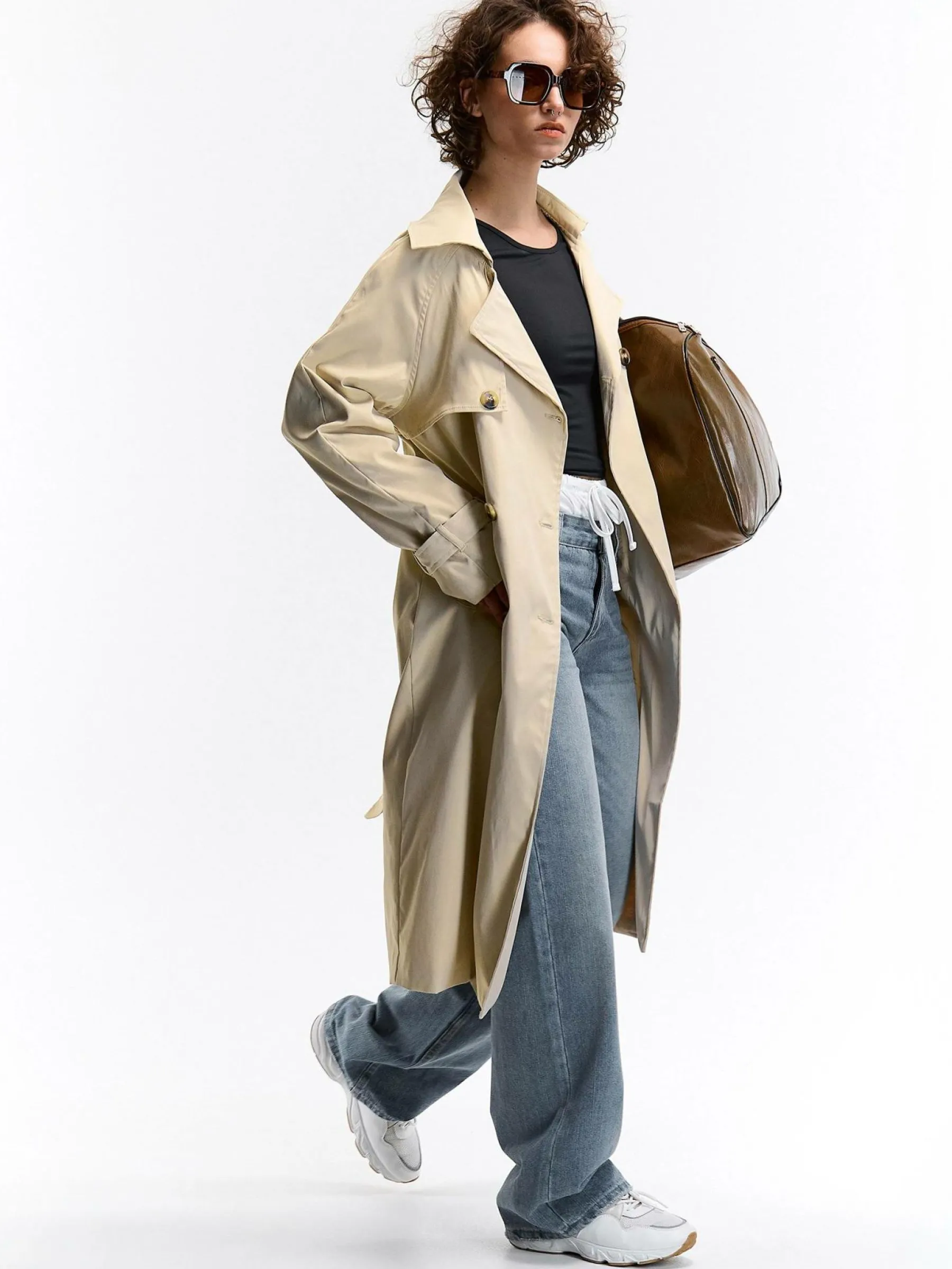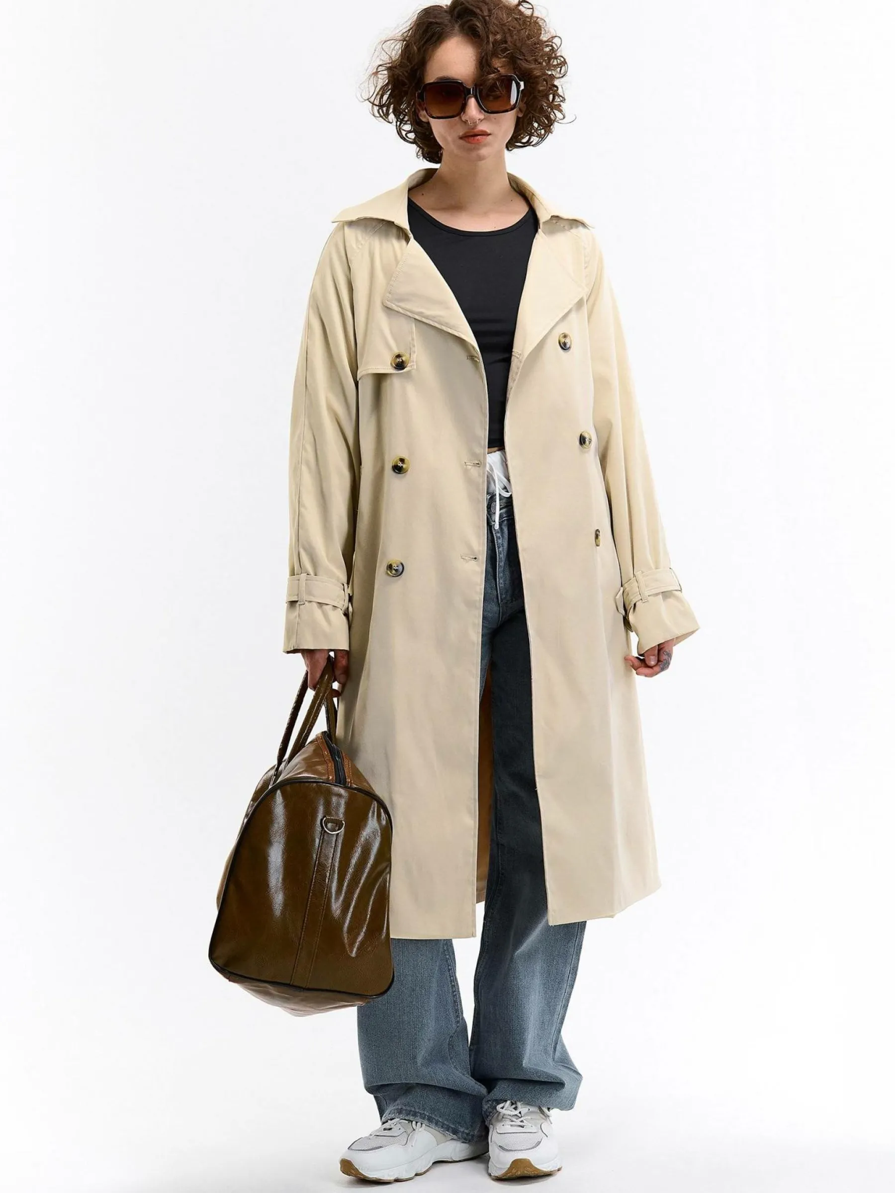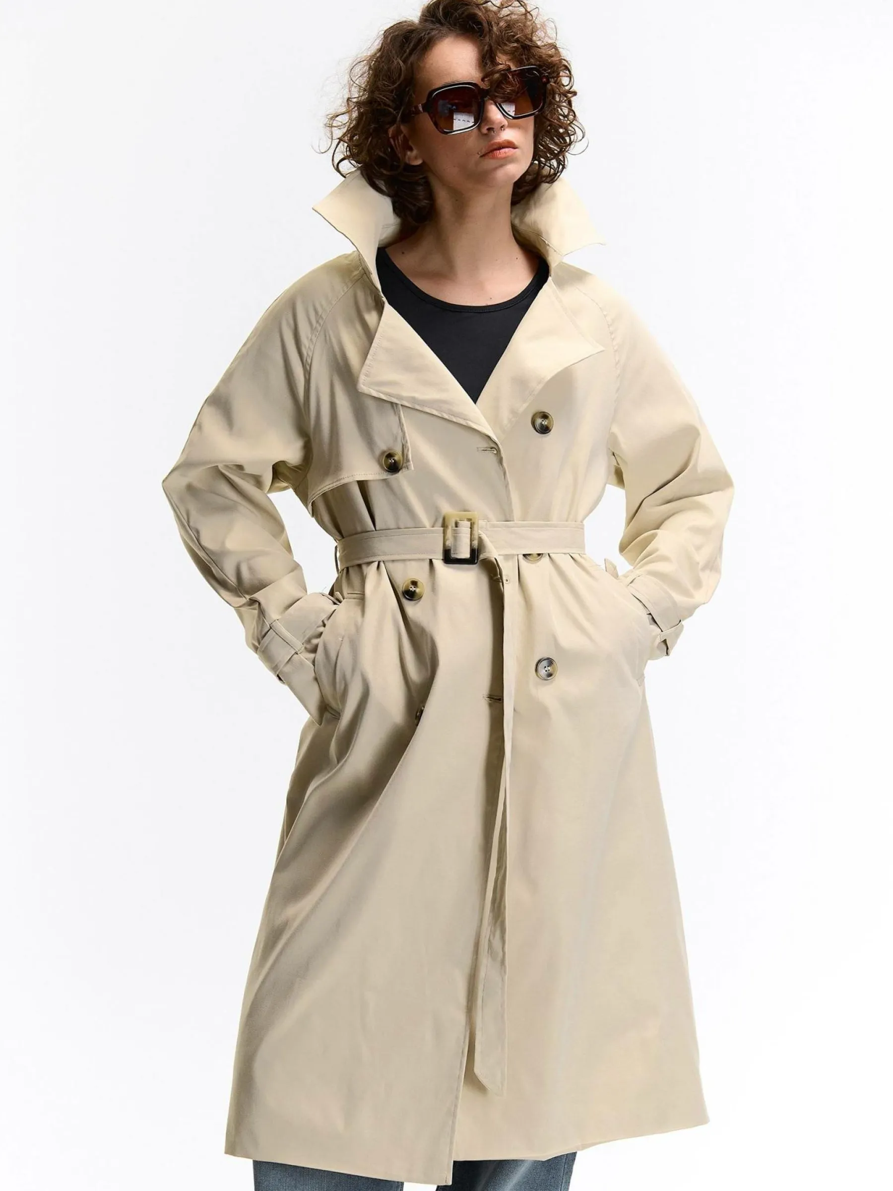 Kolor: beżowyKrój: podstawowyTyp: trenczRekaw: długi rękawDługość: dlugiePattern style: pojedynczy kolorDetal: z …