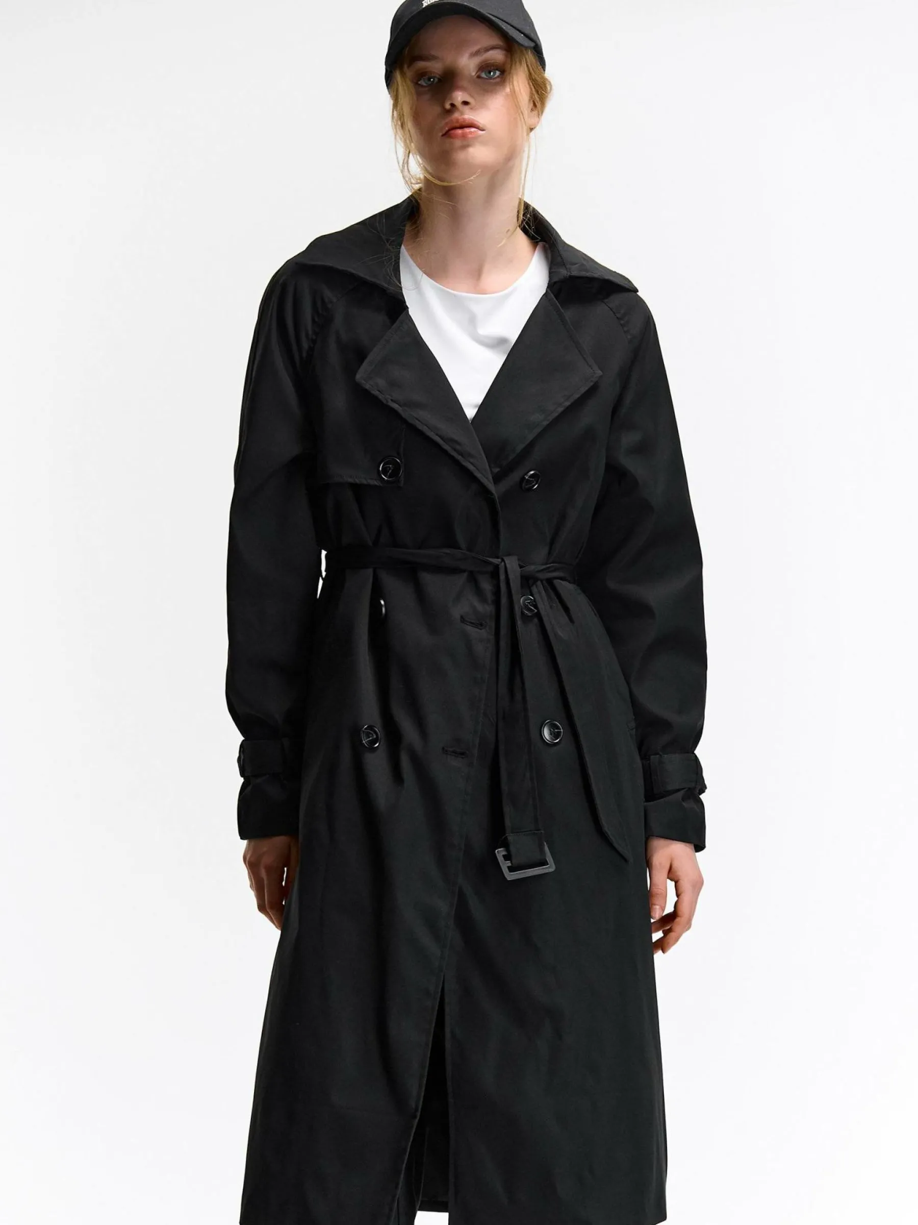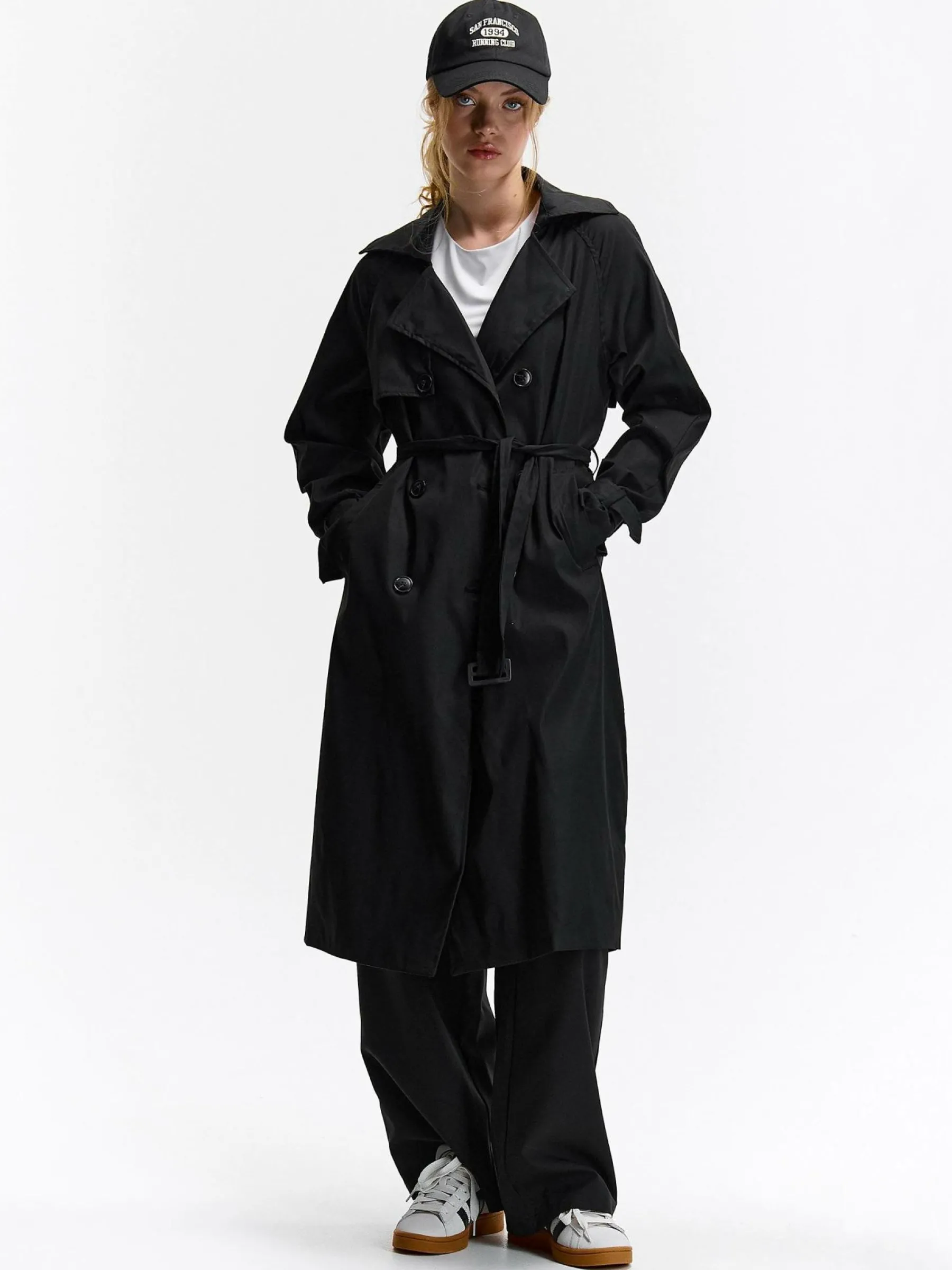 Kolor: czarnyKrój: podstawowyTyp: trenczRekaw: długi rękawDługość: dlugiePattern style: pojedynczy kolorDetal: z p…