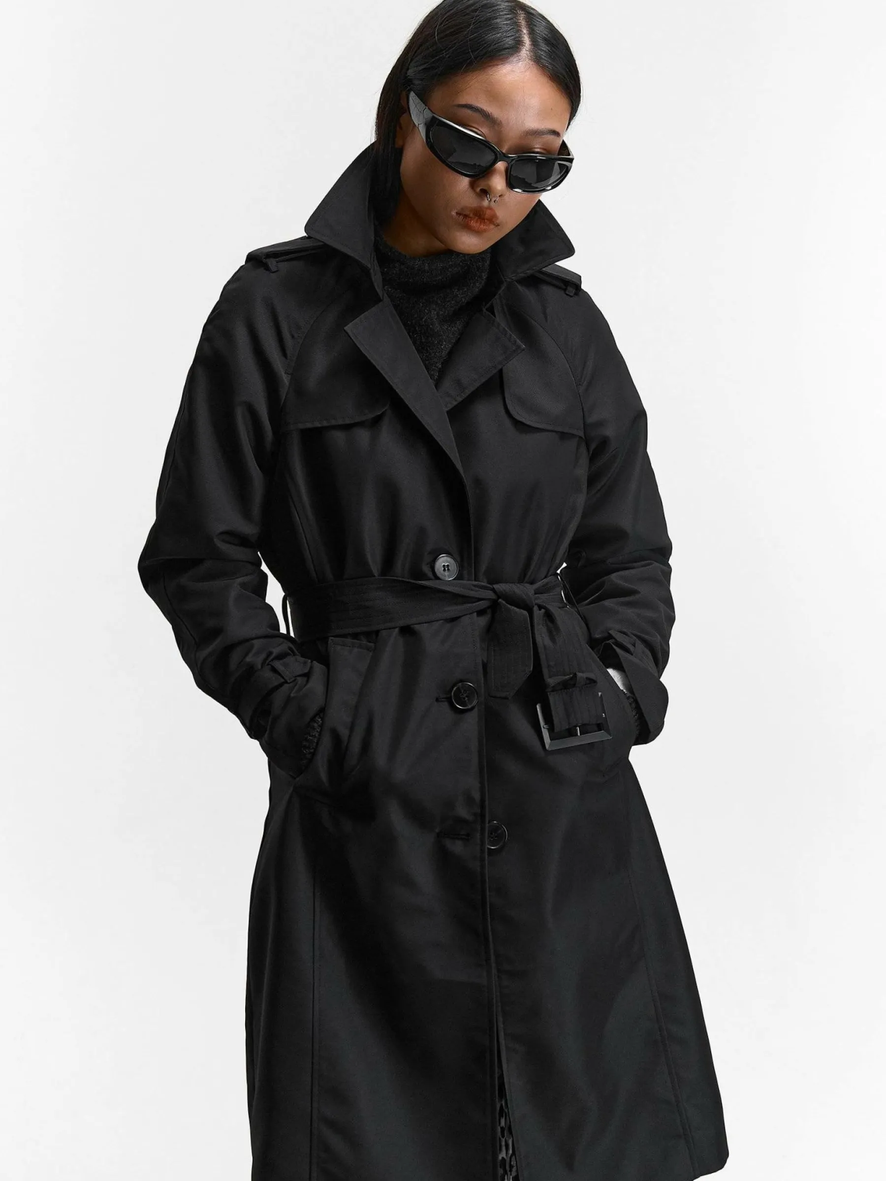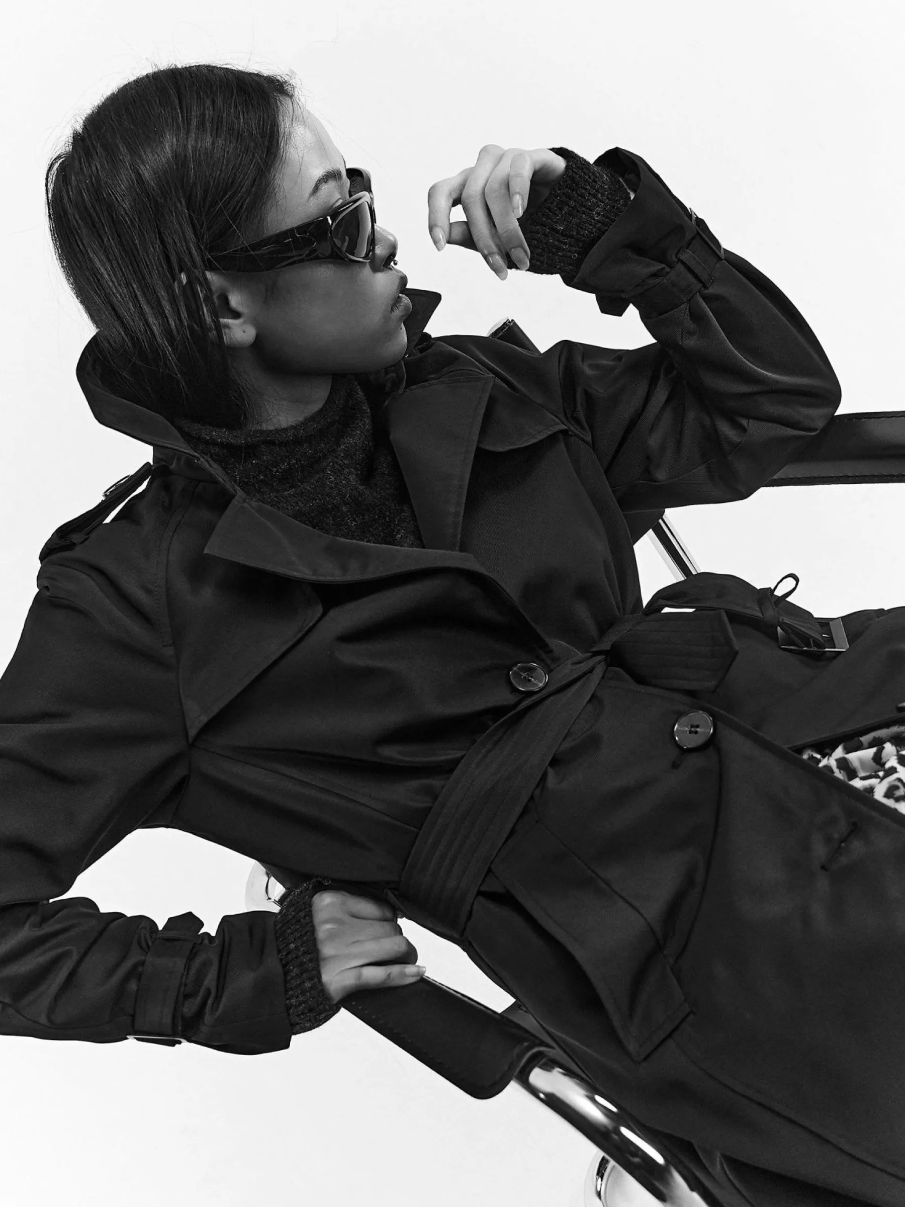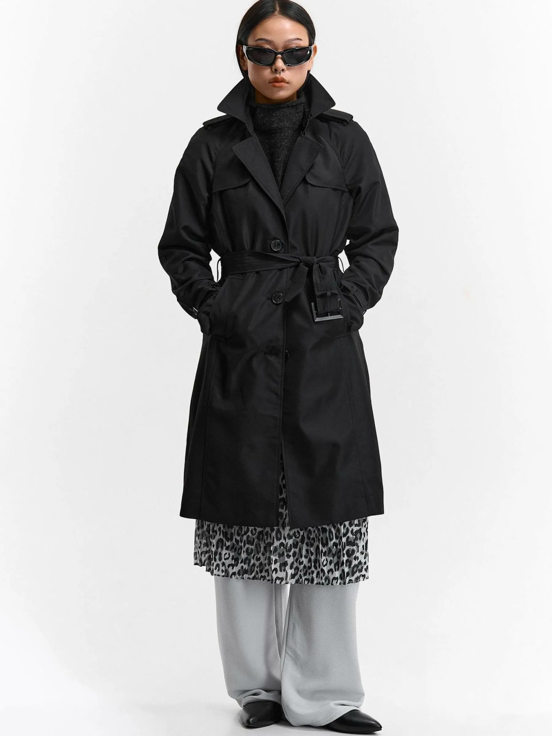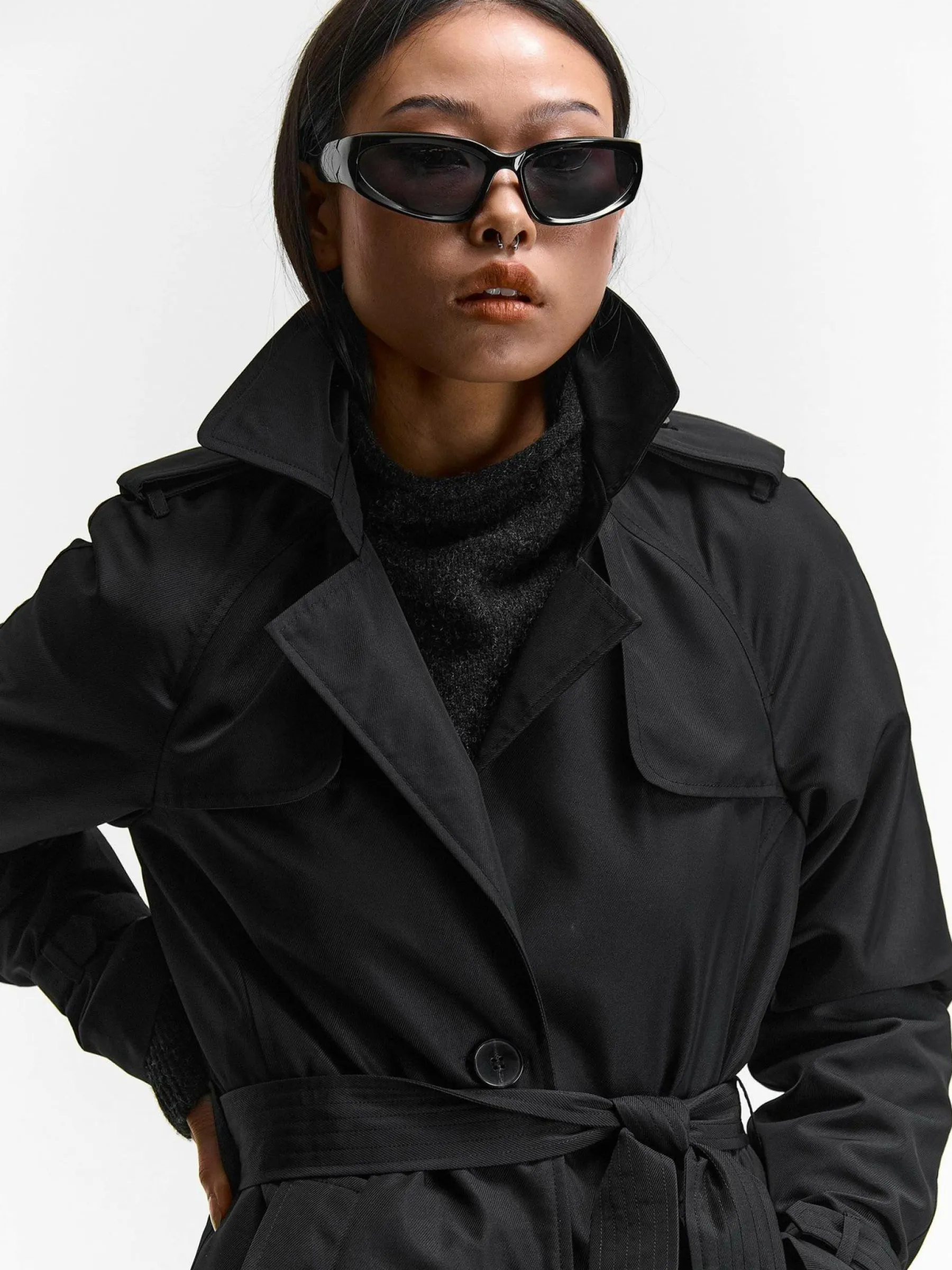 Kolor: czarnyKrój: podstawowyTyp: trenczRekaw: długi rękawDługość: dlugiePattern style: pojedynczy kolorDetal: z p…