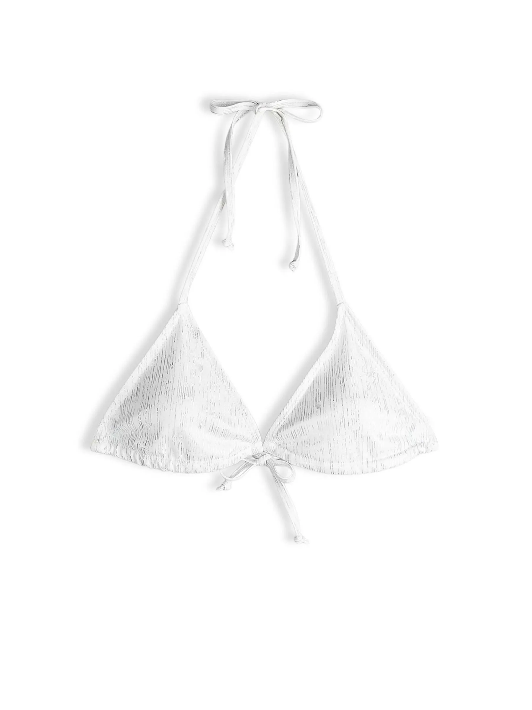 Kolor: białyKrój: bikiniTyp: góra od bikiniPattern style: z włóknem metalicznymDetal: trójkatne, z wiązaniem na s…