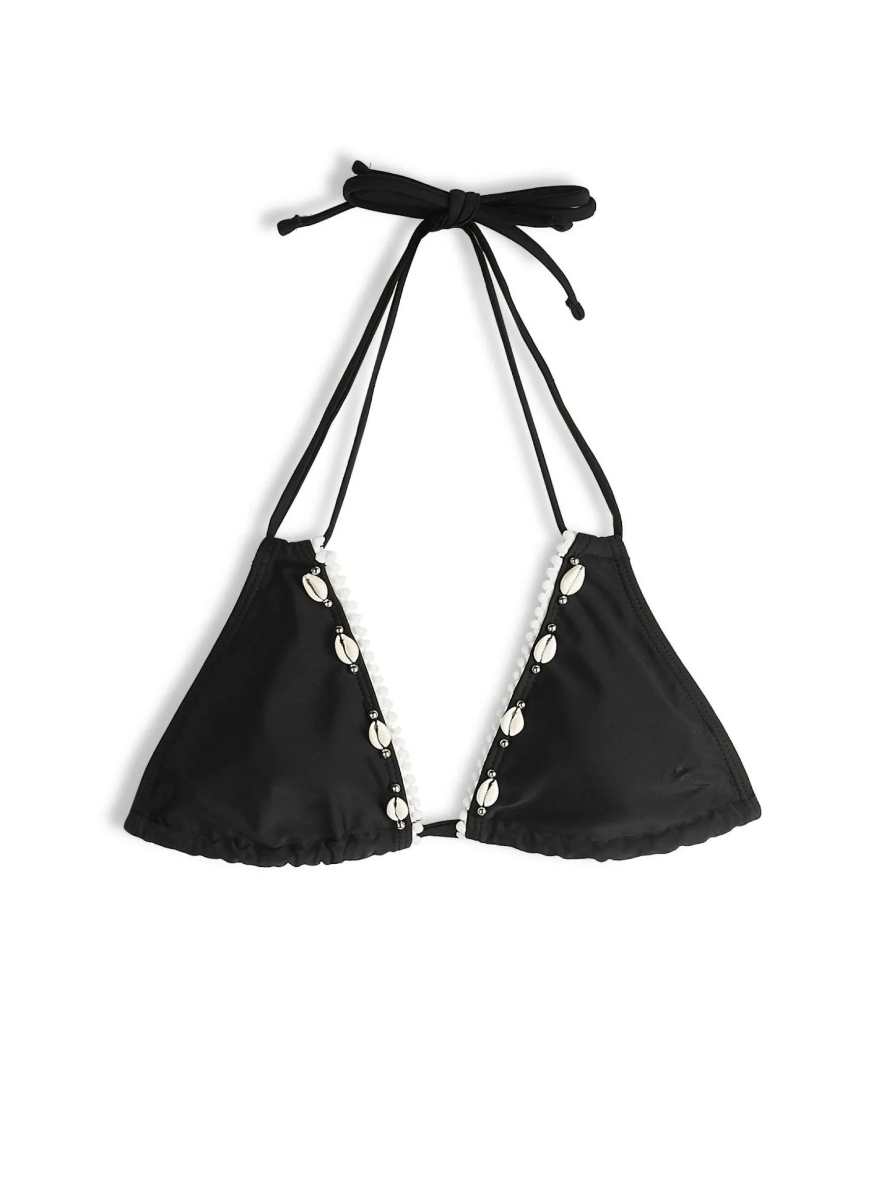 Kolor: czarnyKrój: bikiniTyp: góra od bikiniPattern style: pojedynczy kolorDetal: trójkatne, z wiązaniem na szyi, wy…