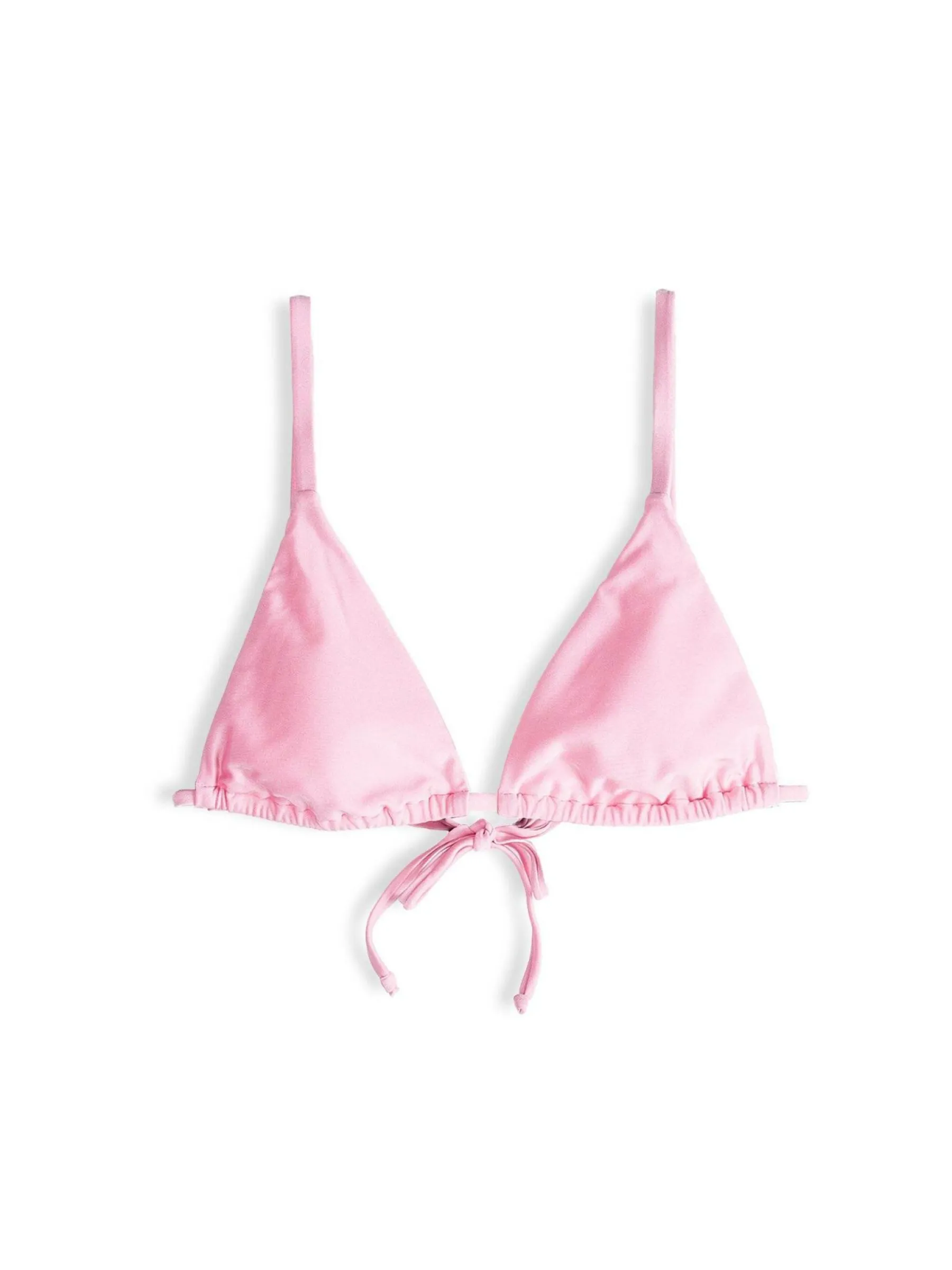 Kolor: różowyKrój: bikiniTyp: góra od bikiniPattern style: pojedynczy kolorDetal: trójkatne, wyjmowane wkładki, z …