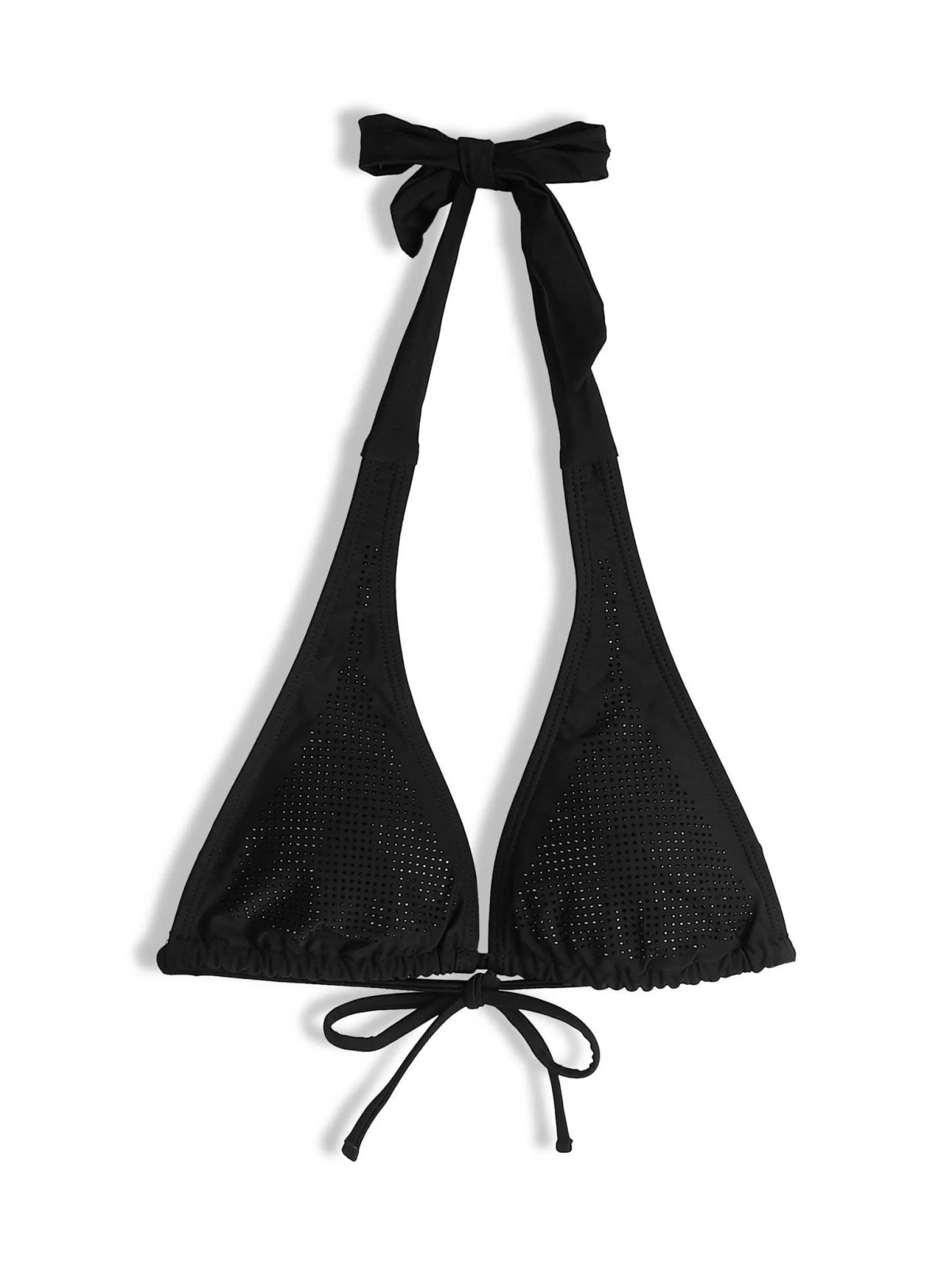 Kolor: czarnyKrój: bikiniTyp: góra od bikiniPattern style: pojedynczy kolorDetal: z wiązaniem na szyi, wyjmowane wkł…