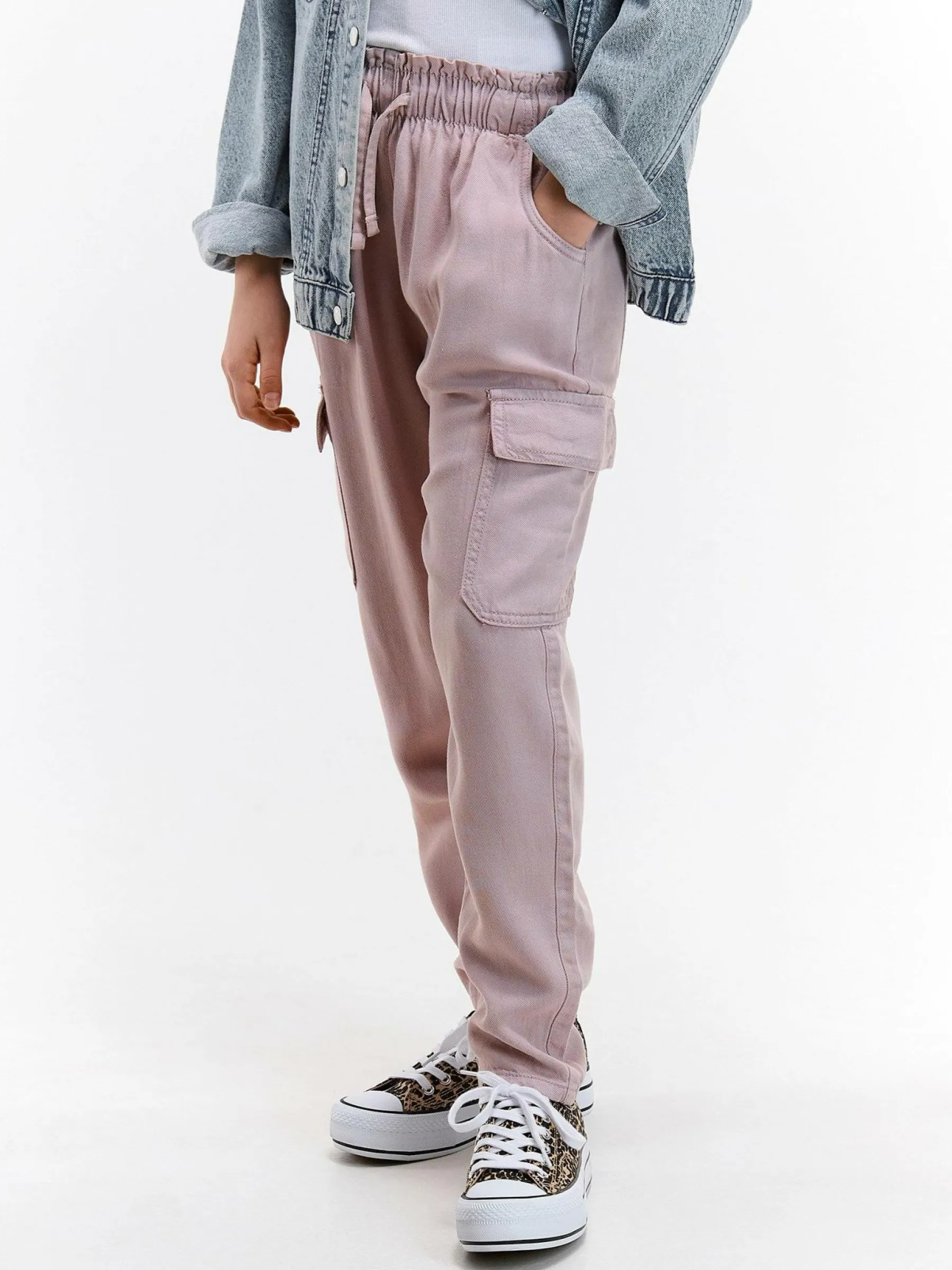 Kolor: różowyKrój: paperbagTyp: jeansDługość: dlugiePattern style: pojedynczy kolorDetal: ze sznurowaniemMateriał…