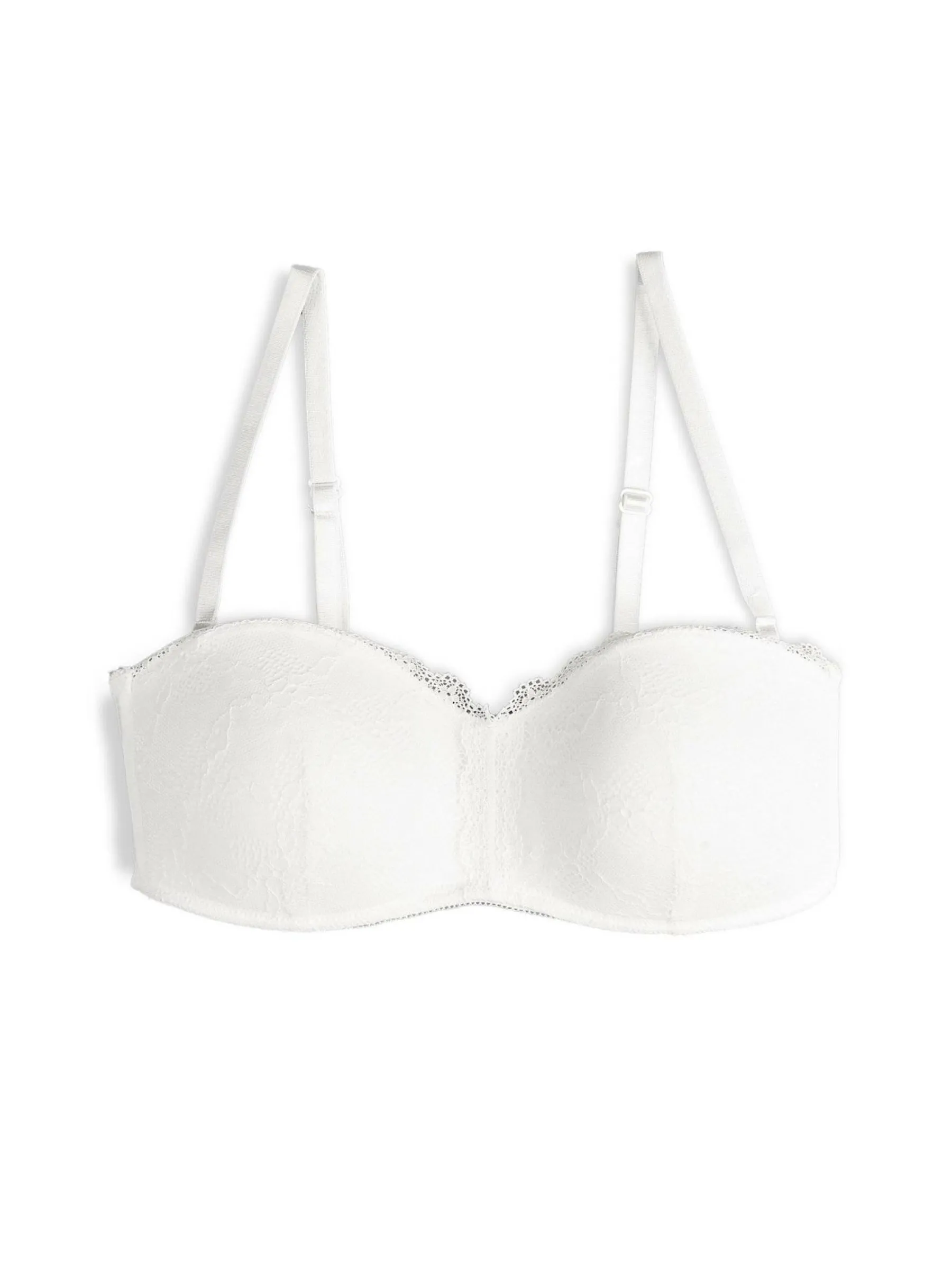 Kolor: białyKrój: balkonetyTyp: biustonoszPattern style: pojedynczy kolorDetal: wzmocniony, bez fiszbinMateriał: koro…