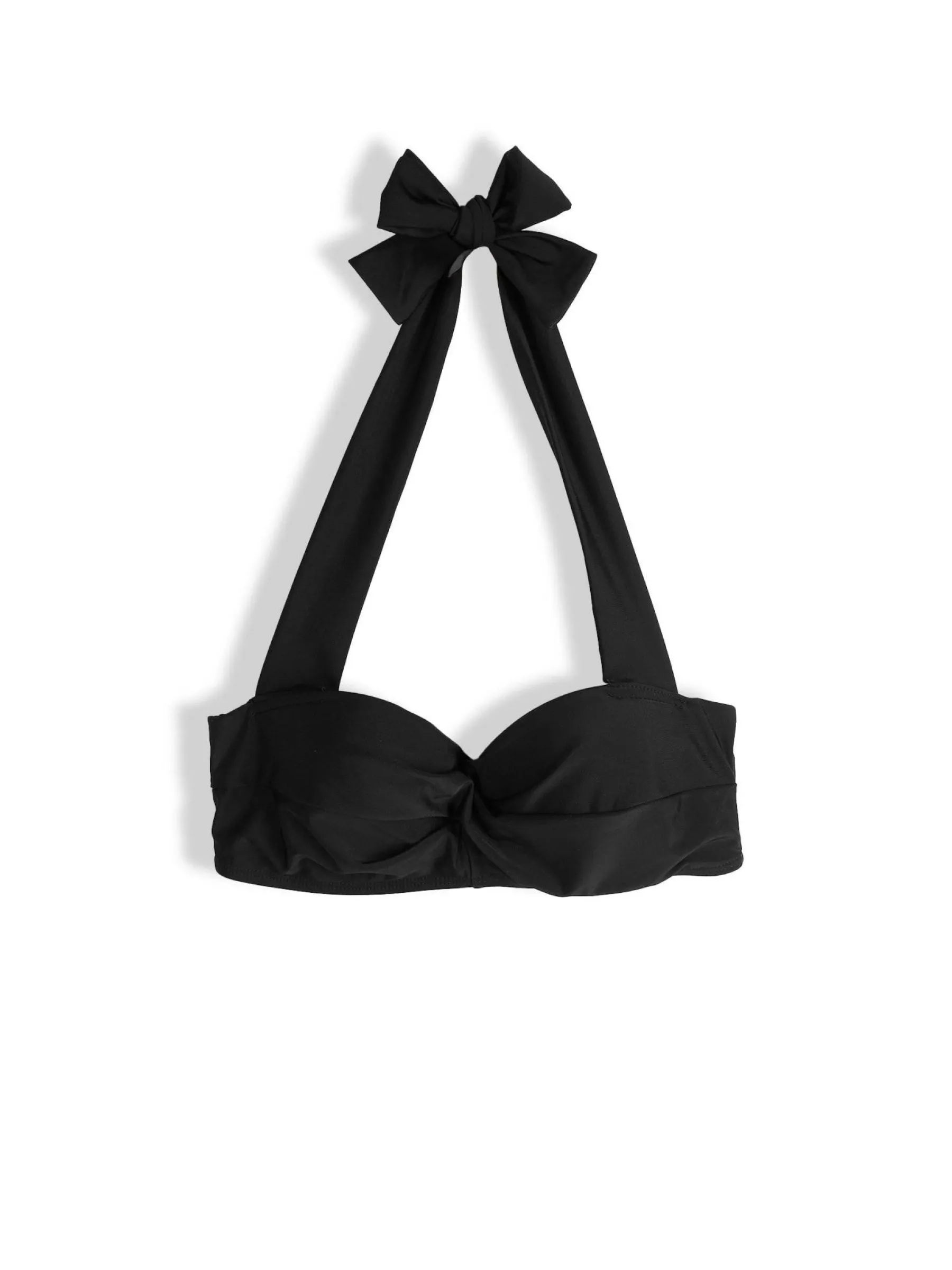 Kolor: czarnyKrój: bikiniTyp: góra od bikiniPattern style: pojedynczy kolorDetal: z wiązaniem na szyi, wzmocniony, z …